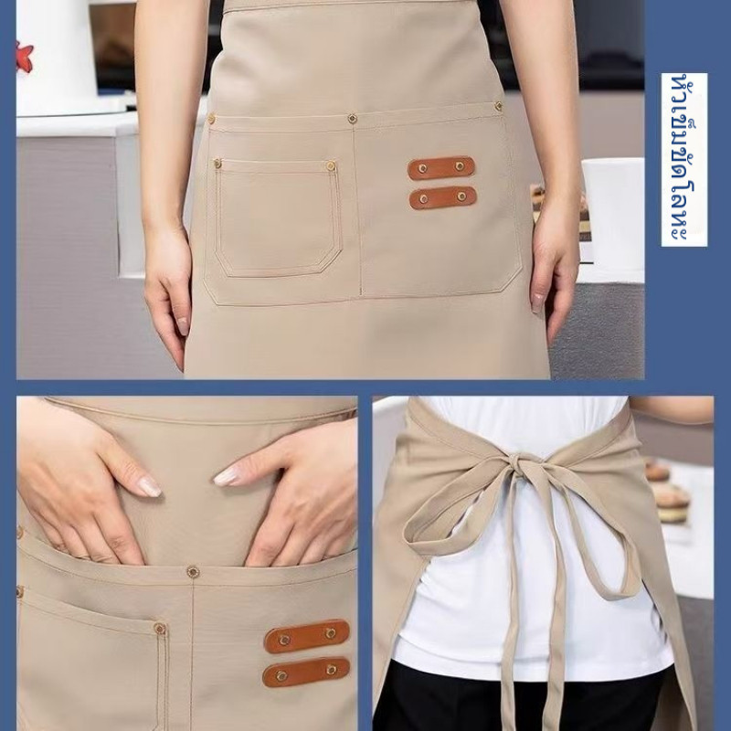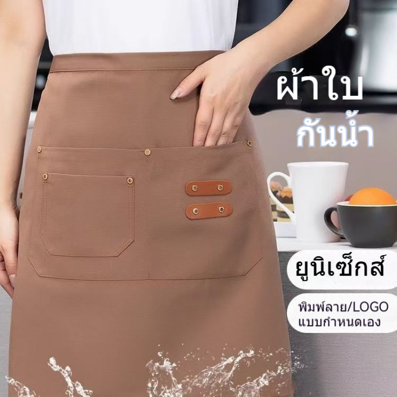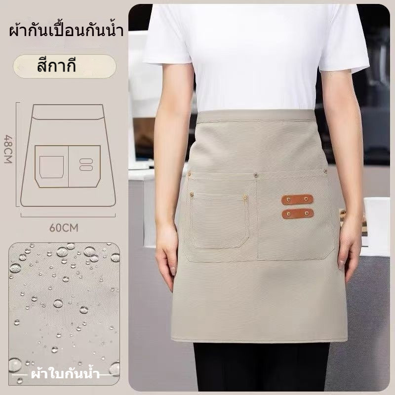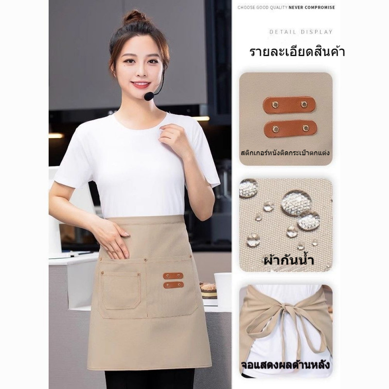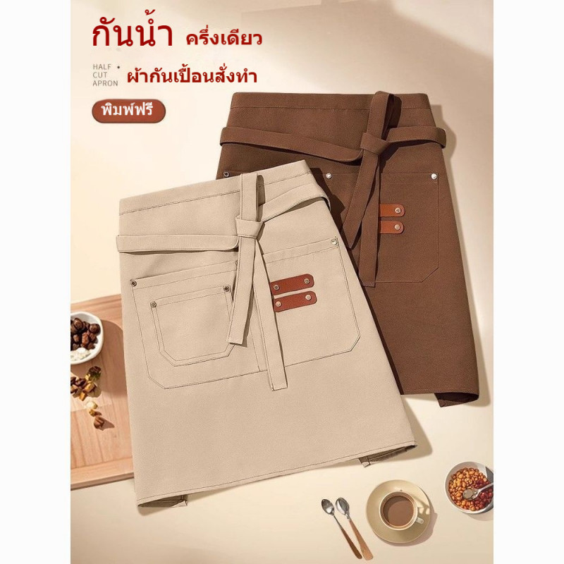 โลโก้ที่กำหนดเอง ผ้ากันเปื้อนกันน้ำครึ่งตัดสามกระเป๋า สามารถพิมพ์ได้ สำหรับซูเปอร์มาร์เก็ต/นมชา/กาแฟ/ร้านอาหาร/ดัดผม/ย้อมเสื้อผ้า ผู้หญิงใช้งาน Custom LOGO Half Work Apron