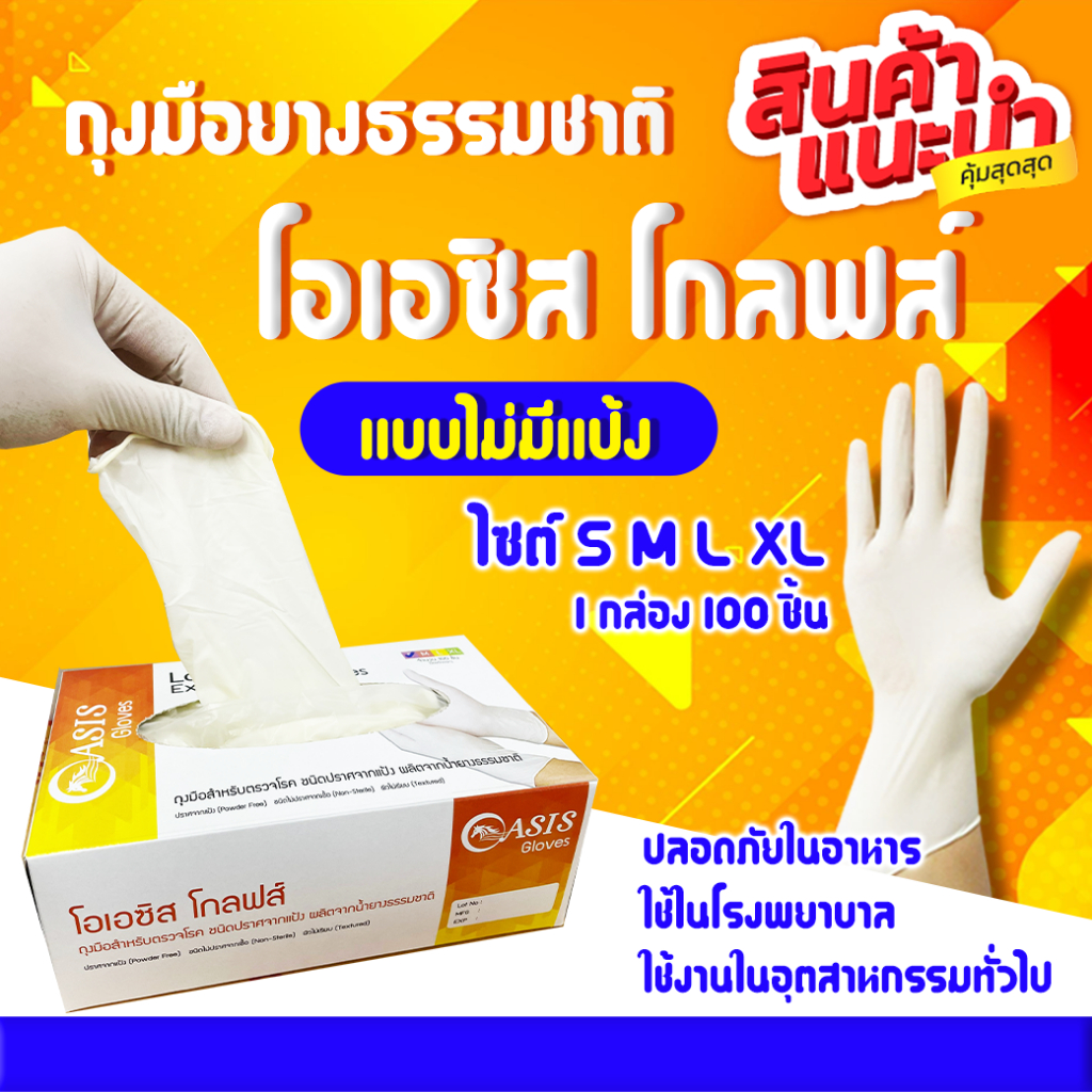ยกลัง 10 กล่องต่อลัง Oasis Latex Powder-free ถุงมือยางลาเท็กซ์ ชนิดไม่มีแป้ง ถุงมือยางอเนกประสงค์ ใช้ทั่วไป