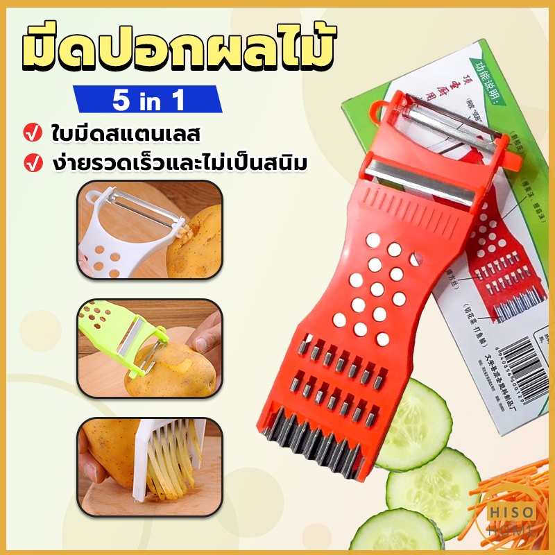 Hiso เครื่องบดผัก ที่ขูดมะละกอ 5in1 มีดปอกผลไม้ พร้อมส่ง veggie chopper