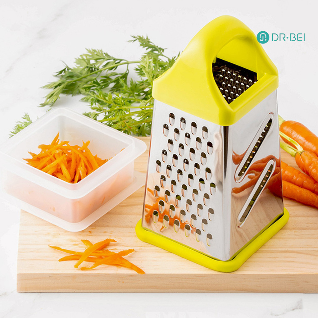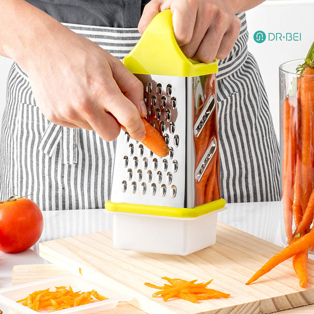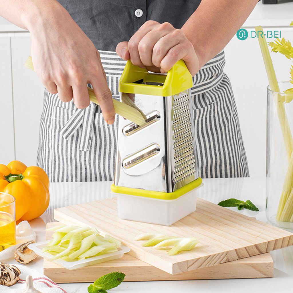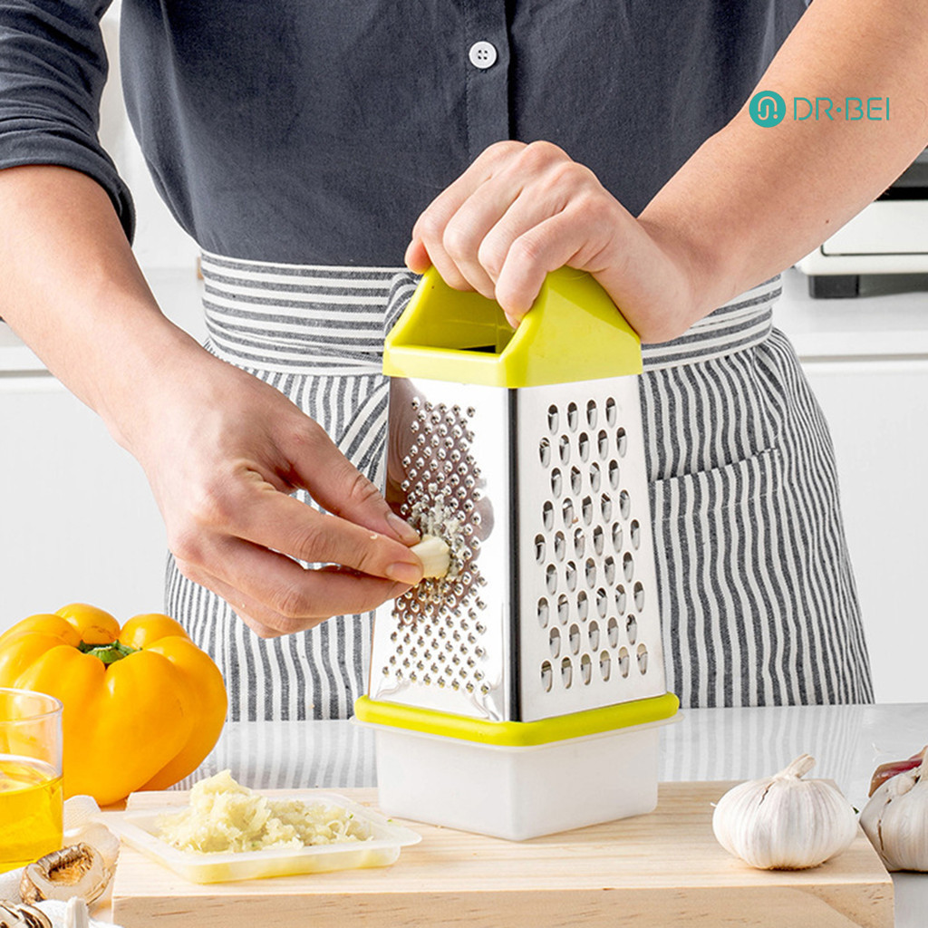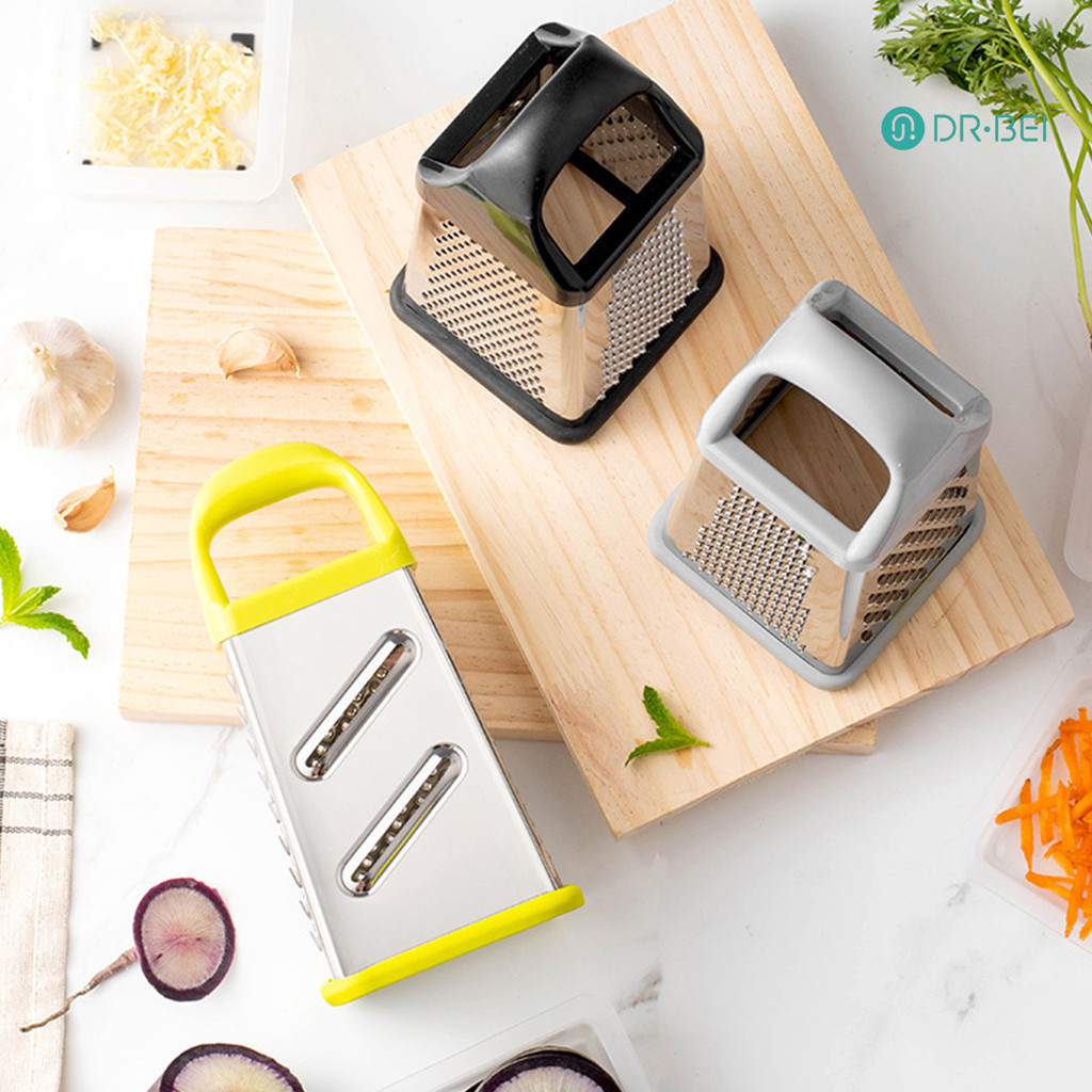 Dr.bei ชีสขูดคอนเทนเนอร ์ สแตนเลสกล ่ องขูดสําหรับผักขิงมันฝรั ่ ง Professional มือถือขูด 4 ด ้ าน Sharp ใบมีด Comfort Handle