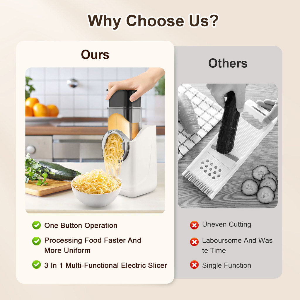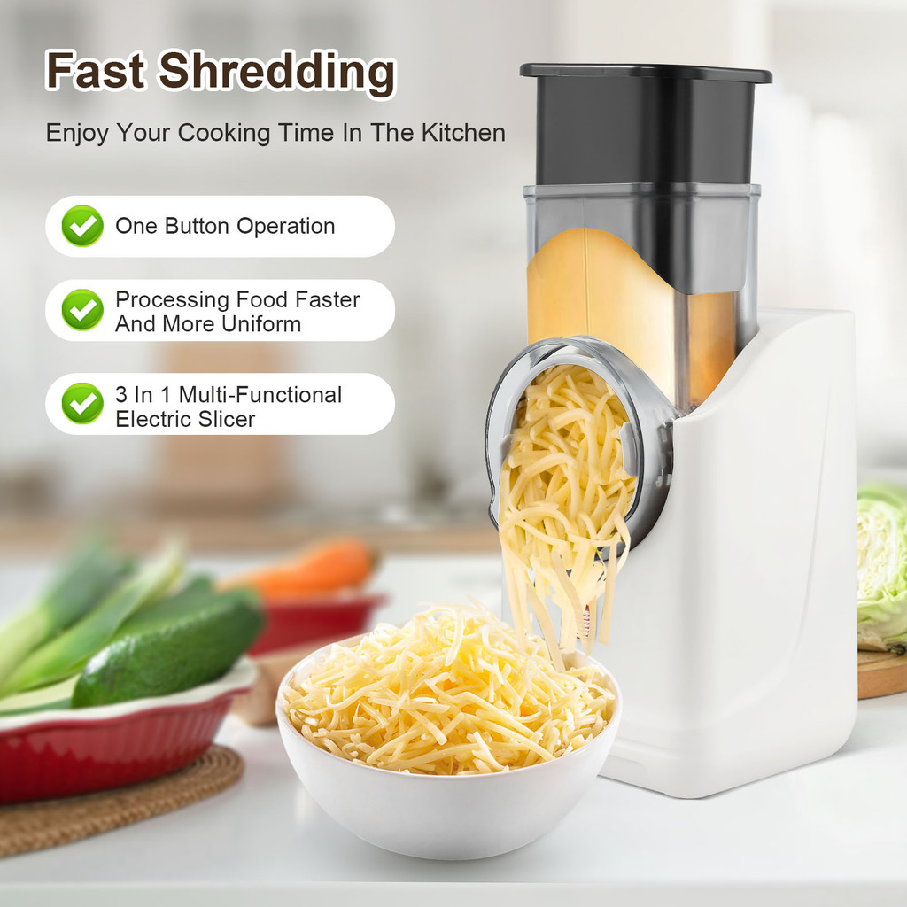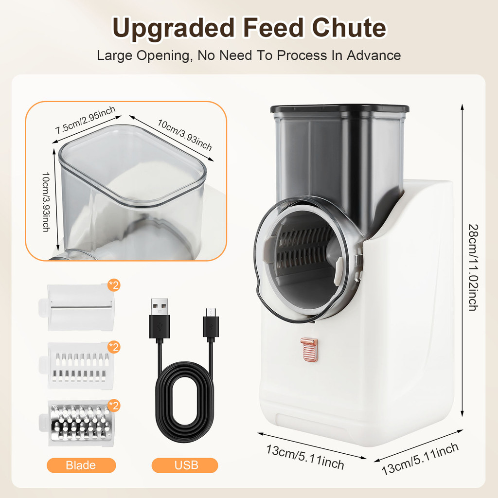 ⚡️จัดส่งในพื้นที่⚡️ เครื่องขูดชีสไฟฟ้า, เครื่องทําสลัดไฟฟ้า, ที่ขูดหลาย, เครื่องตัดผลไม้, เครื่องสับผักอัตโนมัติมืออาชีพพร้อมใบมีดกรวยหลายใบสําหรับ ฟรุย