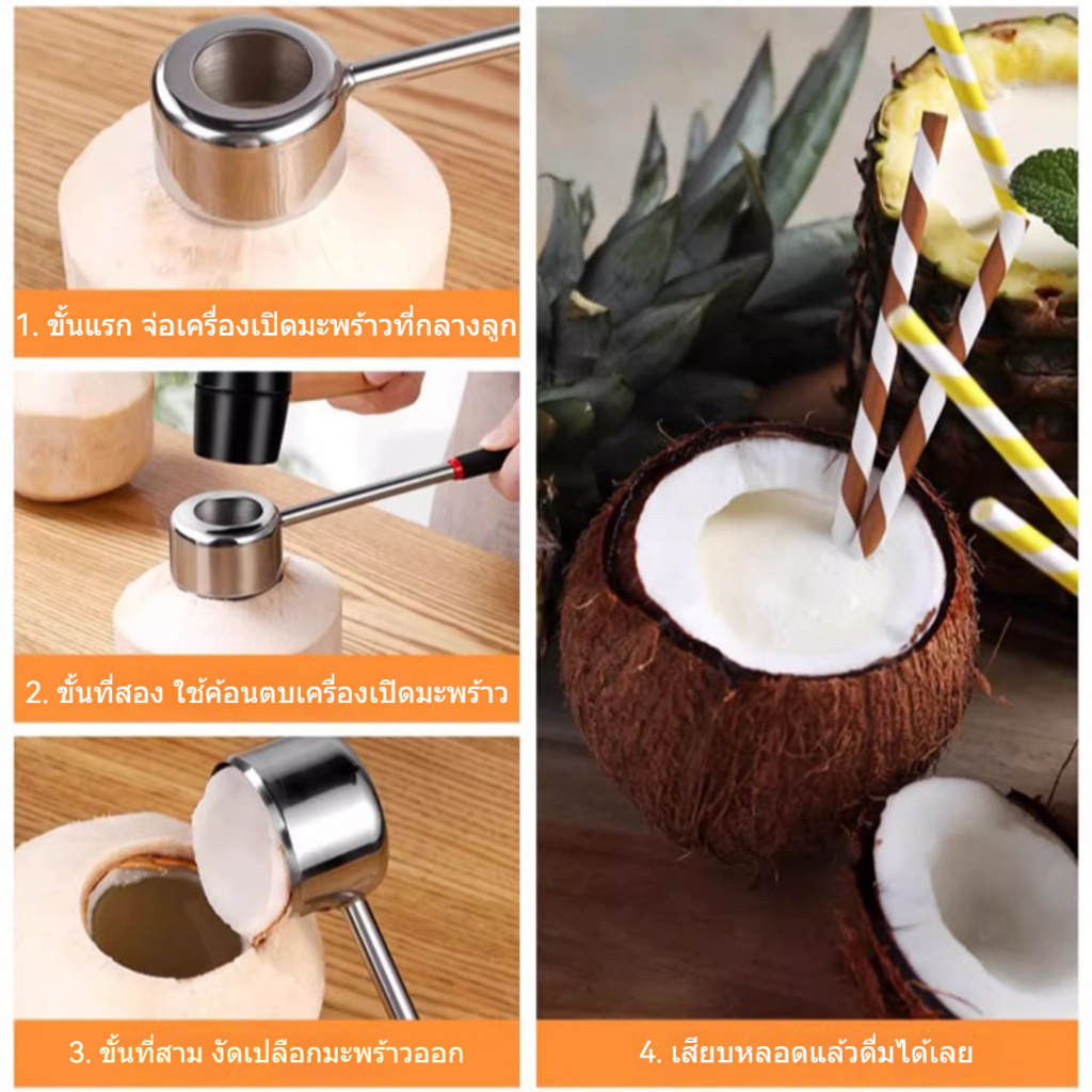 ชุดเปิดมะพร้าว 3 in 1 เครื่องเจาะเปิดรู-ตักเนื้อ-ขูดมะพร้าว เปิดง่าย น้ำไม่หก ทำต้มยมมะพร้าว วุ้นมะพร้าว