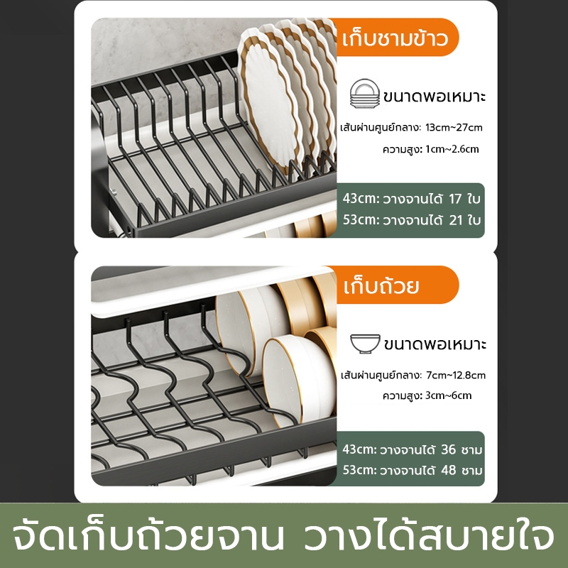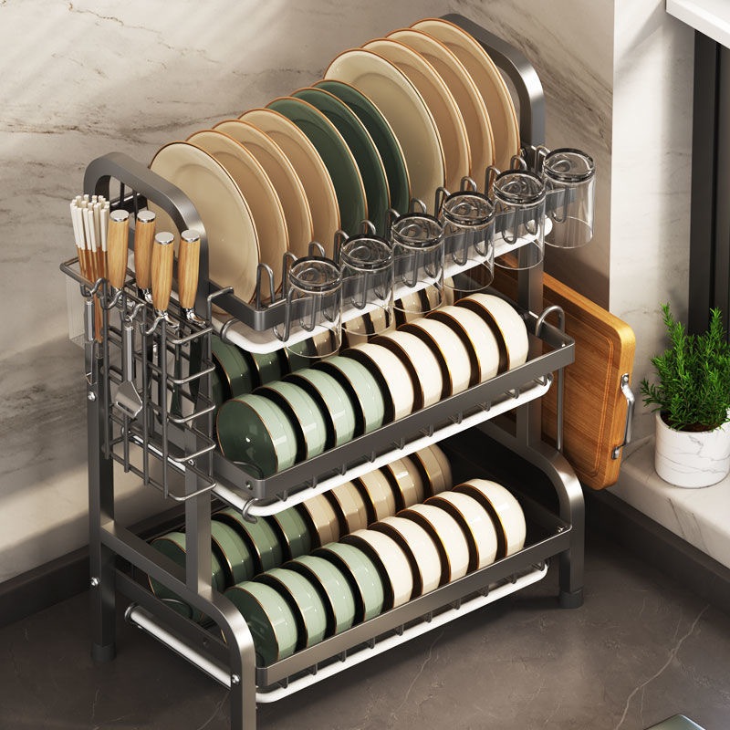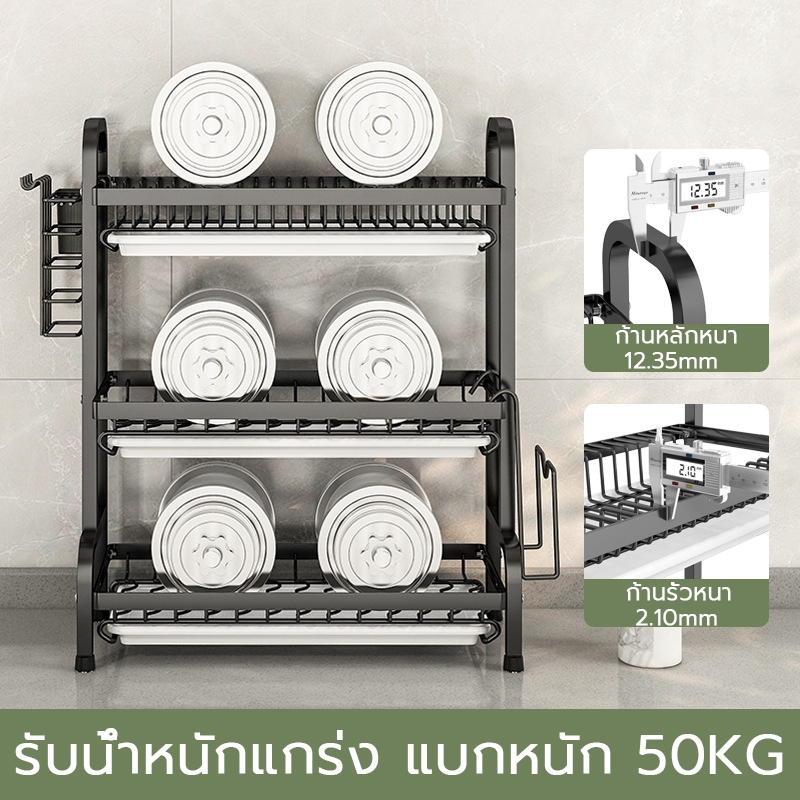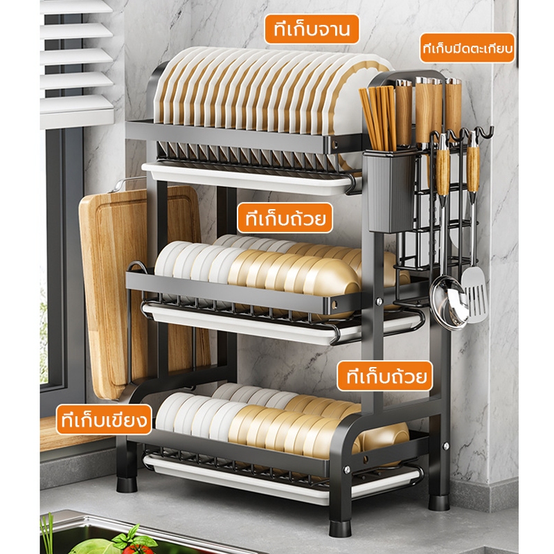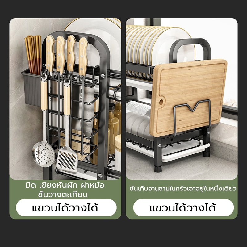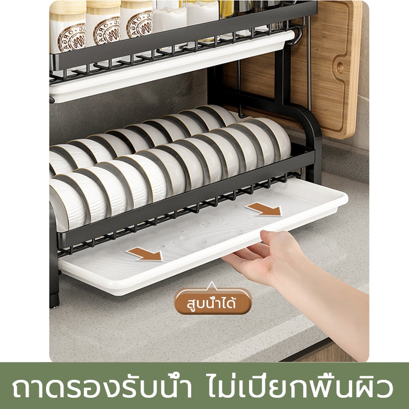 2/3ชั้น ชั้นวางจานสแตนเลส ทนทาน กันน้ำ มาพร้อมถาดรองน้ำ ที่วางจาน ที่คว่ำจานสแตนเลส ชั้นวางของในครัว