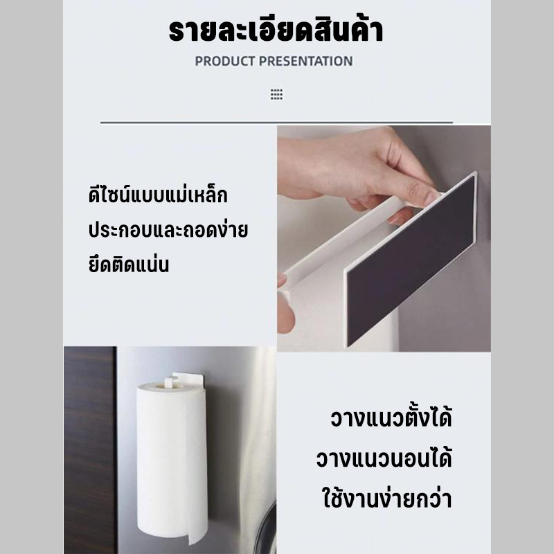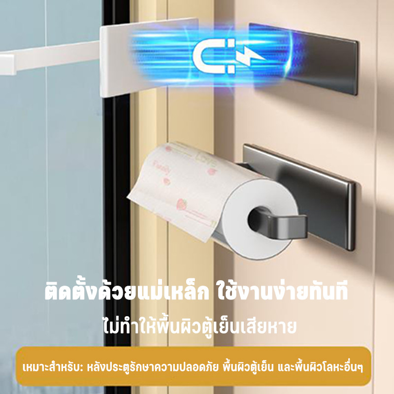 【ที่ใส่ทิชชู่】ชั้นวางของแม่เหล็กติดตู้เย็น ที่ใส่กระดาษม้วนครัว ไม่ต้องเจาะ ติดได้ทั้งแนวตั้งและแนวนอน