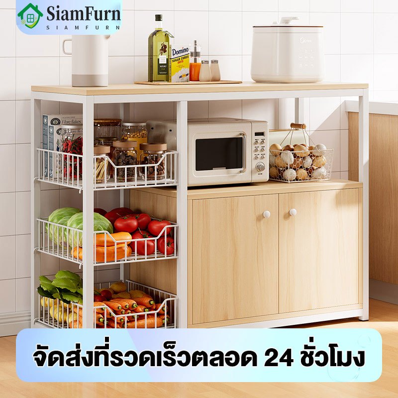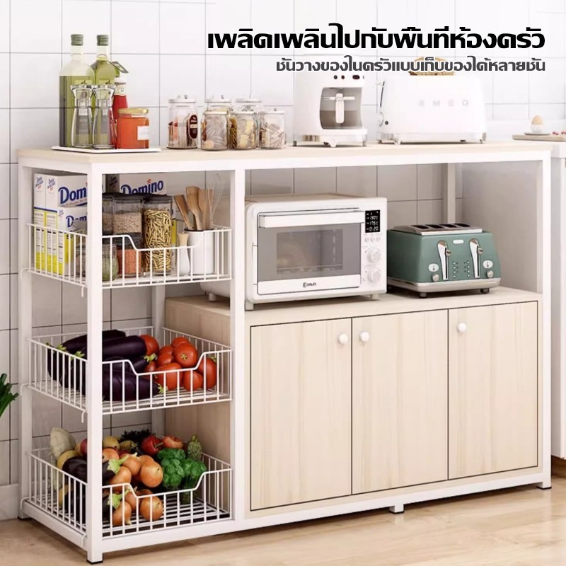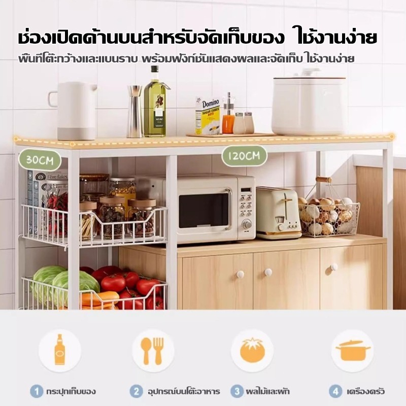 120cm เคาเตอร์ครัว ชนิดไม้+โครงเหล็ก ชั้นวางอเนกประสงค์ มีตู้เก็บของด้านล่าง cupboard แข็งแรง ดูดีตา ชั้นวางของในครัว