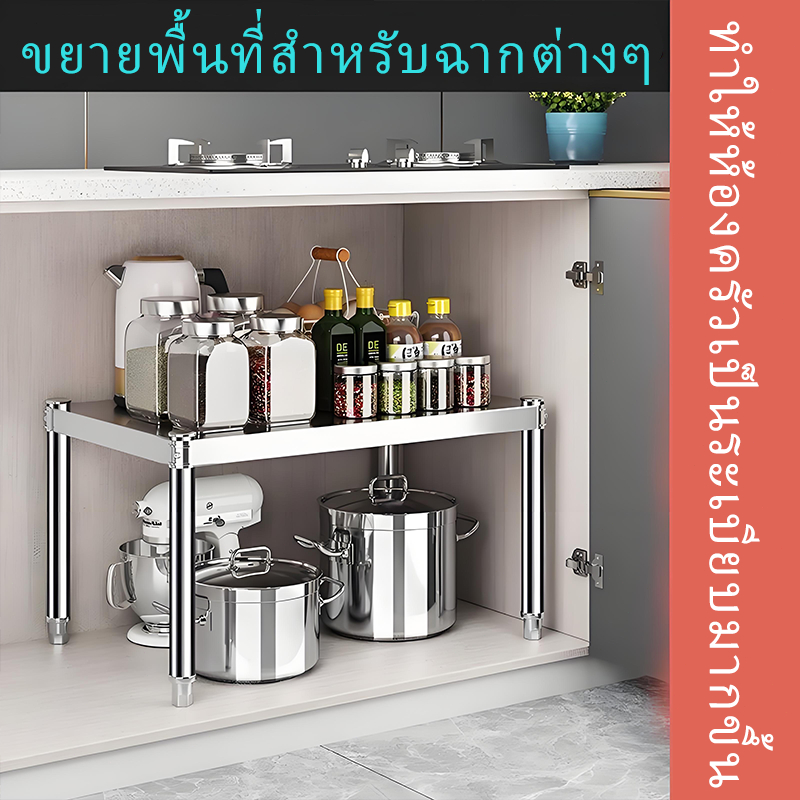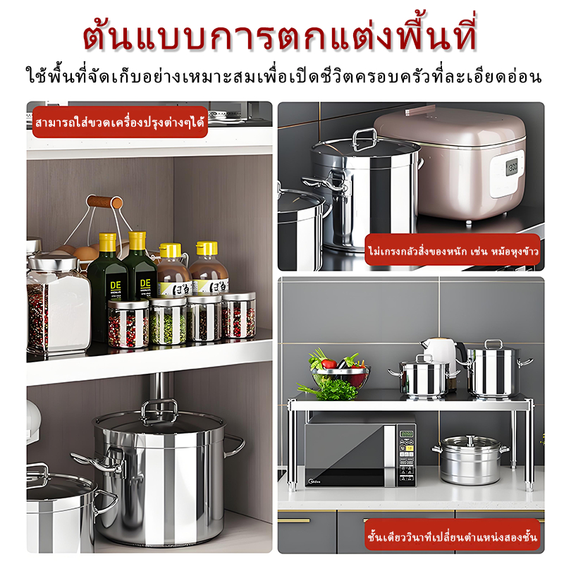 【พร้อมส่ง】ชั้นวางของฝากระทะ สามารถปรับระดับชั้นวางห้องครัว มัลติฟังก์ชั่พับเก็บได้ชั้นวางหม้อต้มน้ำ วัสดุเหล็กมีความทนทา