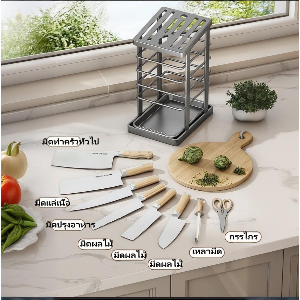 [จัดส่งตรงจากประเทศไทย]ทวางมีดสแตนเลส ที่จัดเก็บมีดครัวมืออาชีพ พร้อมถาดรองน้ำ วางใจได้ไร้สนิมที่จัดเก็บมีดทุกขนาด