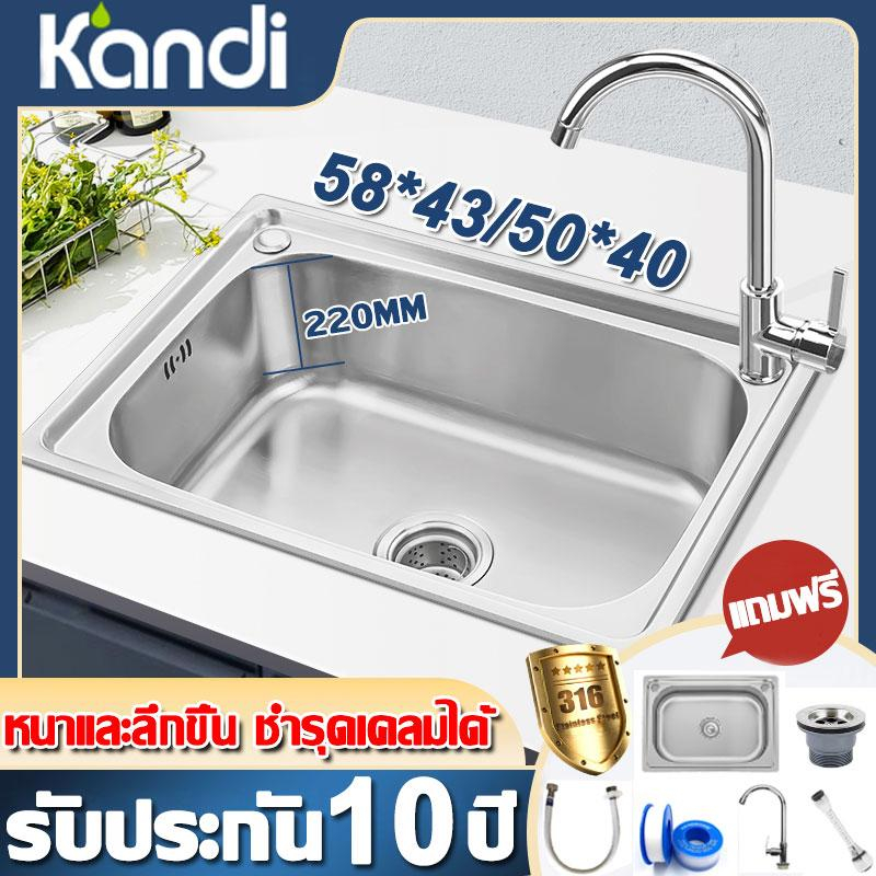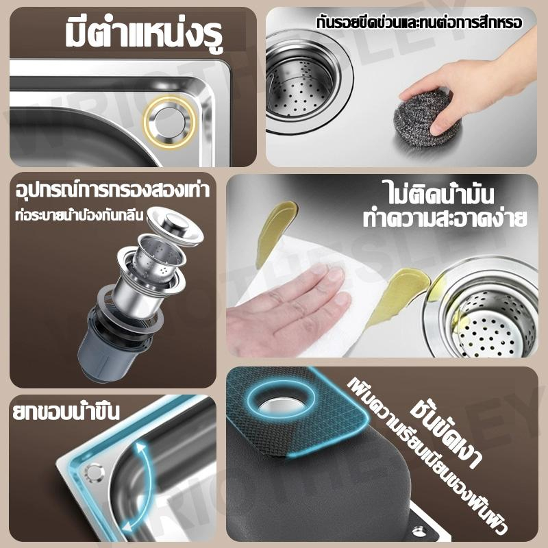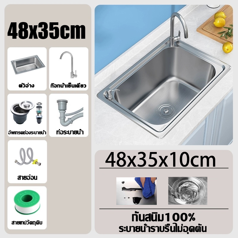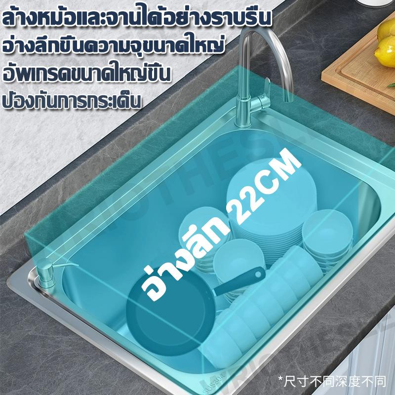 100% ป้องกันคราบน้ำมันแถมก๊อกน้ำฟรี อ่างล้างจาน/ซิงค์ล้างจาน/ซิ้งล้างจาน 1หลุมขนาด อ่างล้างจานสแตนเลส แบบฝังเคาน์เตอร์ อ