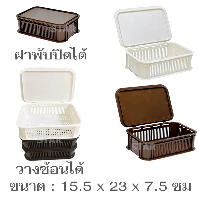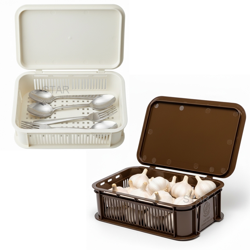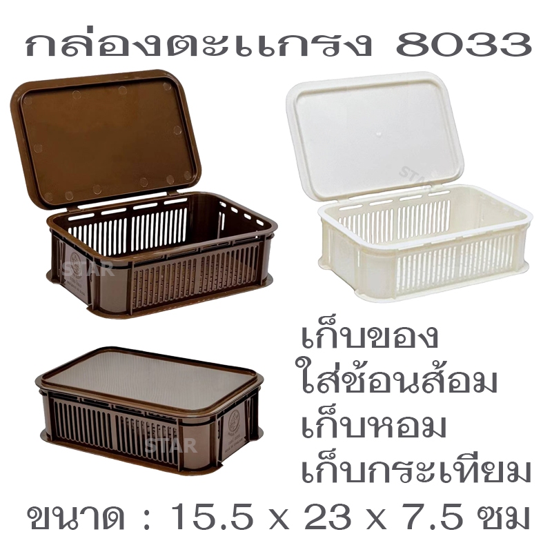 8033 กล่องตะแกรงมีฝาปิด กล่องใส่ช้อน กล่องตะเกียบ กล่องเก็บของ ใส่กระเทียม หัวหอม วางซ้อนได้หลายชั้น