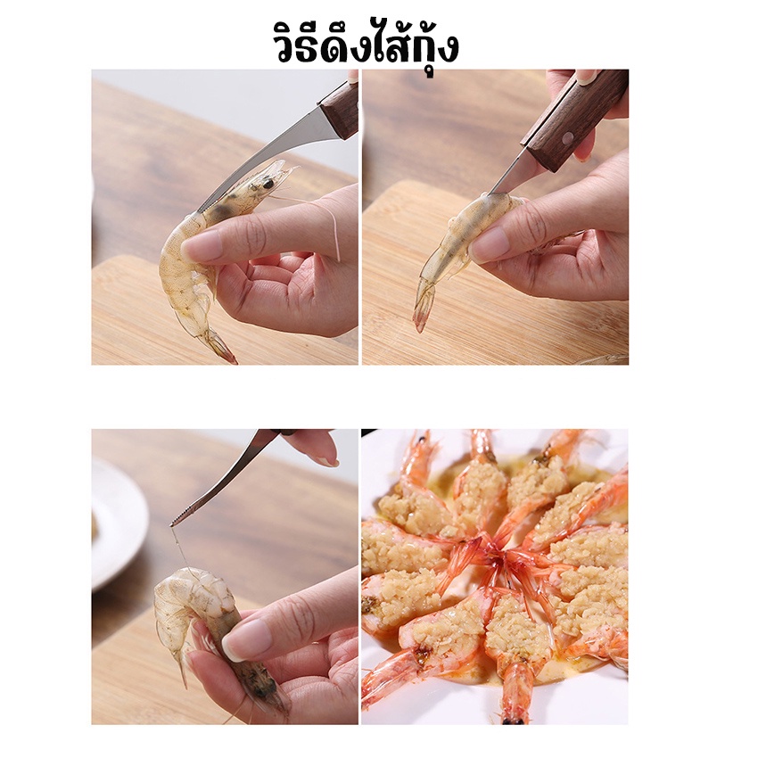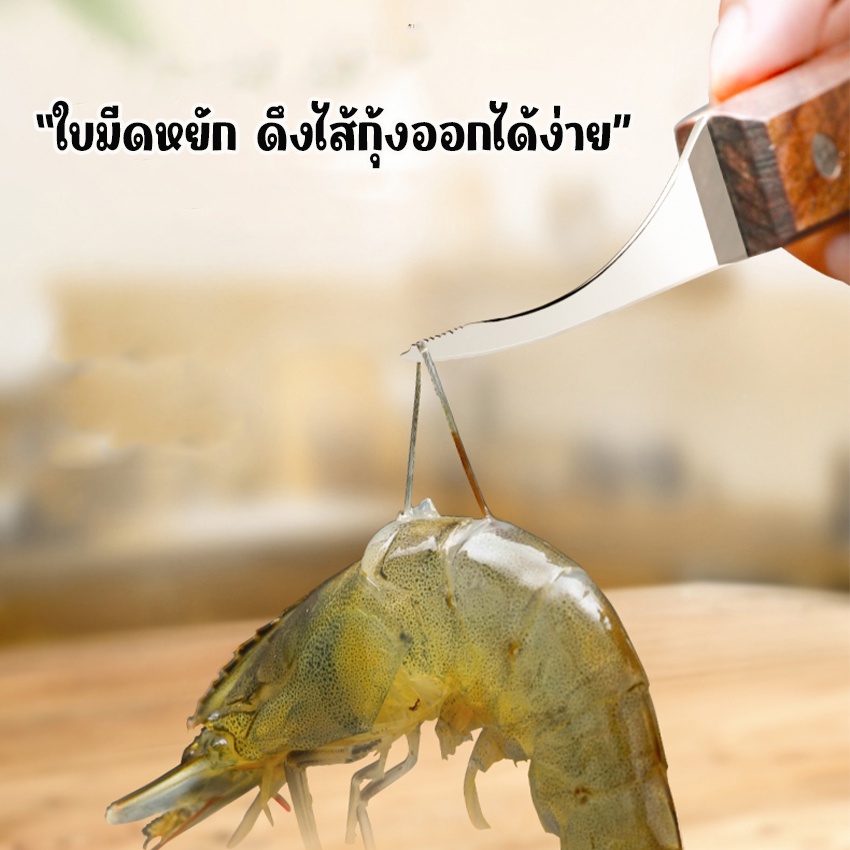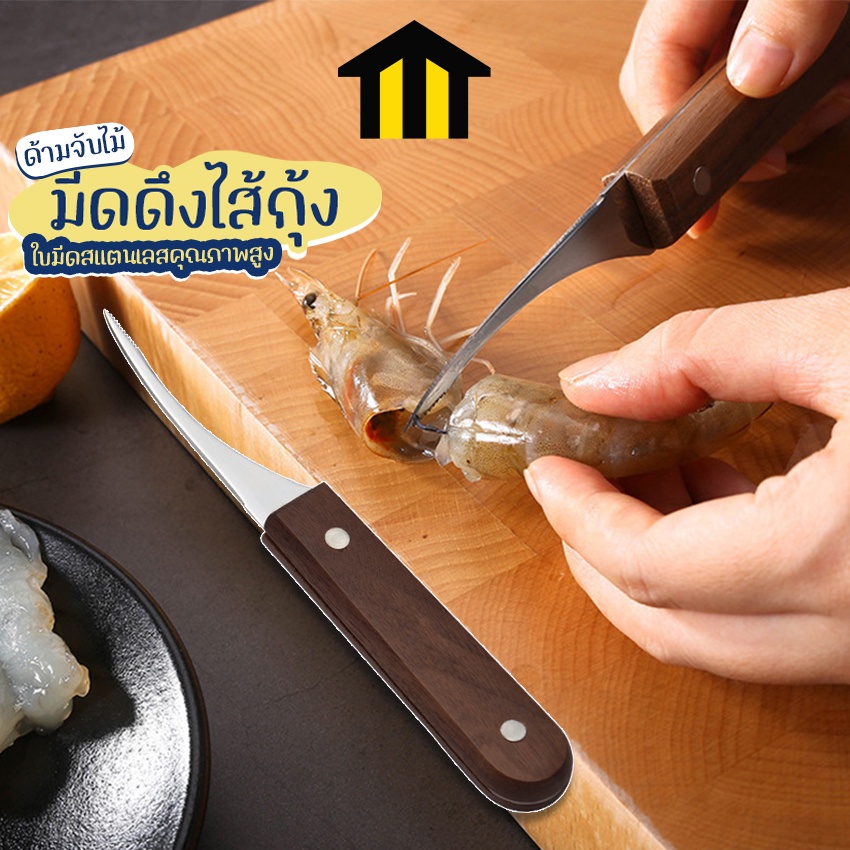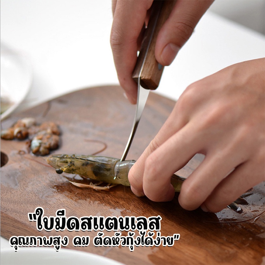 Monza มีดแกะกุ้ง มีดดึงไส้กุ้ง ใบมีดสแตนเลส ด้ามไม้ No.Y1181