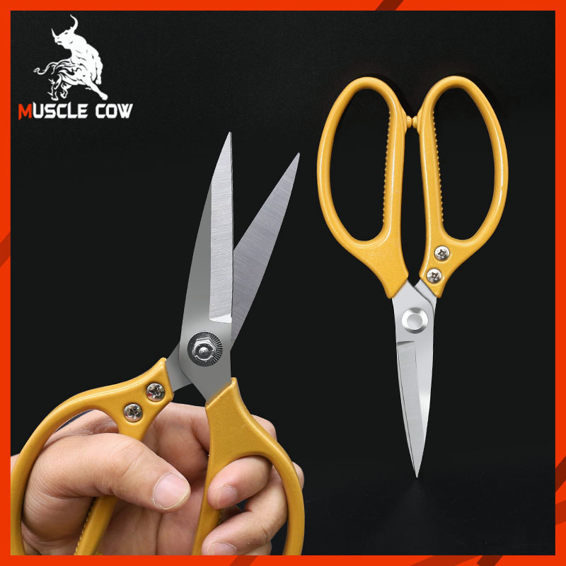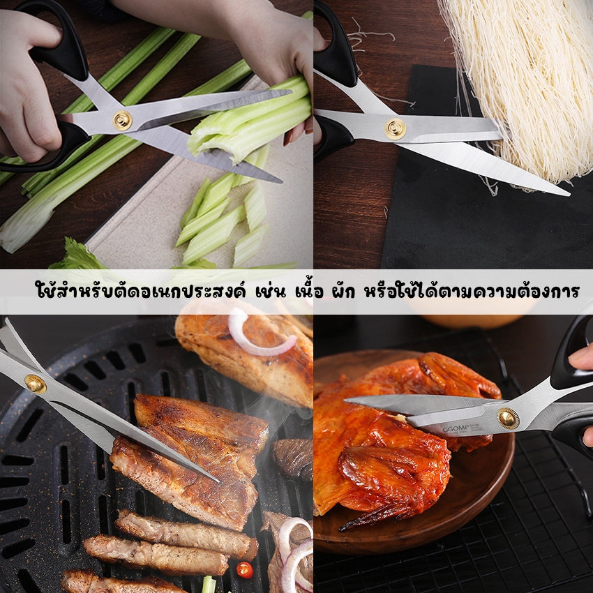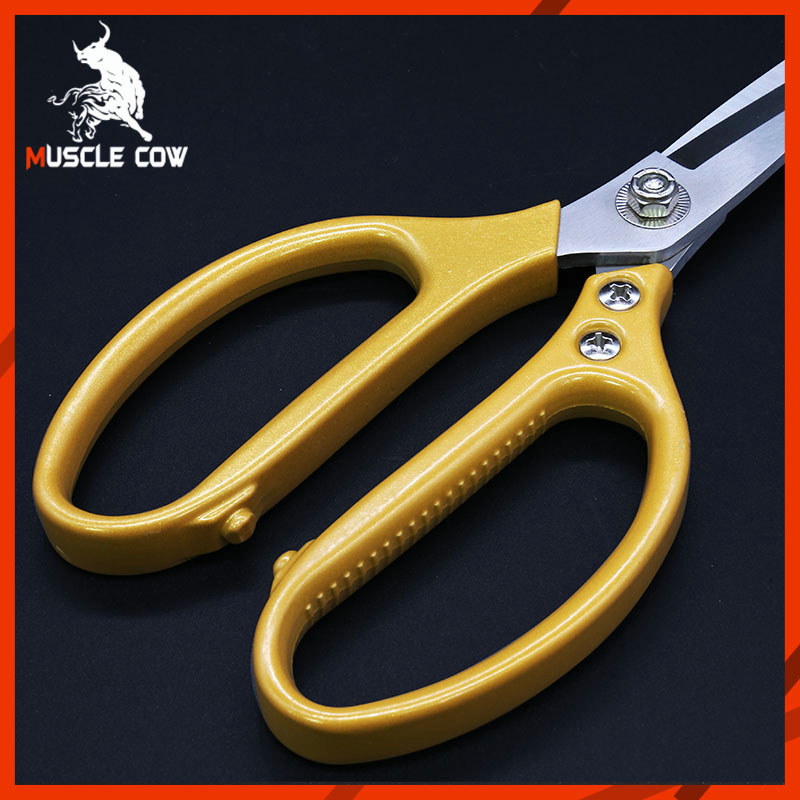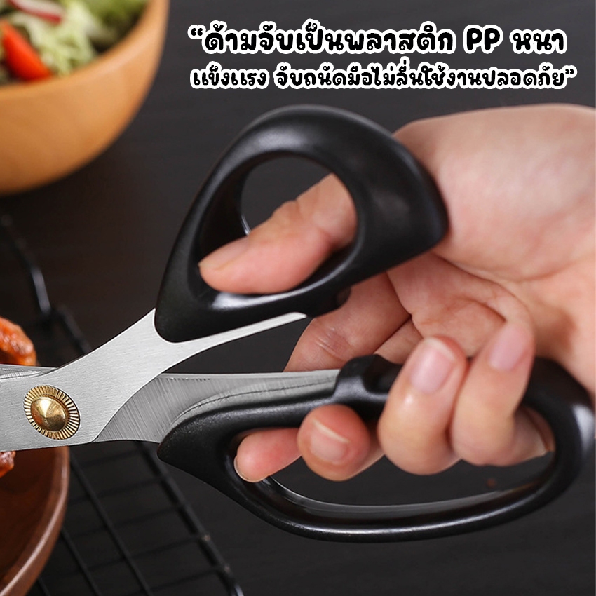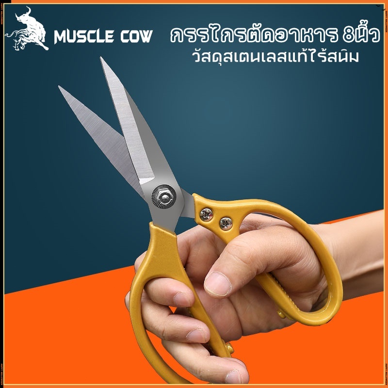 MUSCLE COW กรรไกรทำอาหาร กรรไกรทำครัว สีดำ มีปลอกสวม ตัดกระดูกได้ กรรไกรเอนกประสงค์ กรรไกรสแตนเลส อุปกรณ์ทำครัว