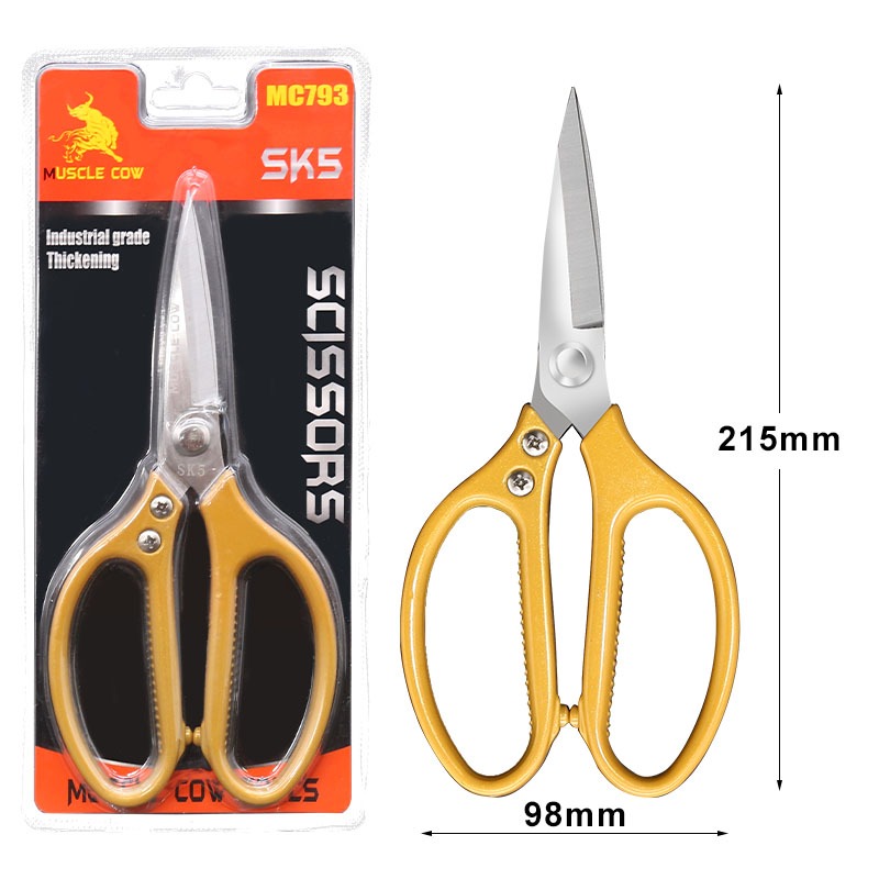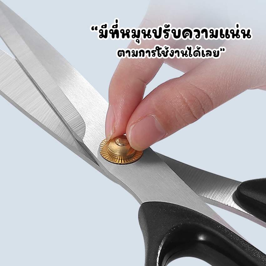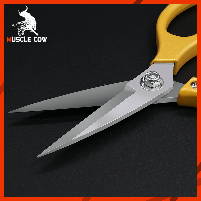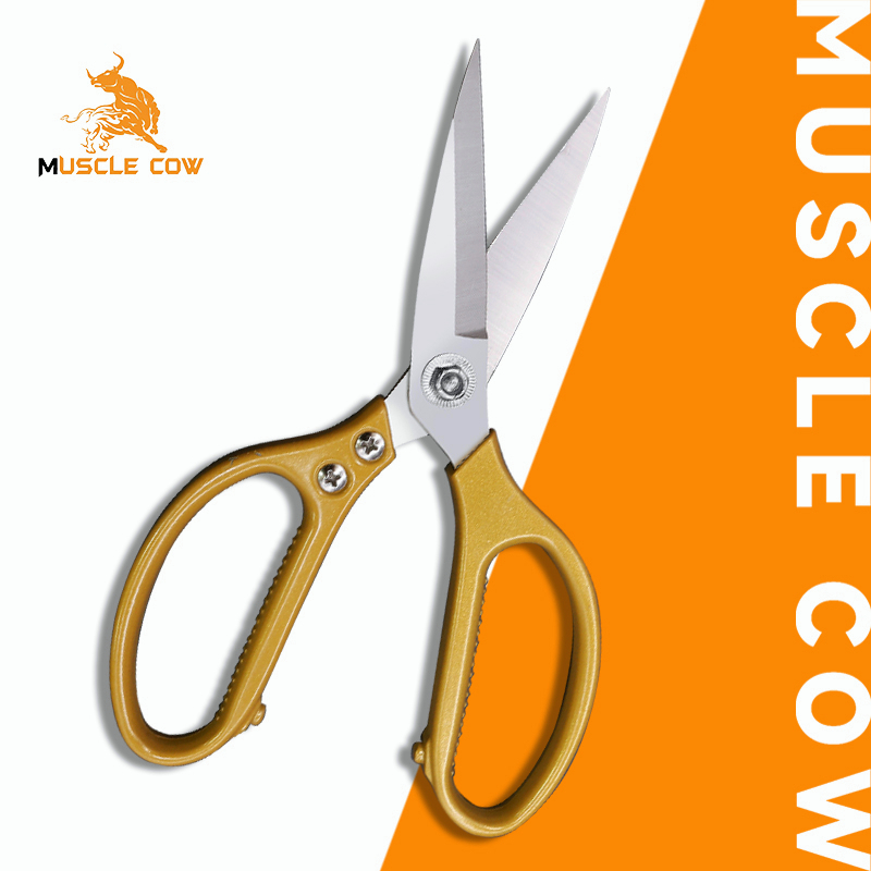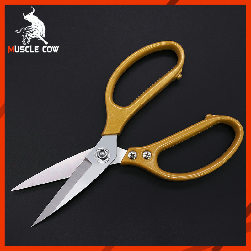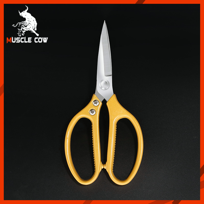 MUSCLE COW กรรไกรทำอาหาร กรรไกรทำครัว สีดำ มีปลอกสวม ตัดกระดูกได้ กรรไกรเอนกประสงค์ กรรไกรสแตนเลส อุปกรณ์ทำครัว