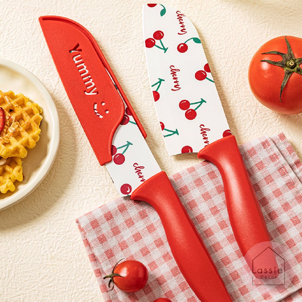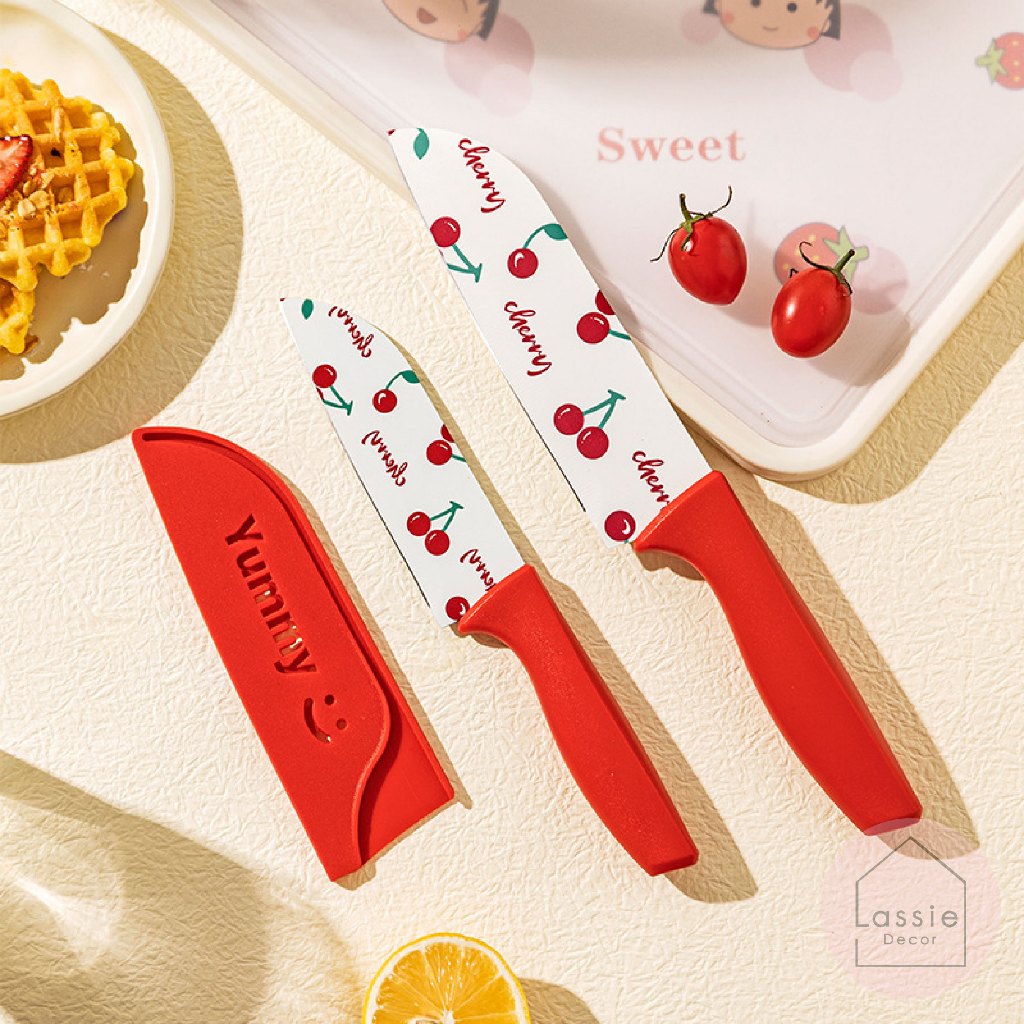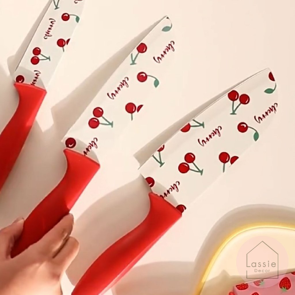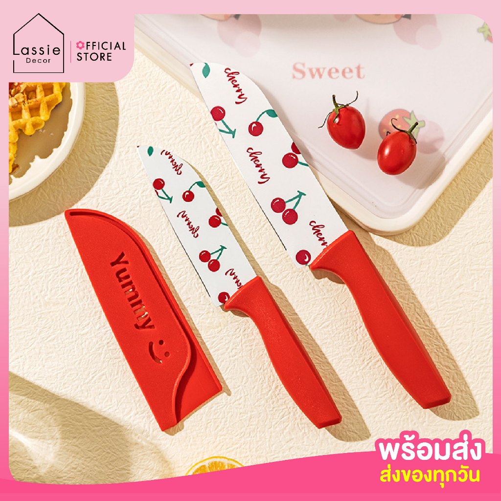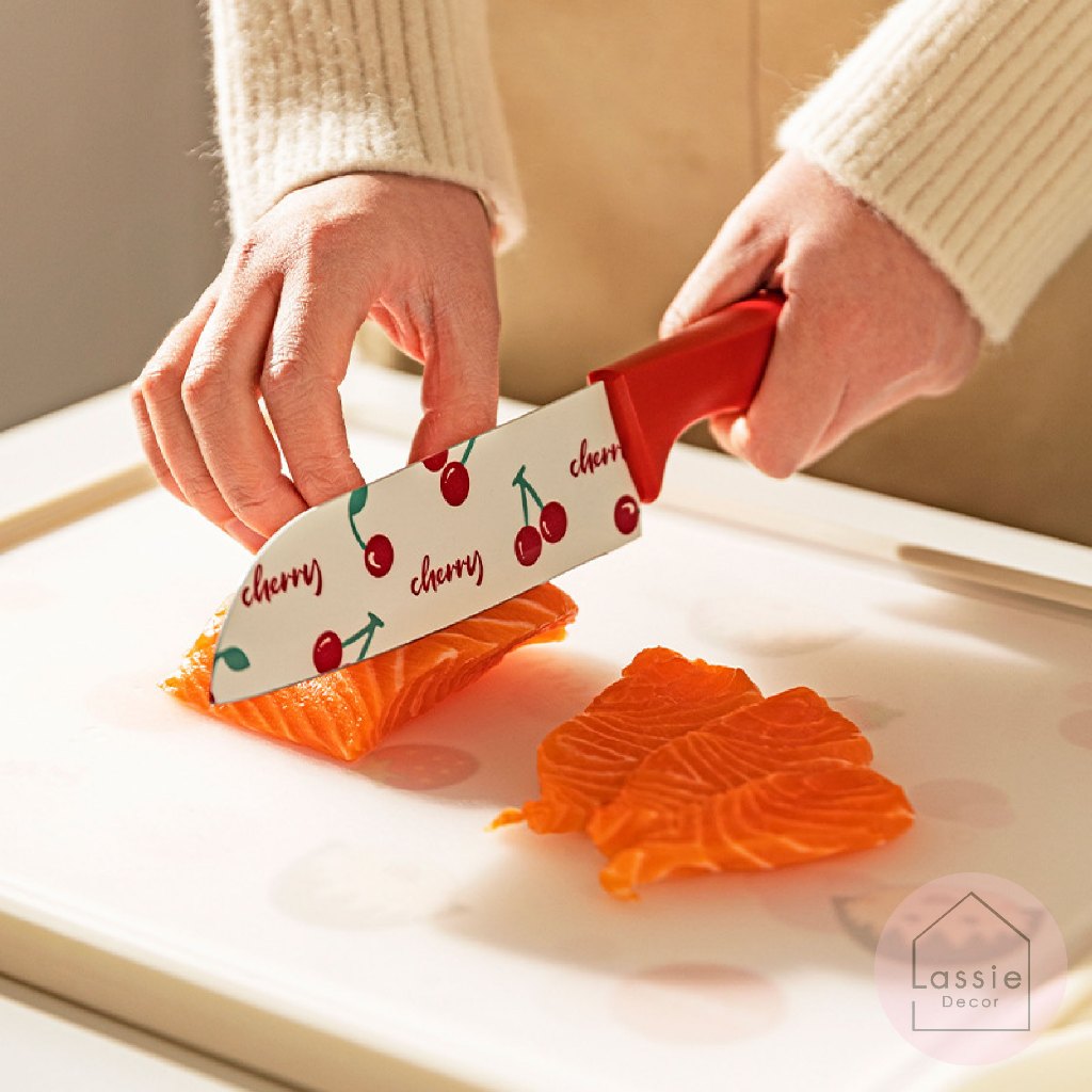 NEW🍒 มีดทำครัว ลายเชอร์รี่ 💖 ใช้งานง่าย น้ำหนักเบา ทนทาน ไม่เป็นสนิม🔪 Lassiedecor