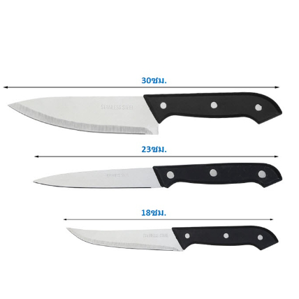 มีด ชุดมีด 3 ขนาด มีดทำครัว มีปลอกผักผลไม้ พร้อมส่ง(BB208)