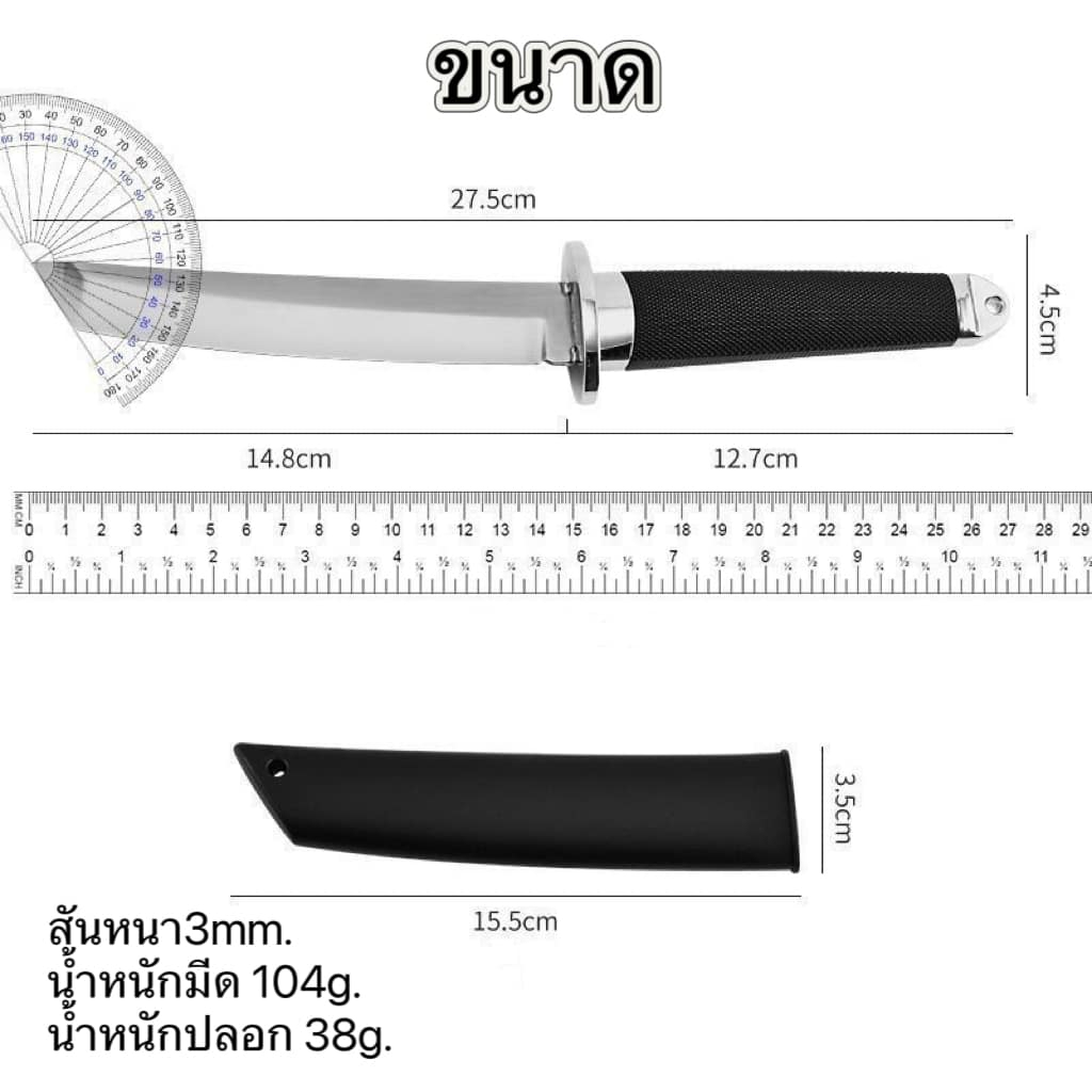 มีดทรงคาตะนะ พร้อมปลอกเก็บ ใช้งานเอนกประสงค์ สัน3มิล ด้ามABSกันลื่น ทำกับข้าว หั่นซอยผัก308