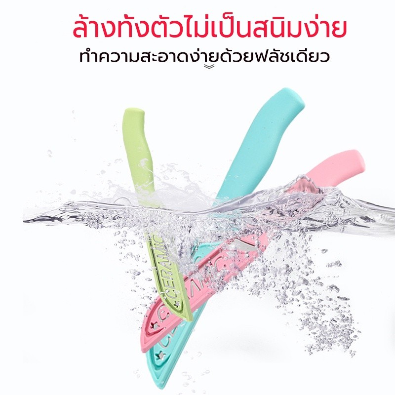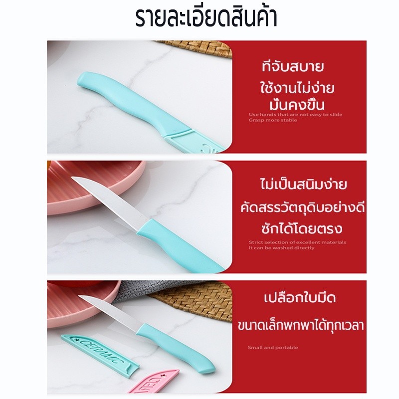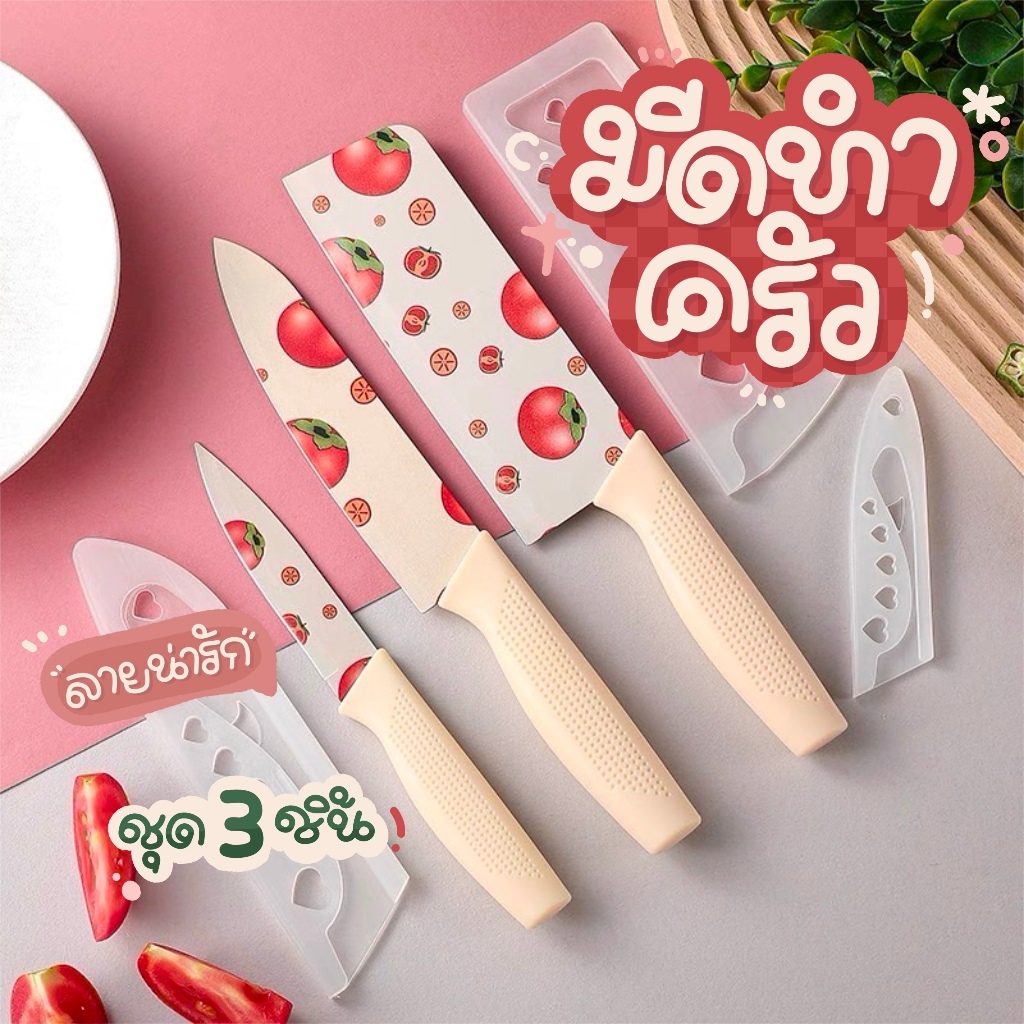 มีดทำครัวลายผลไม้ ลายดอกไม้ ชุด 3 ชิ้น มีดปลอกผลไม้ ลายน่ารัก หั่นหมู ผัก ผลไม้ มีดเคลือบเซลามิค สีพาสเทล ลายน่ารัก