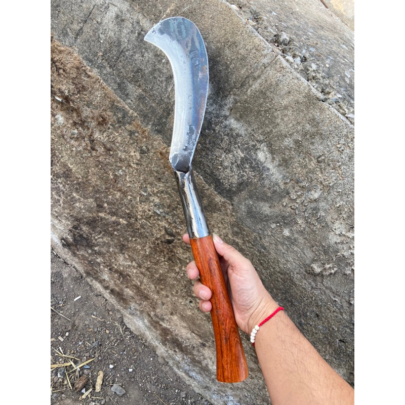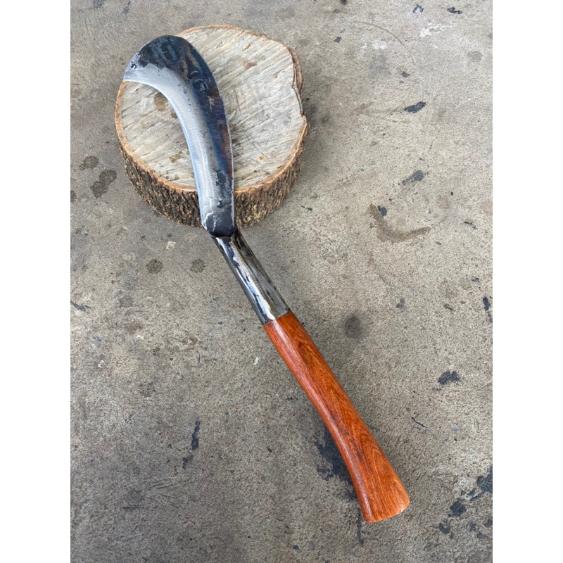 มีดพร้าขอ นกกลาง พร้อมด้ามไม้ประดู่ ยาวรวมด้าม 21 นิ้ว ใบมีดทำจากเหล็กแหนบแท้สวยคมทนแข็งเเรงสามารถฟันไม้ได้
