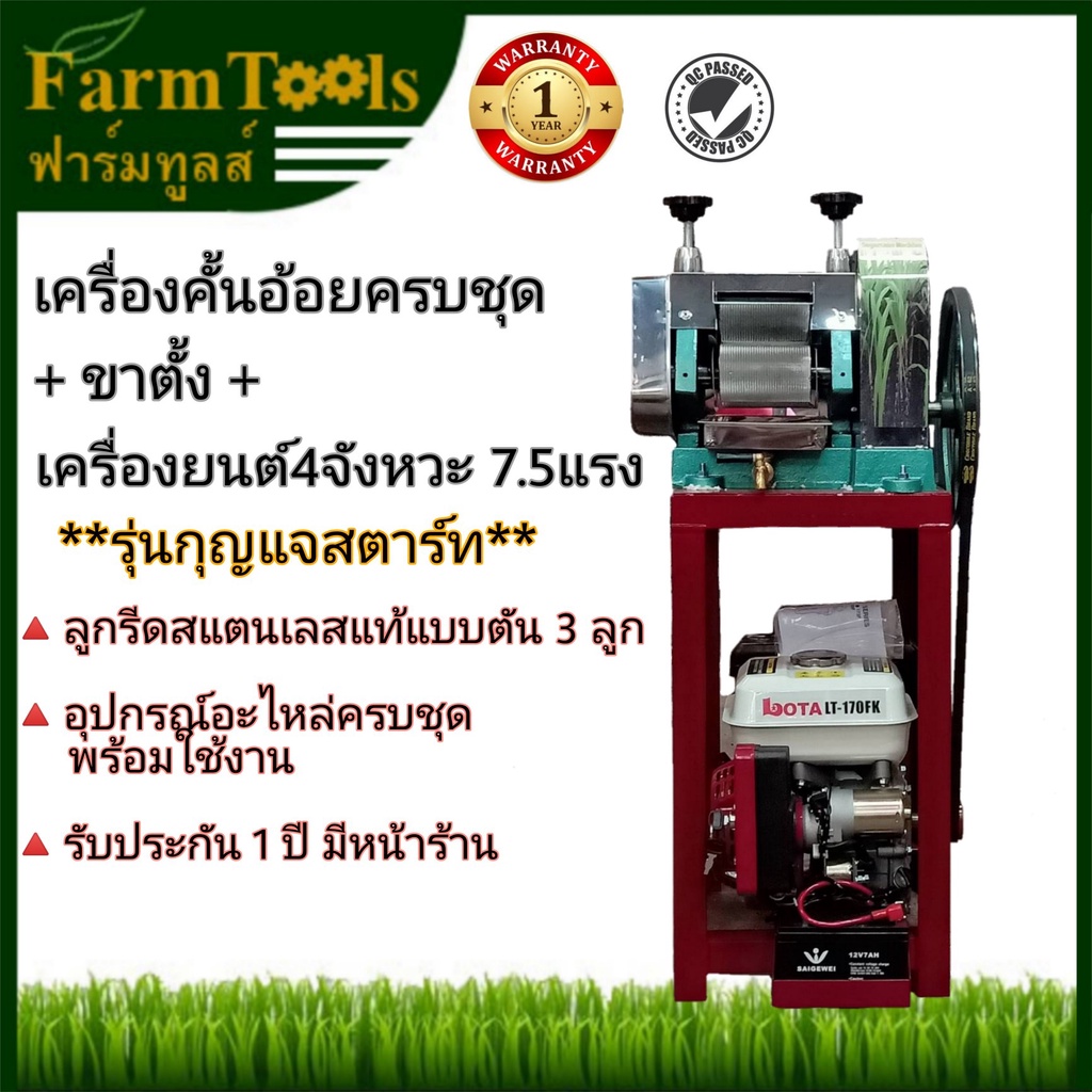 เครื่องคั้นอ้อยพร้อมขาตั้งและเครื่องยนต์เบนซินกุญแจสตาร์ท 7.5 แรงเฟืองเหล็ก