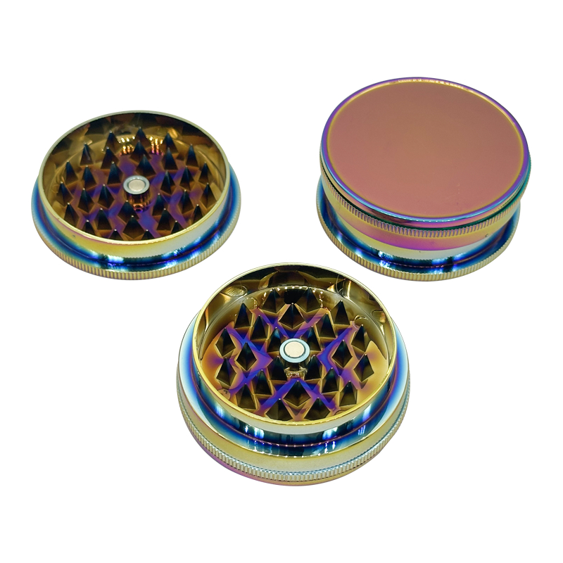 เครื่องบดหลากสี 53 มม. ผลิตจากวัสดุพลาสติกสําหรับวัตถุดิบอาหารและเครื่องเทศครัวเครื่องมือ
