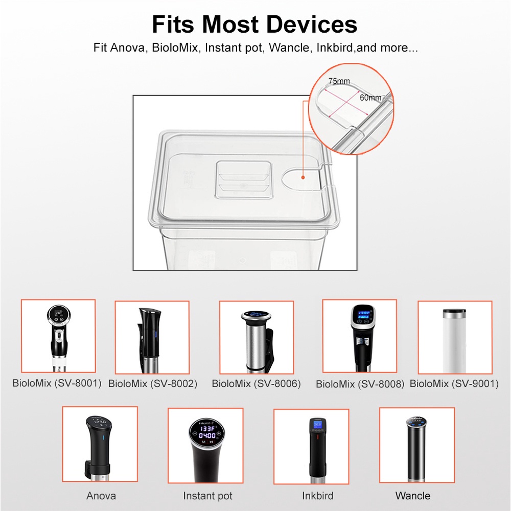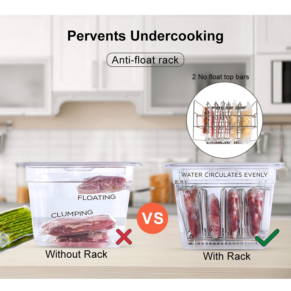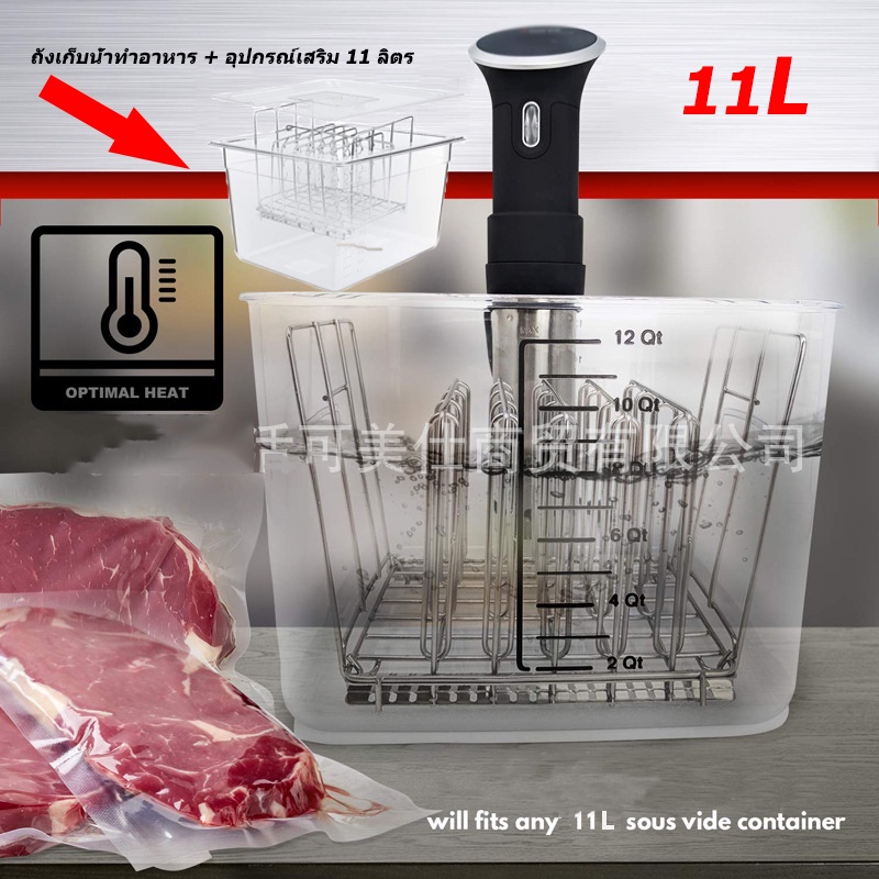 อ่างซูวี พร้อมฝาปิดขนาด 11 ลิตร ตะแกรงสแตนเลส Sous vide ชั้นยึดจับสเเตนเลส Sous Vide Cooker 11L Container and Rack