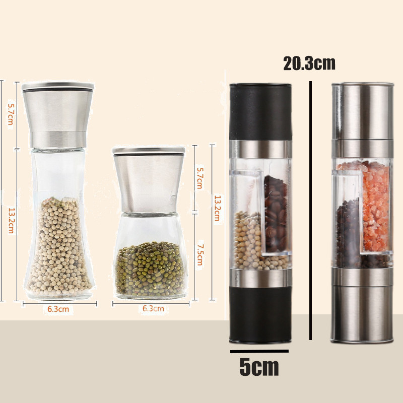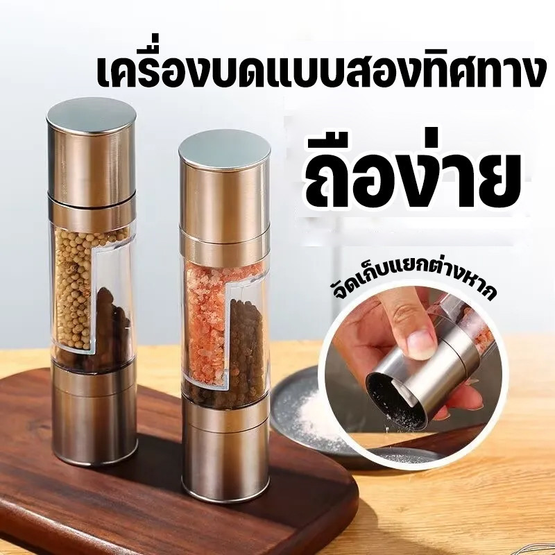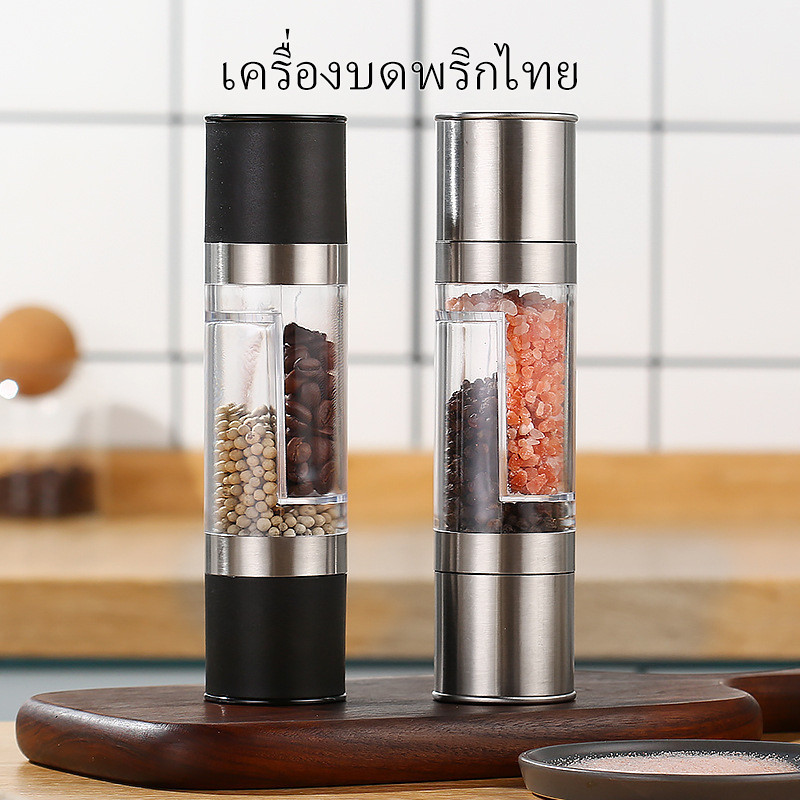 เครื่องบดพริกไทย(สแตนเลส 2หัว แบบ 2in1) มีฝาปิด ที่บดพริกไทย เครื่องบดห้องครัว พริกไทย เม็ดพริกไทย