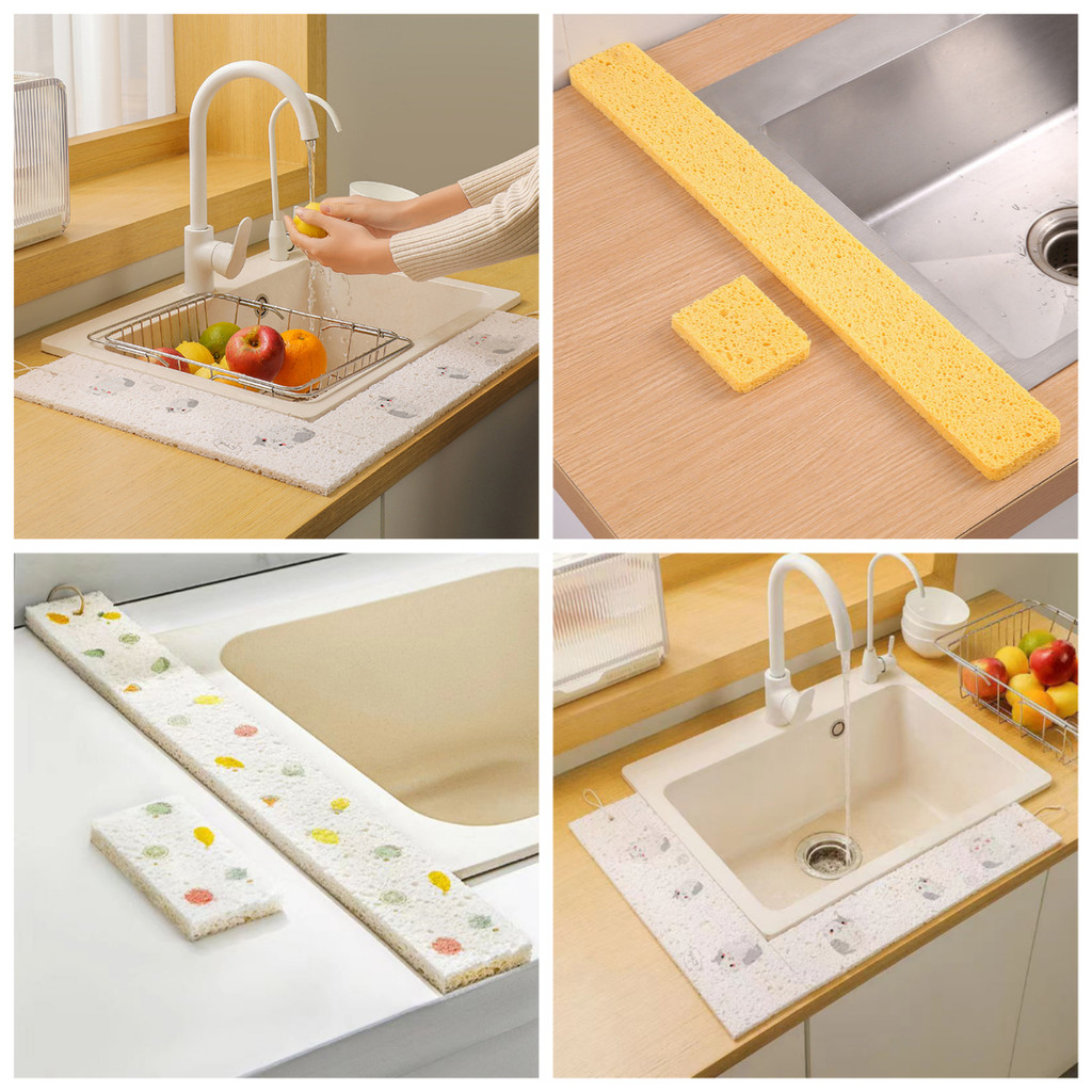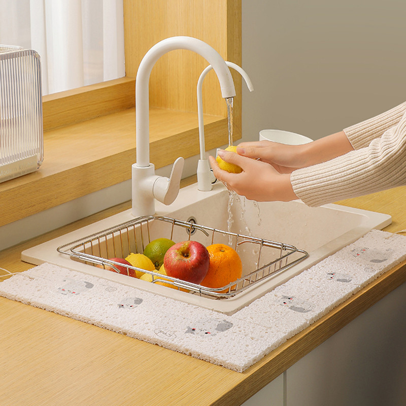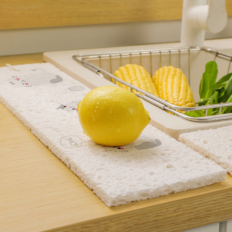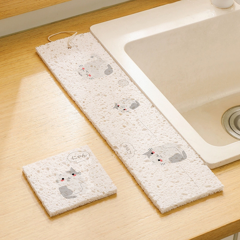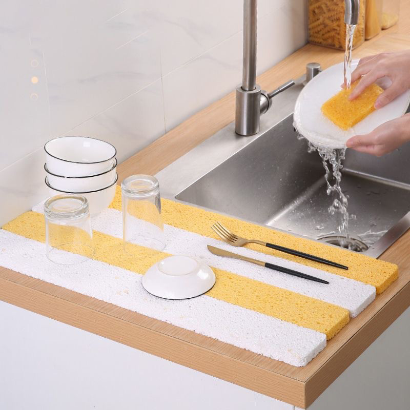 อ่างล้างจานแผ่นฟองน้ําดูดซับเคาน์เตอร์เยื่อไม้ผ้าฝ้ายทนทานเสื่อแคบอุปกรณ์บ้าน