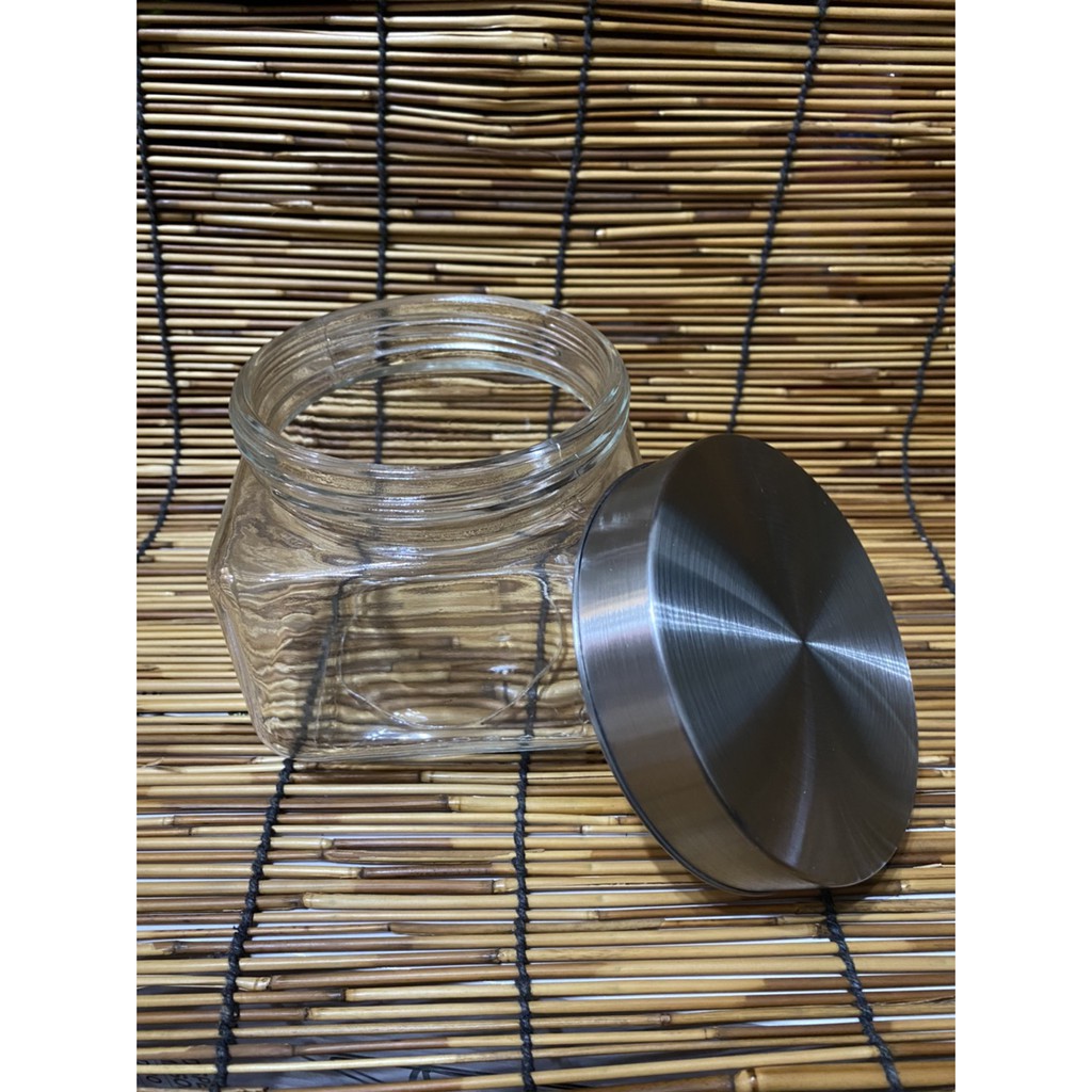 โหลแก้วสี่เหลี่ยมฝาสแตนเลส(9907Y) ความจุ0.8ลิตร