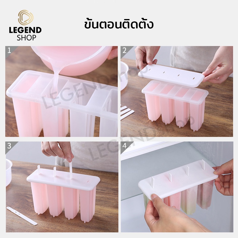 แม่พิมพ์ไอติม 4 แท่ง แม่พิมพ์น้ำแข็ง พิมพ์ไอศครีม DIY วัสดุ พลาสติก