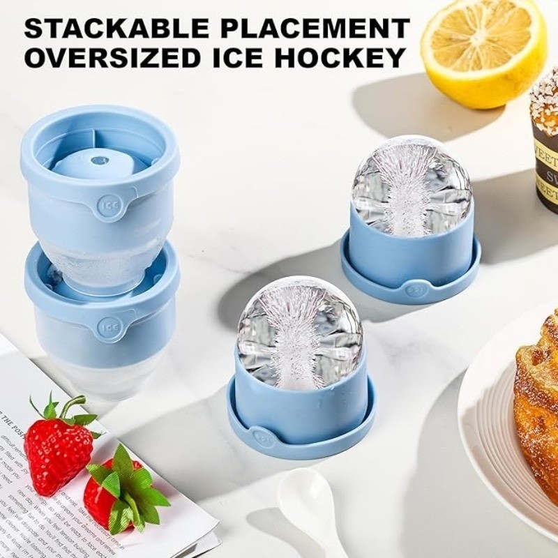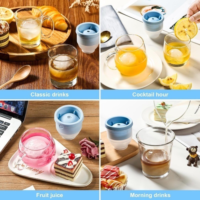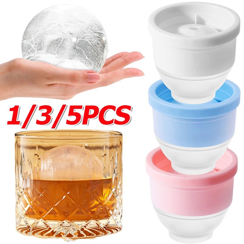 แม่พิมพ์ลูกน้ําแข็งที่ปล่อยง่ายวางซ้อนกันได้พร้อมฝาปิด-เครื่องทําน้ําแข็งวิสกี้ทรงกลมซิลิโคน-5ซม. 1/3/5ชิ้น
