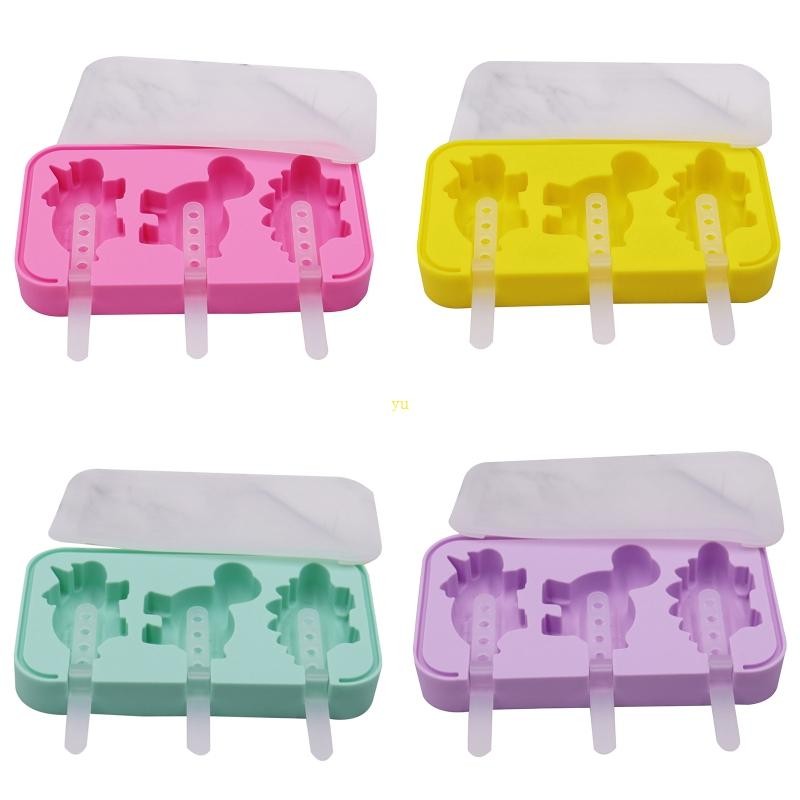 แม่พิมพ์ไอศกรีมซิลิโคน yu น้ําแข็งรูปทรงไดโนเสาร์สําหรับ Pop Mould ไอศกรีมแบบใช้ซ้ําได้ Mou