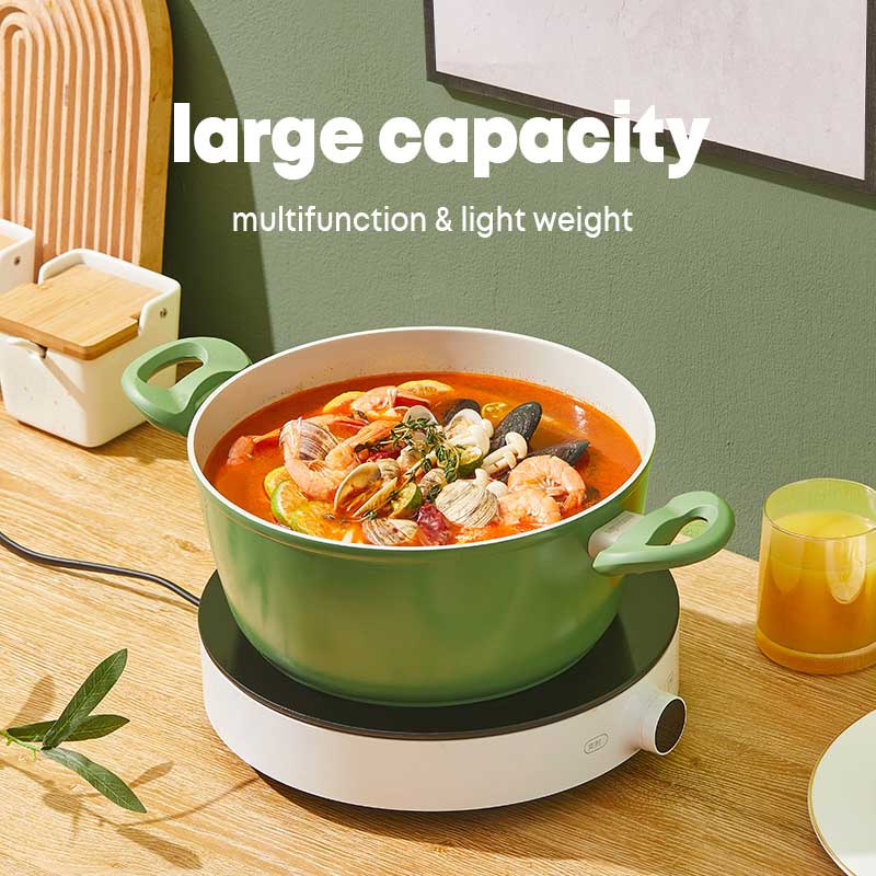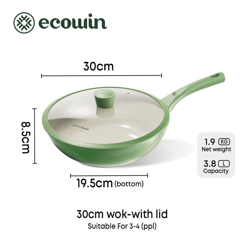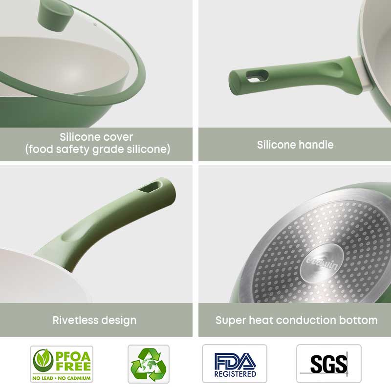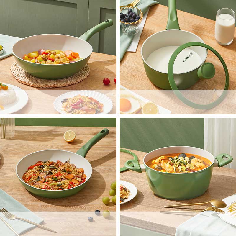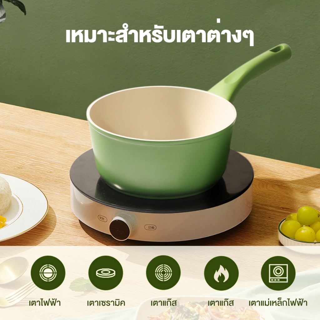 Ecowin กระทะไม่ติดกระทะทอดลึก กระทะ หม้อซุป หม้อนม สีเขียว พร้อมฝาปิด การนำความร้อนอย่างรวดเร็วและเครื่องครัวหนาเหมาะสำหรับเตาทั้งหมด