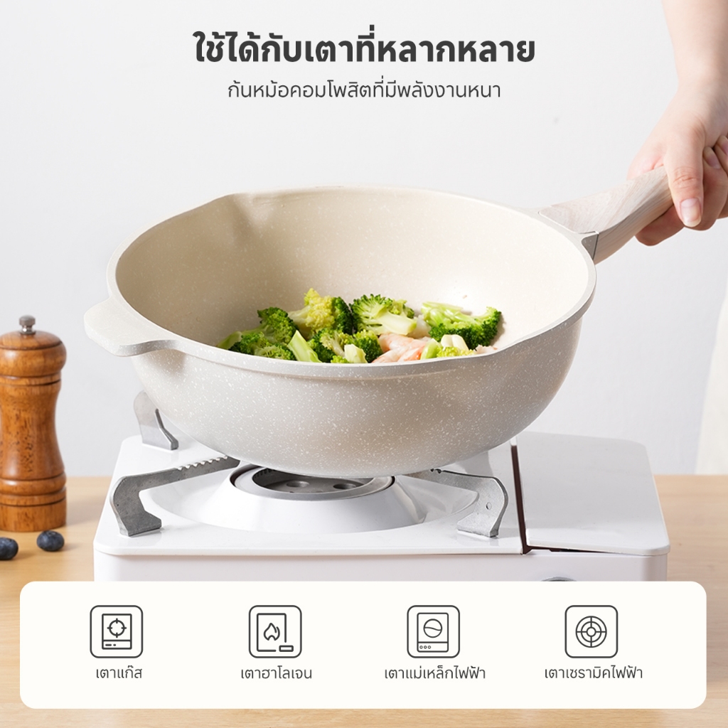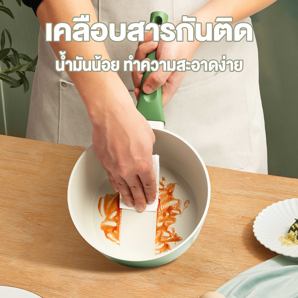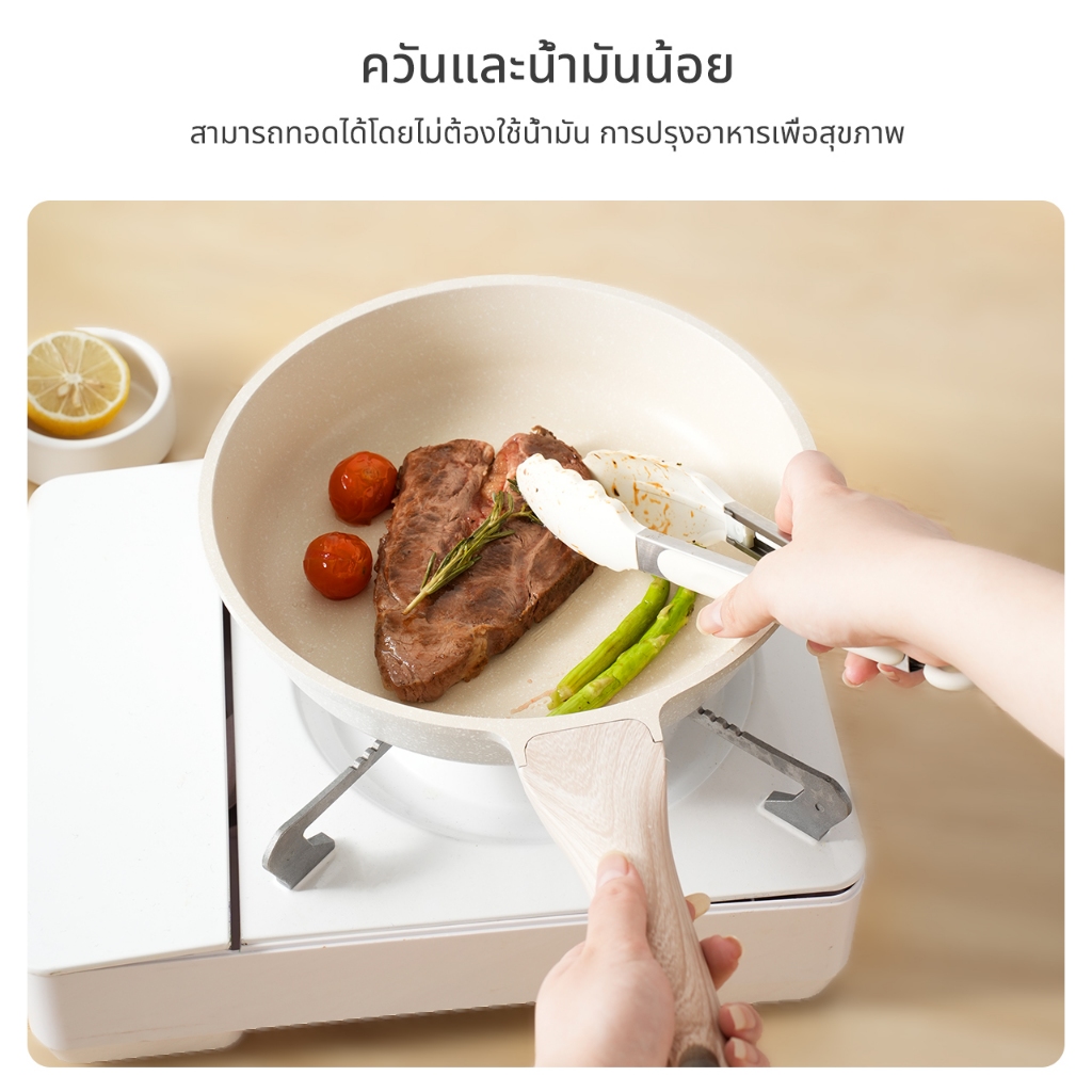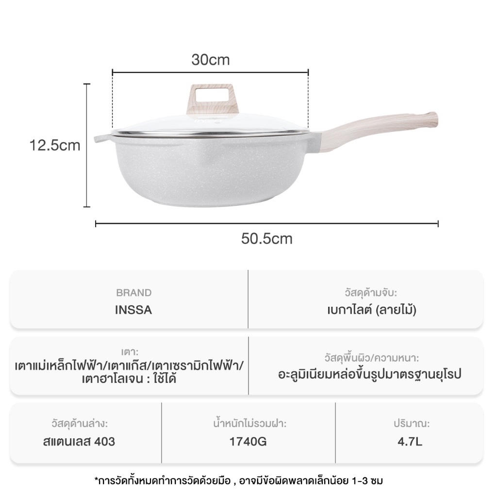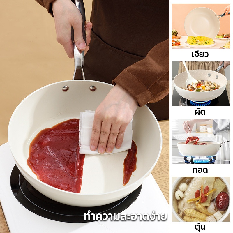 [รับประกัน 1 ปี] INSSA กระทะ กระทะหินไมฟาน ไม่ติดกระทะ ใช้ในครัวเรือน ผัด ทอด เตาแม่เหล็กไฟฟ้า กระทะก้นลึกสีขาว GUOJ011