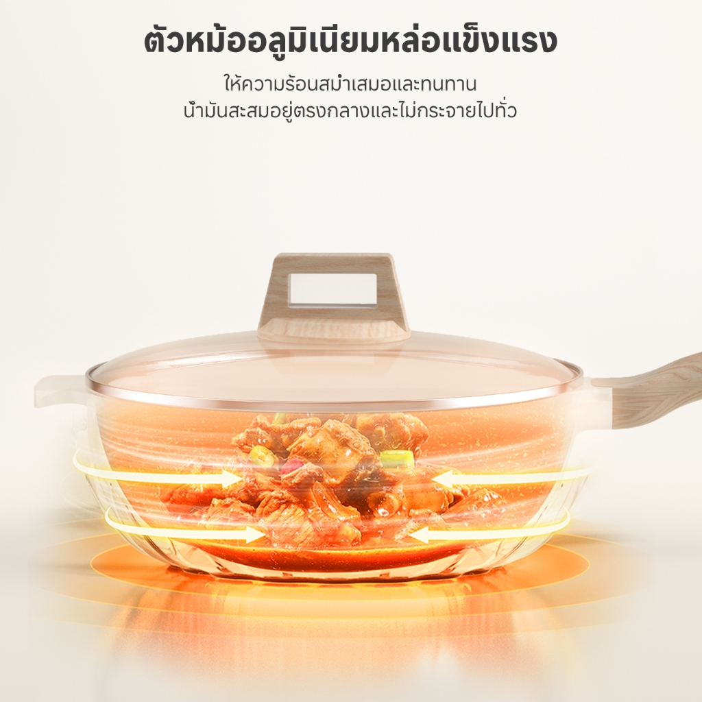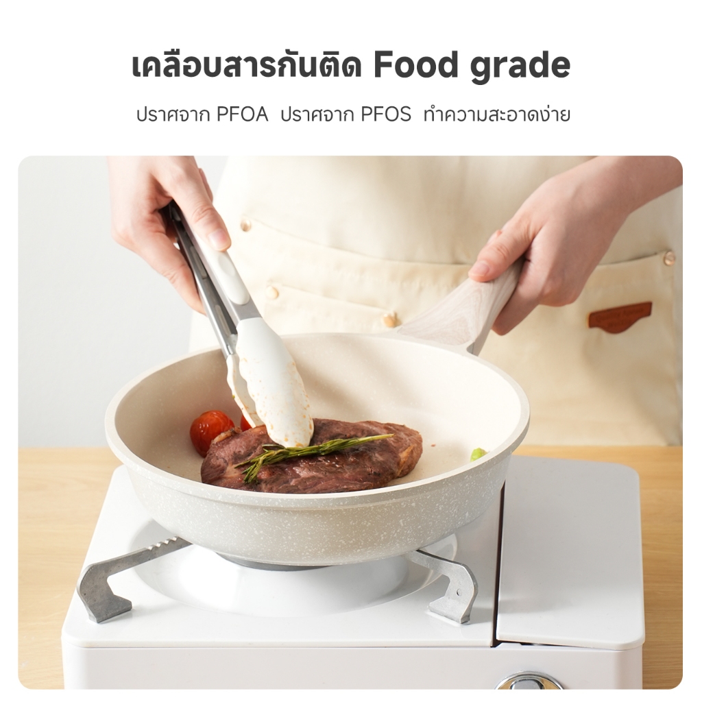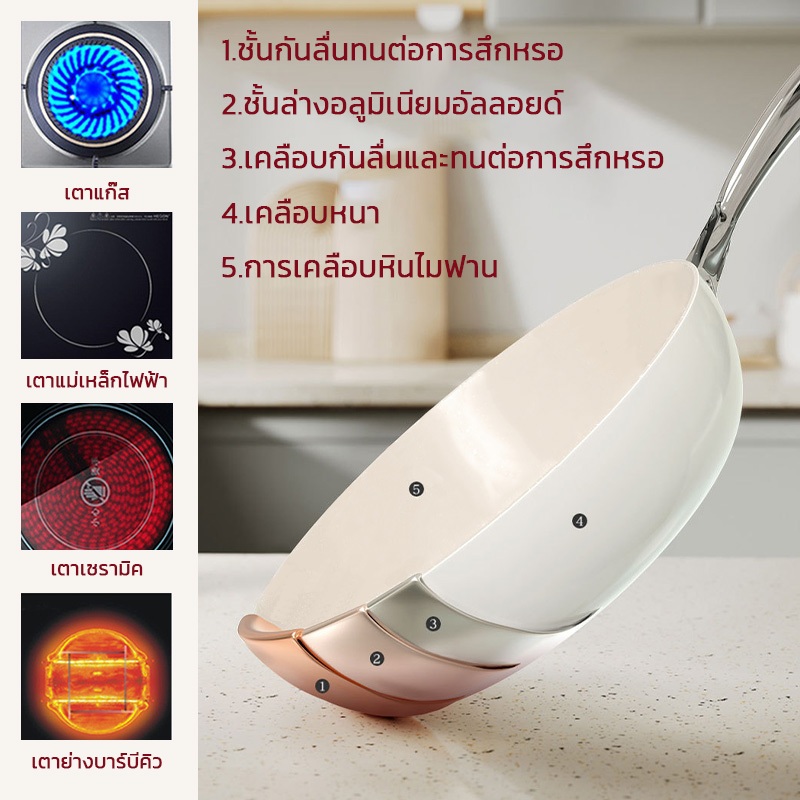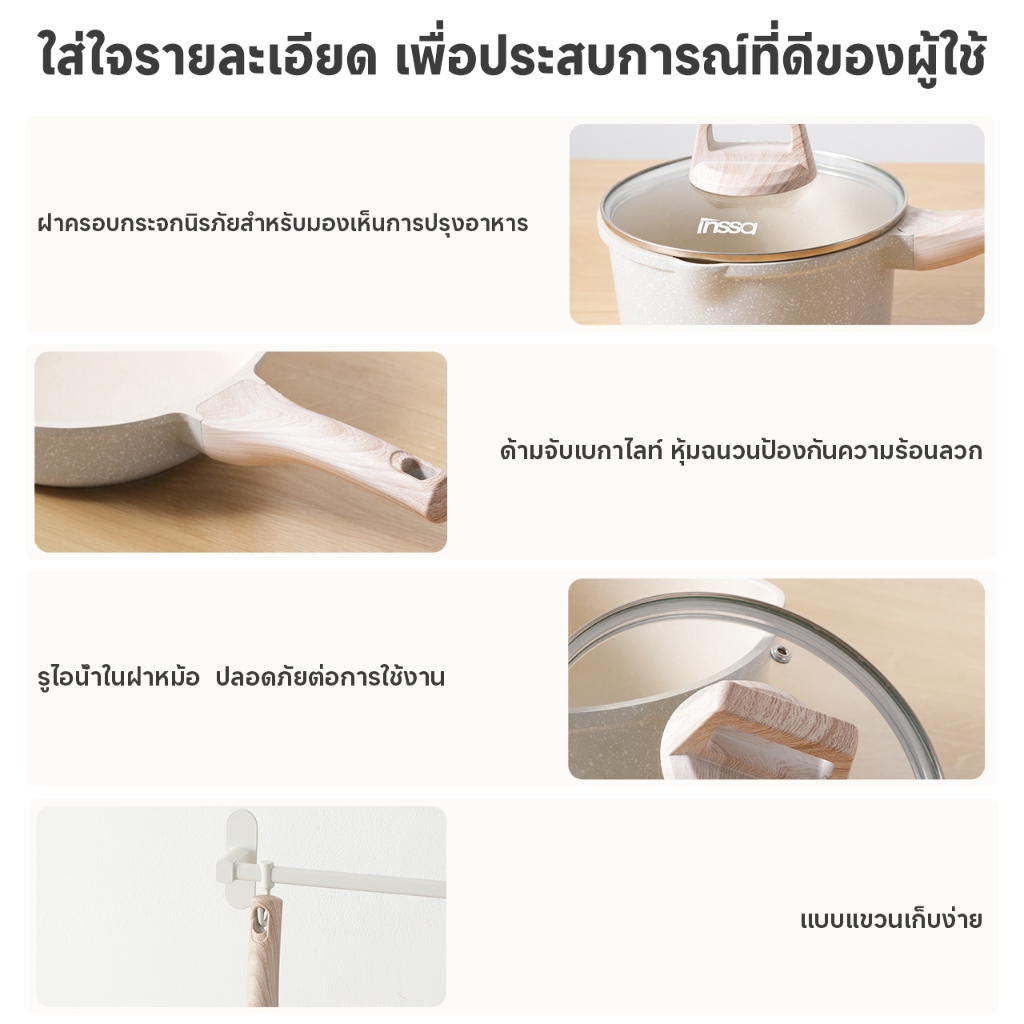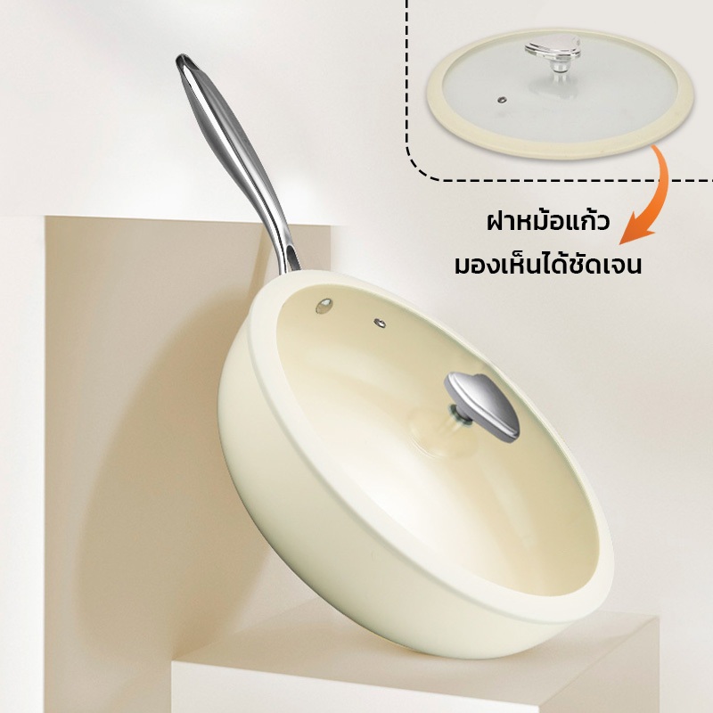 [รับประกัน 1 ปี] INSSA กระทะ กระทะหินไมฟาน ไม่ติดกระทะ ใช้ในครัวเรือน ผัด ทอด เตาแม่เหล็กไฟฟ้า กระทะก้นลึกสีขาว GUOJ011