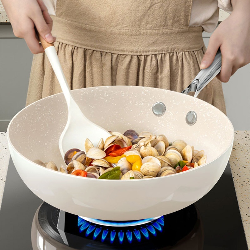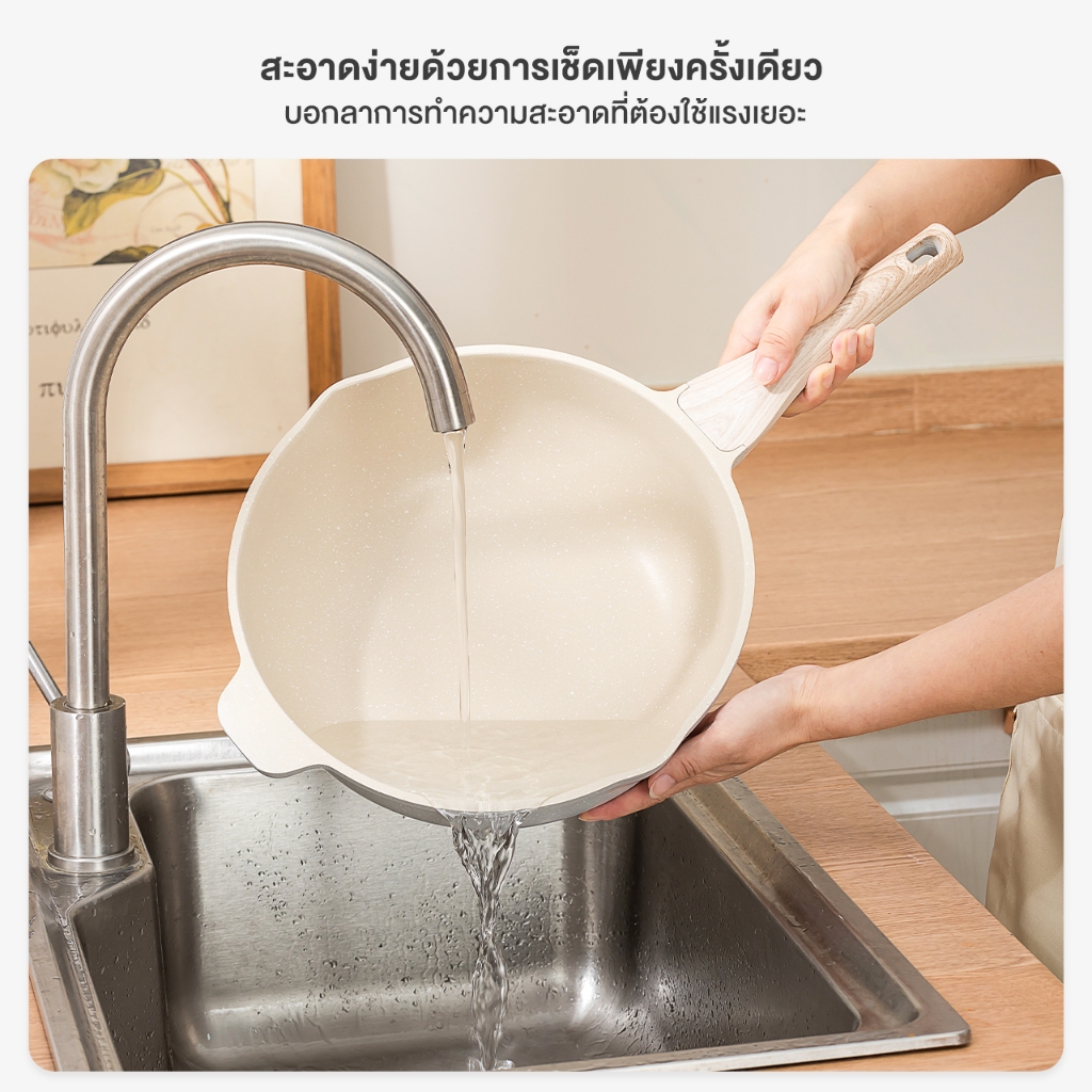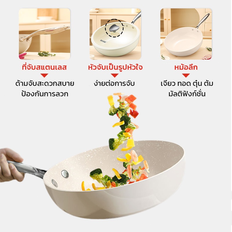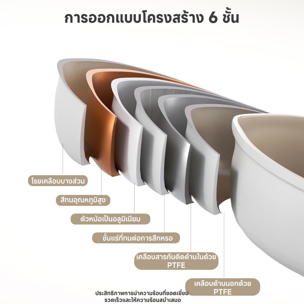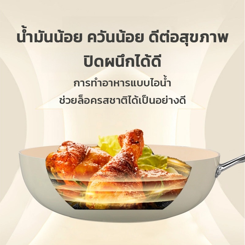 [รับประกัน 1 ปี] INSSA กระทะ กระทะหินไมฟาน ไม่ติดกระทะ ใช้ในครัวเรือน ผัด ทอด เตาแม่เหล็กไฟฟ้า กระทะก้นลึกสีขาว GUOJ011