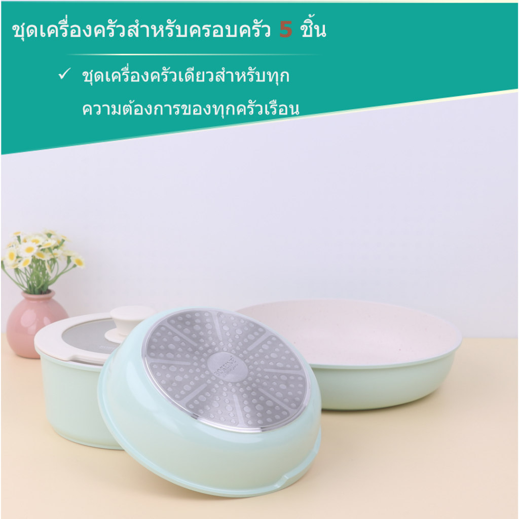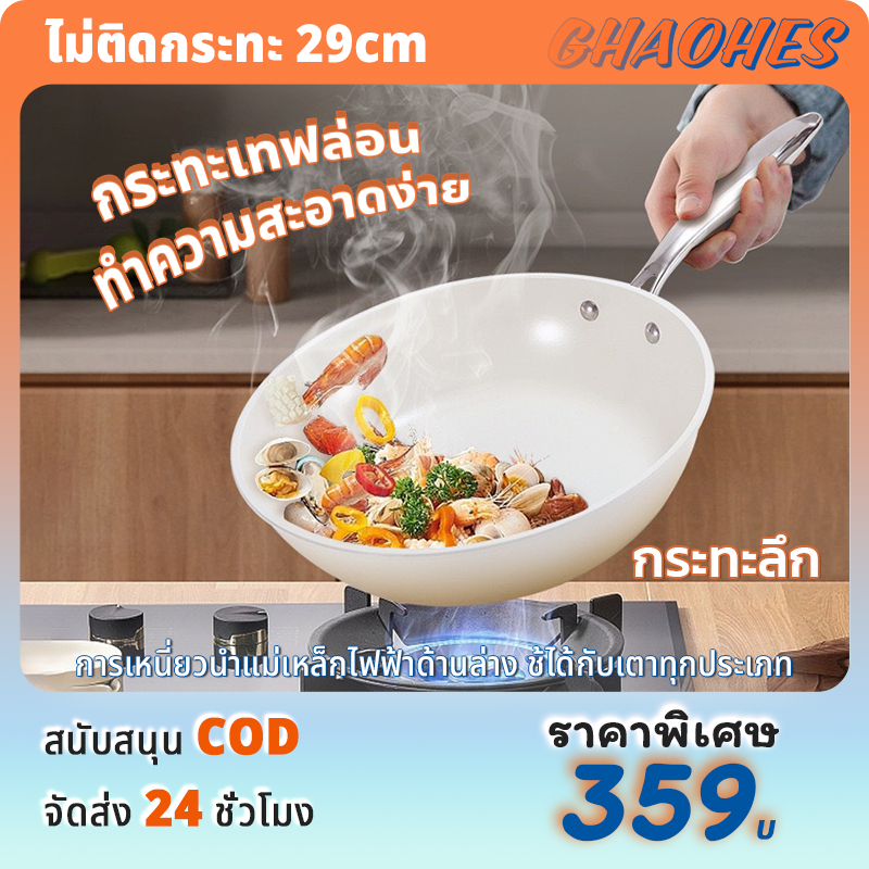 29ซม.ไม่ติดกระทะ กระทะเคลือบหินอ่อนลึก มีฝาปิด ตาแม่เหล็กไฟ้ฟ้า เตาแก๊ส ใช้ได้ กระทะเทฟล่อน