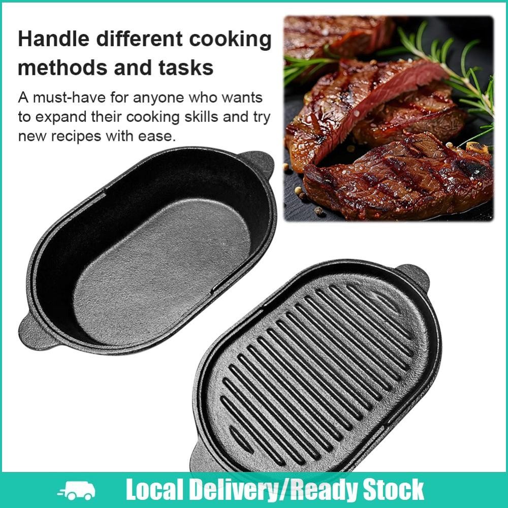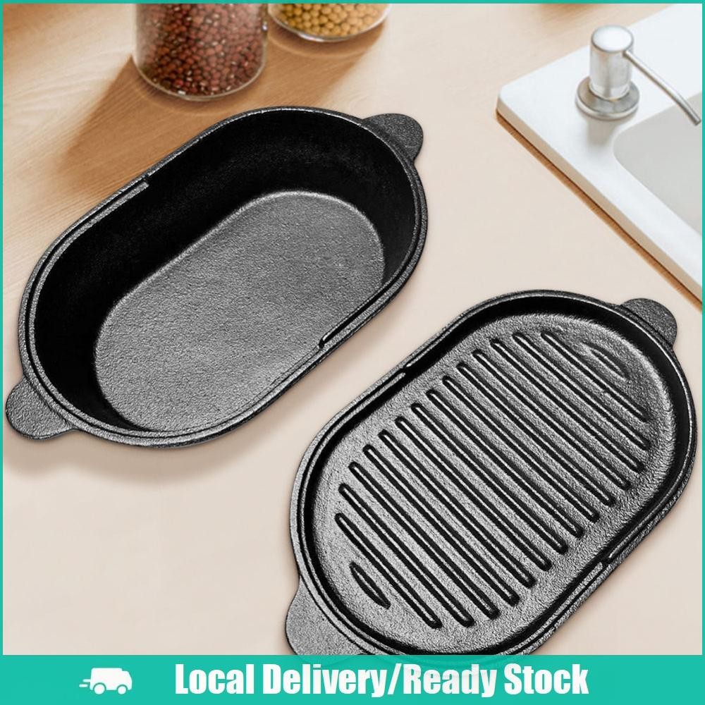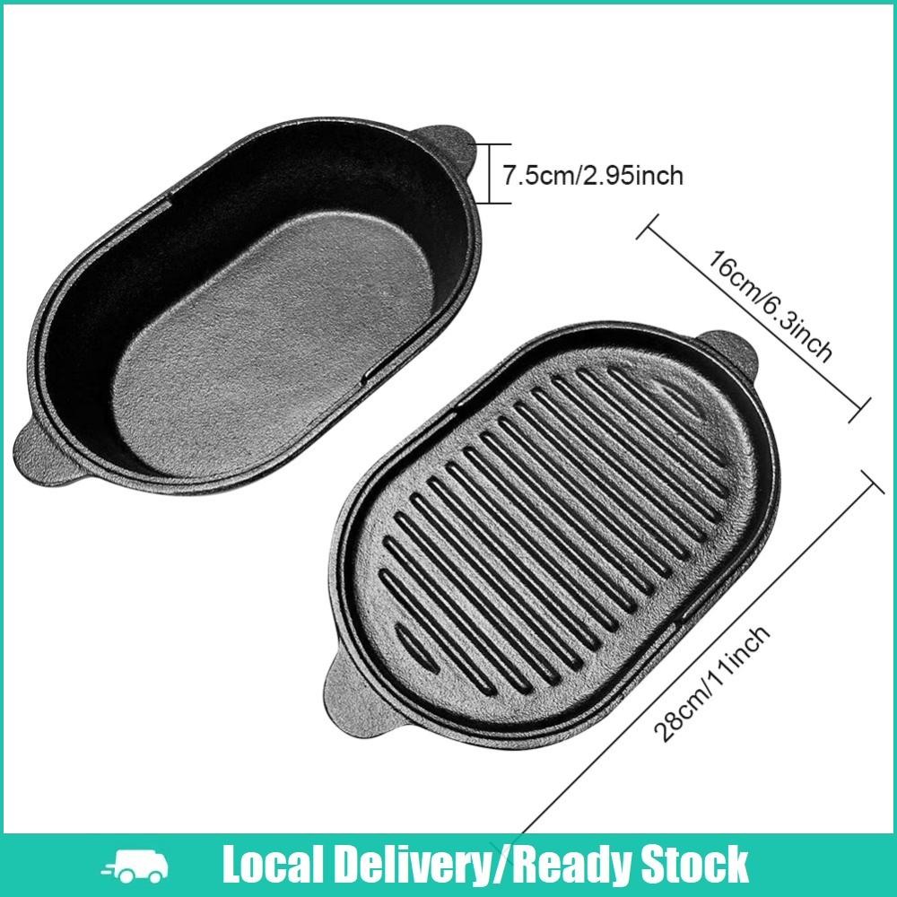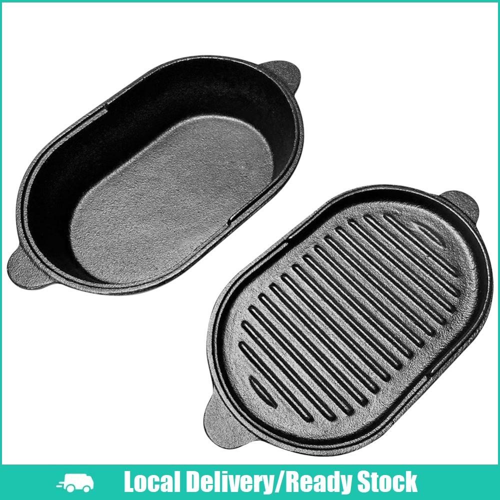 [จัดส่งในพื้นที่] 11 X 6.3in เหล็กหล่อ Griddle กระทะย่างรูปไข่แผ่นย่างทักษะย้อนกลับสําหรับทําอาหารในร่มและกลางแจ้ง