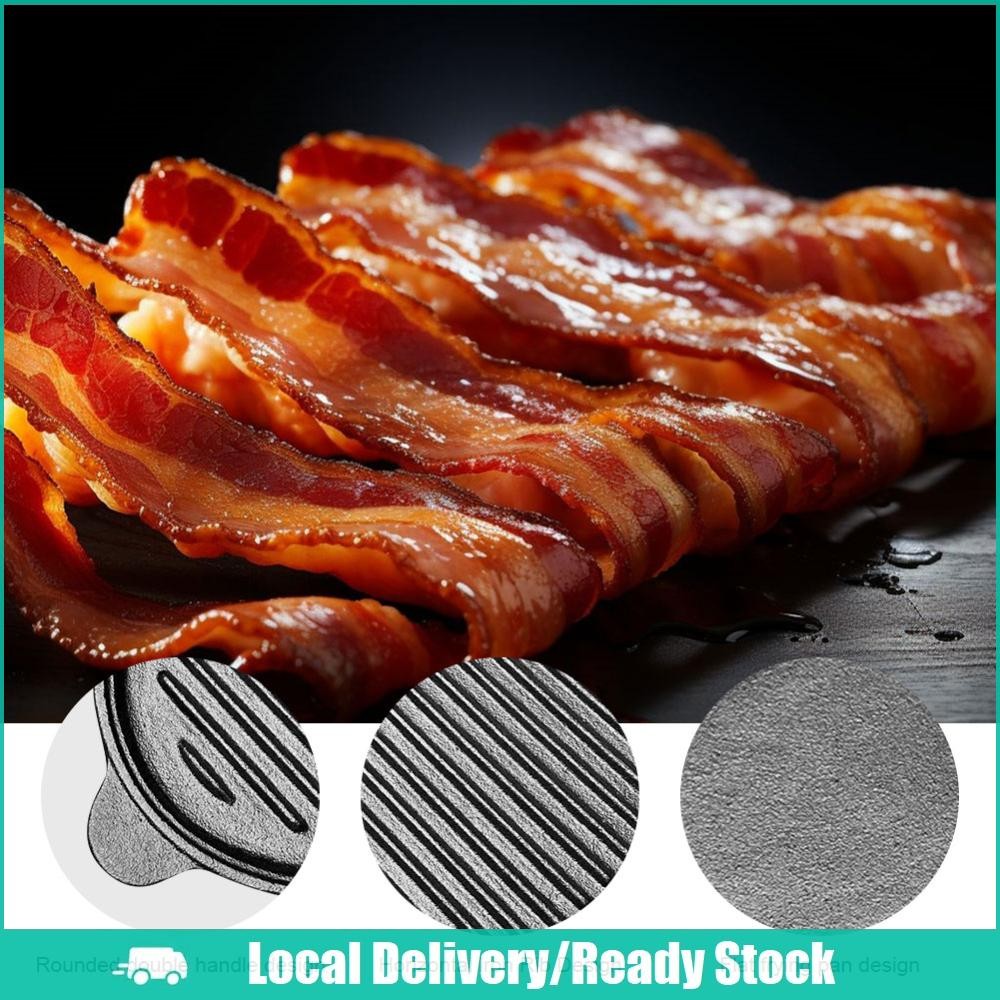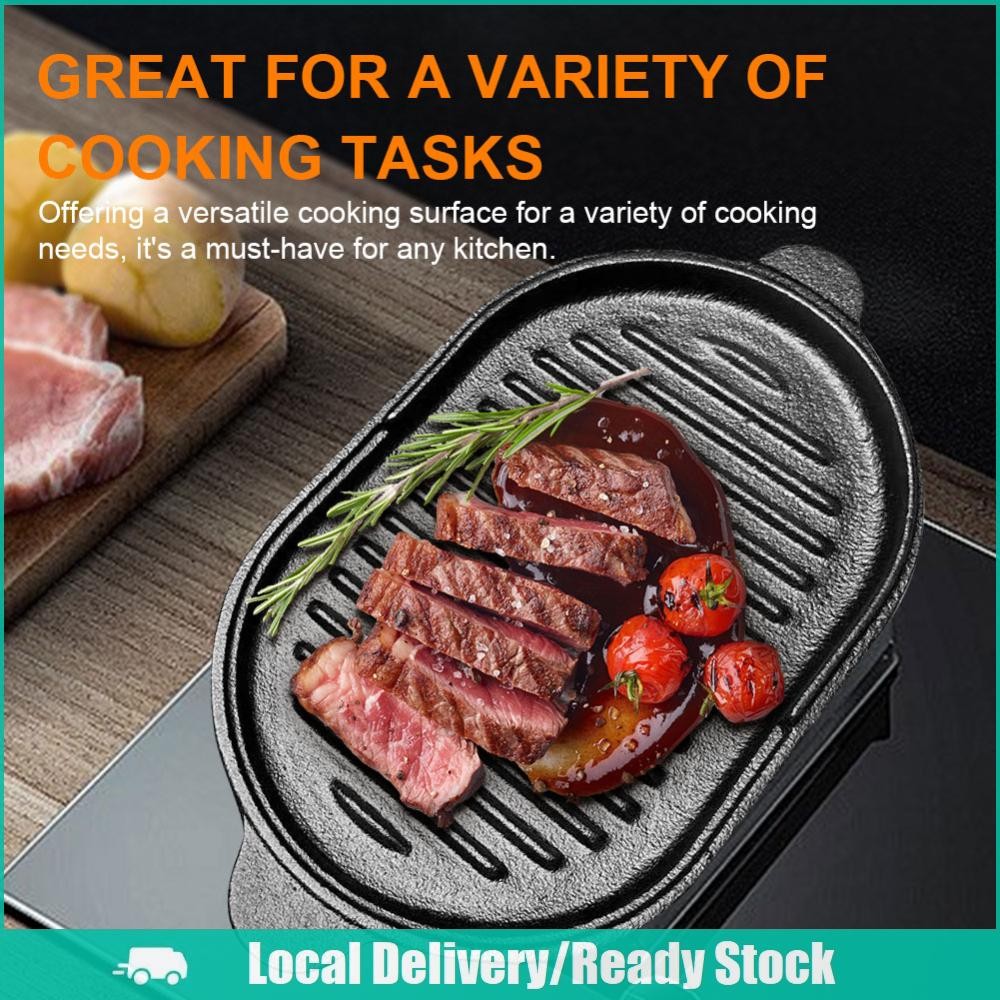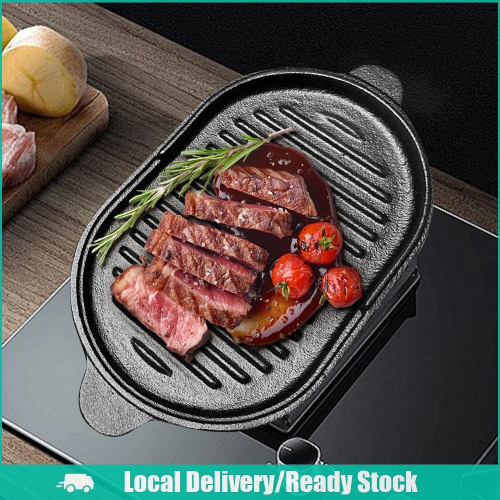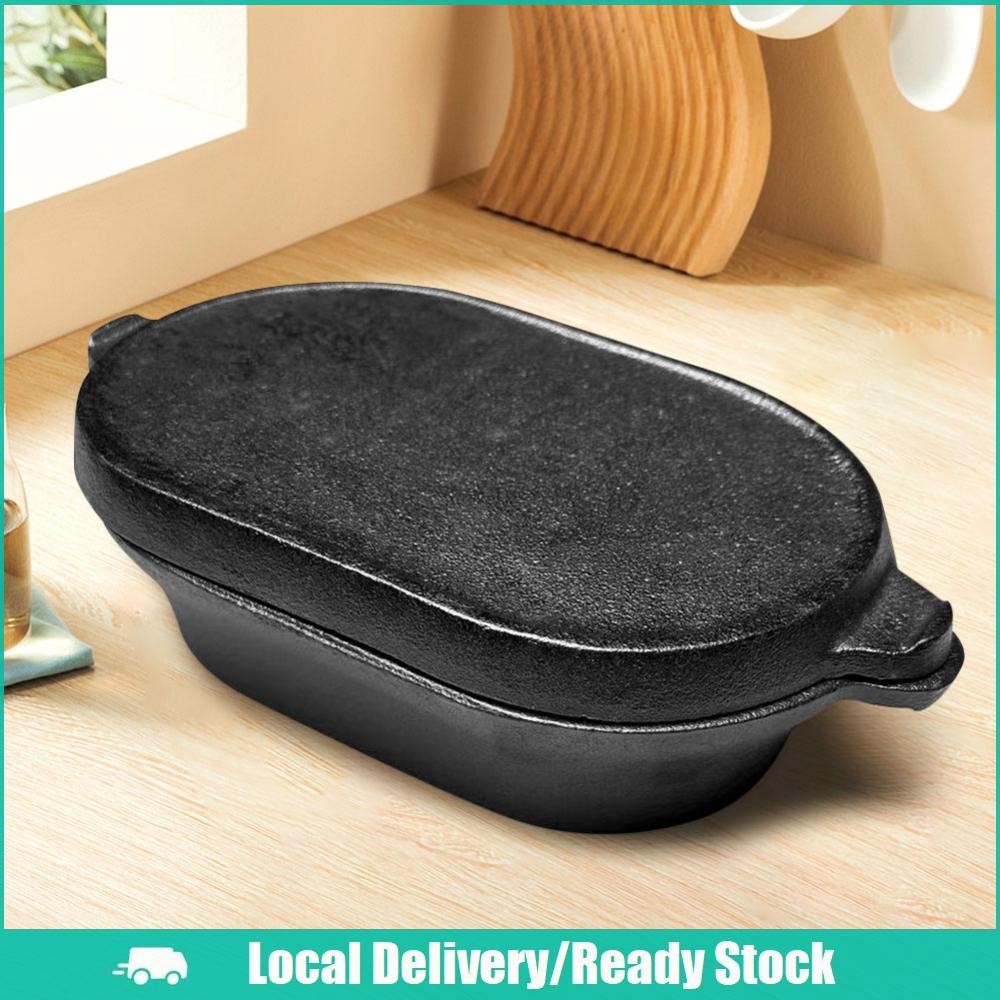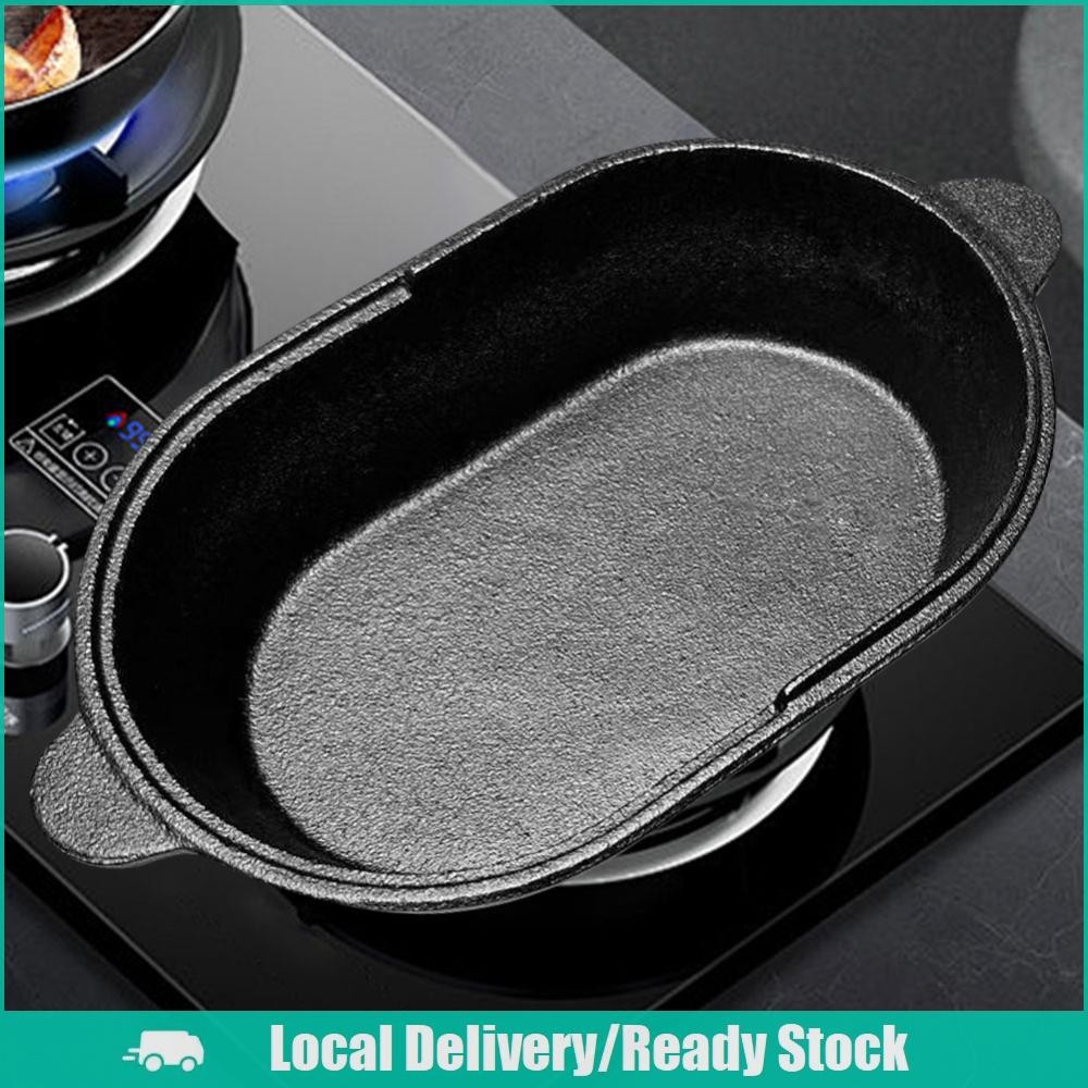 [จัดส่งในพื้นที่] 11 X 6.3in เหล็กหล่อ Griddle กระทะย่างรูปไข่แผ่นย่างทักษะย้อนกลับสําหรับทําอาหารในร่มและกลางแจ้ง