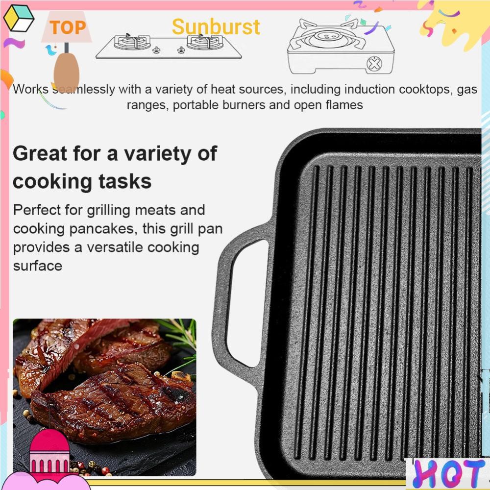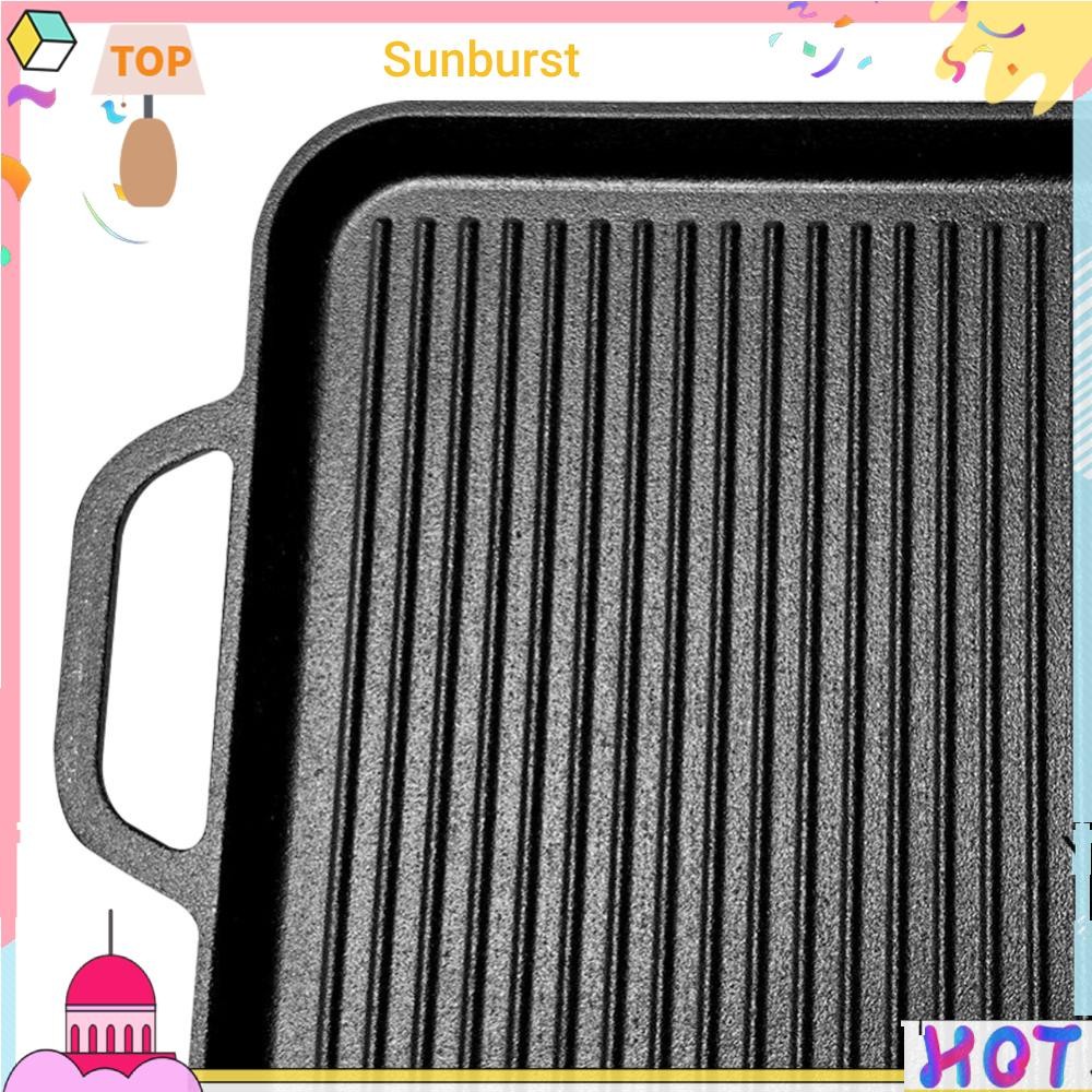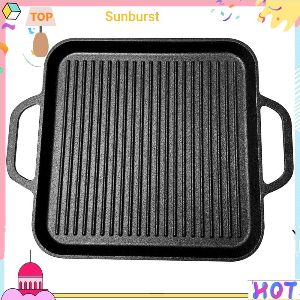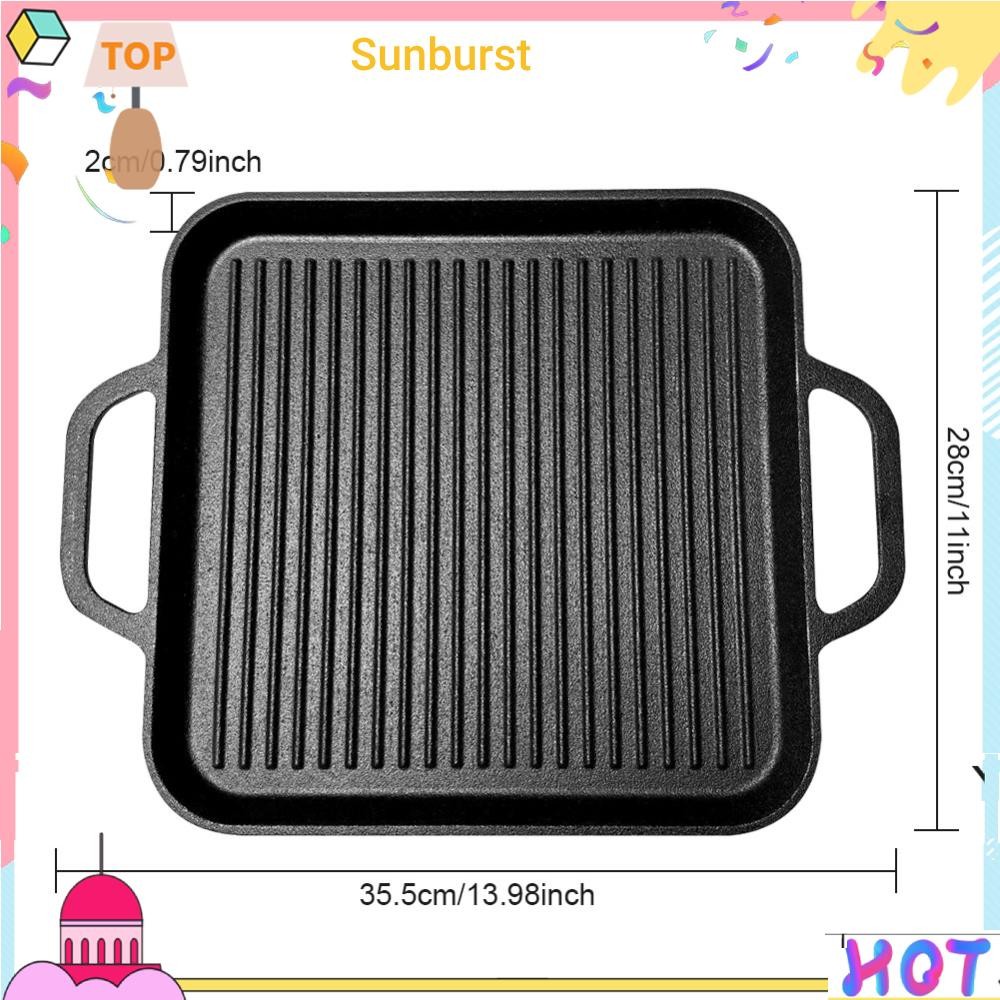 11in กระทะเหล็กหล่อ Griddle กระทะแบนสี่เหลี่ยมสําหรับแก๊สเตาตั้งพื้นเตาอบหรือเปิดไฟ [Sunburst11.th]