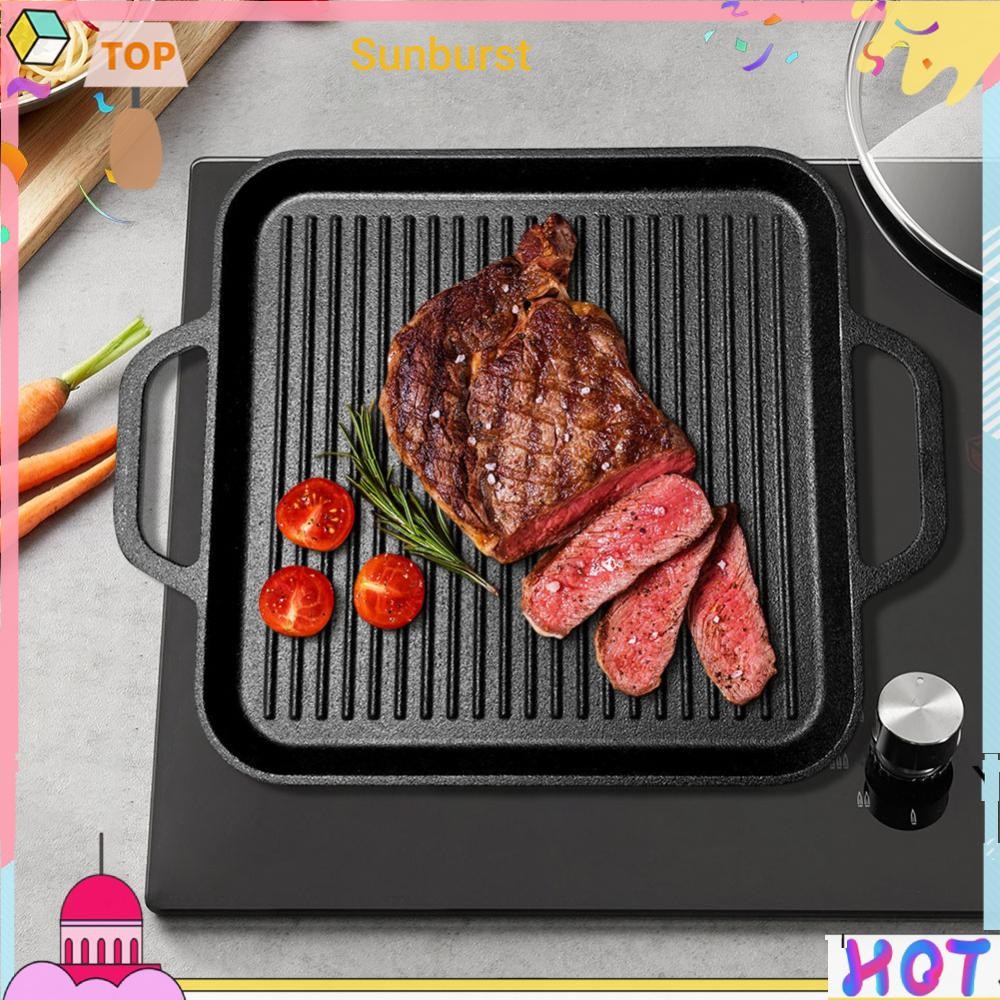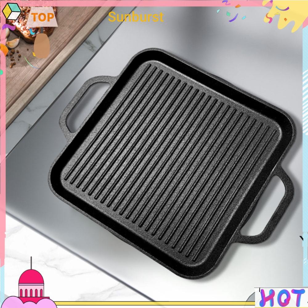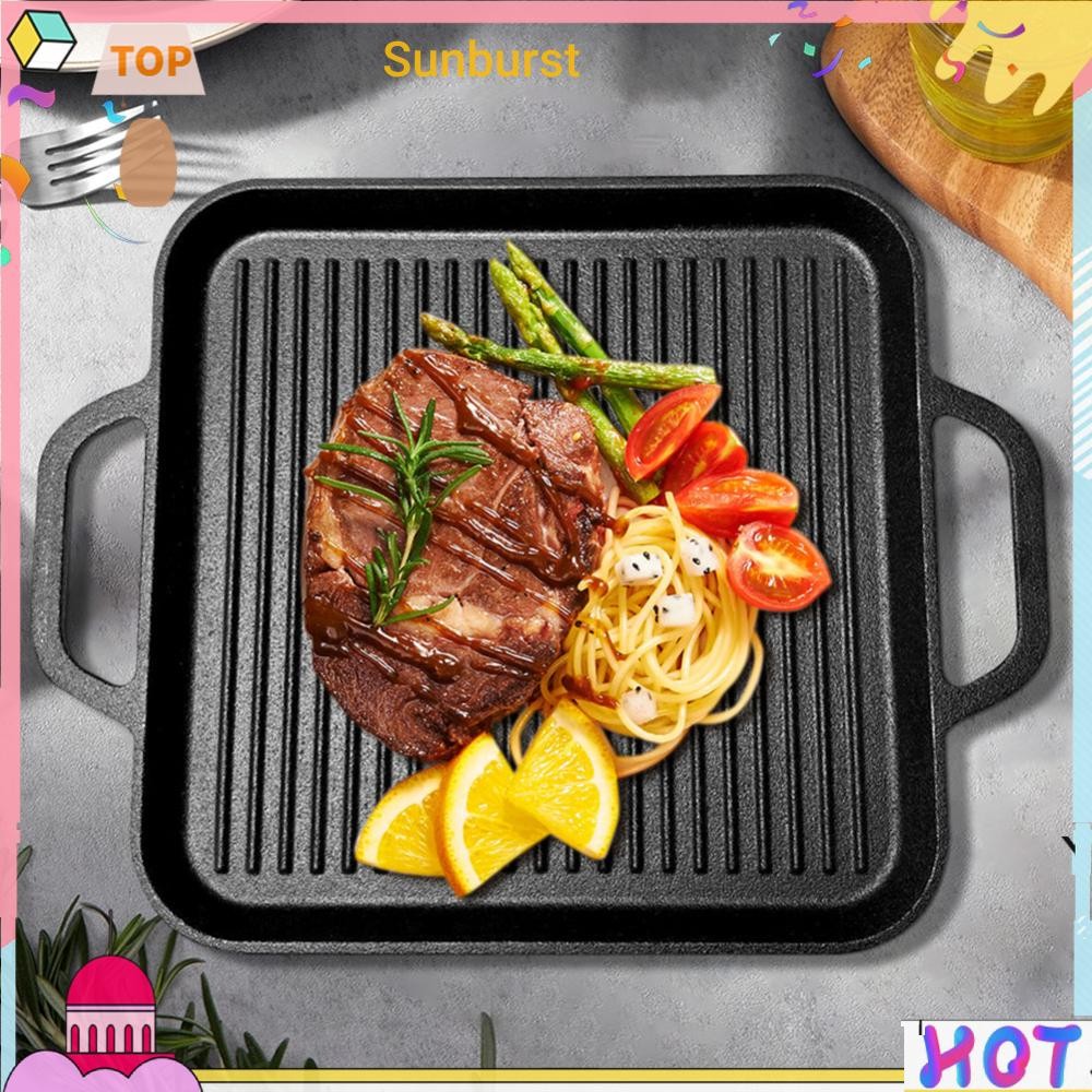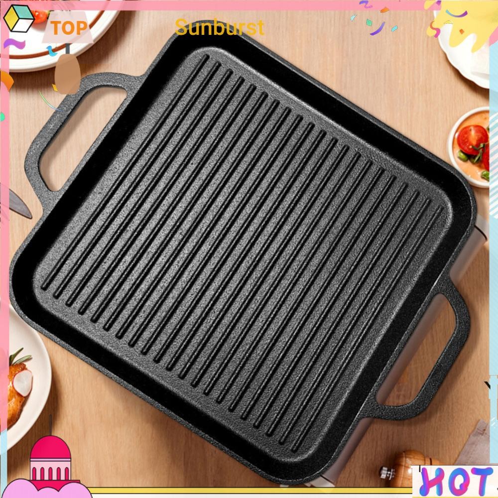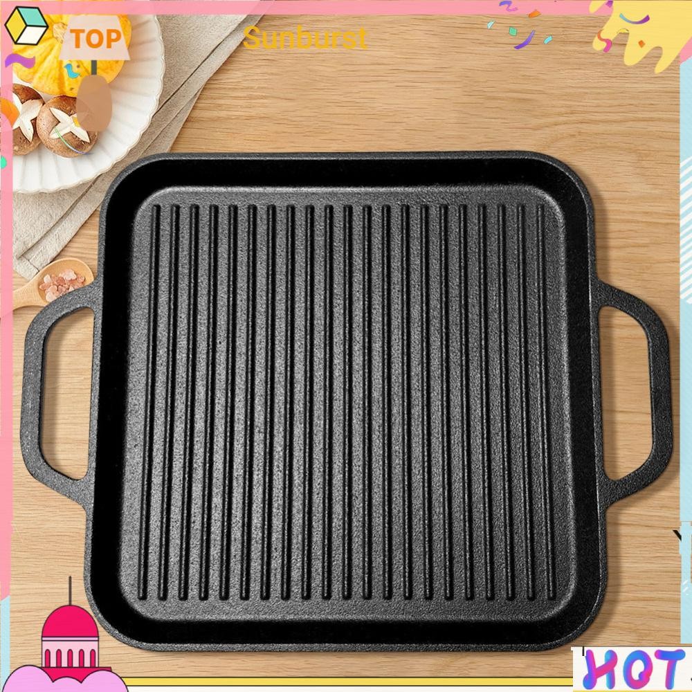 11in กระทะเหล็กหล่อ Griddle กระทะแบนสี่เหลี่ยมสําหรับแก๊สเตาตั้งพื้นเตาอบหรือเปิดไฟ [Sunburst11.th]