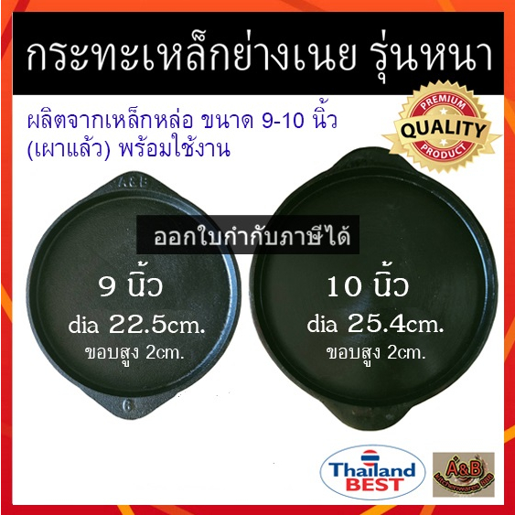(A&B)🔥กระทะย่างเนย เผาแล้ว 9นิ้ว,10นิ้ว กระทะเหล็กหล่อ กระทะปิ้งย่าง(รุ่นมีหู)💯