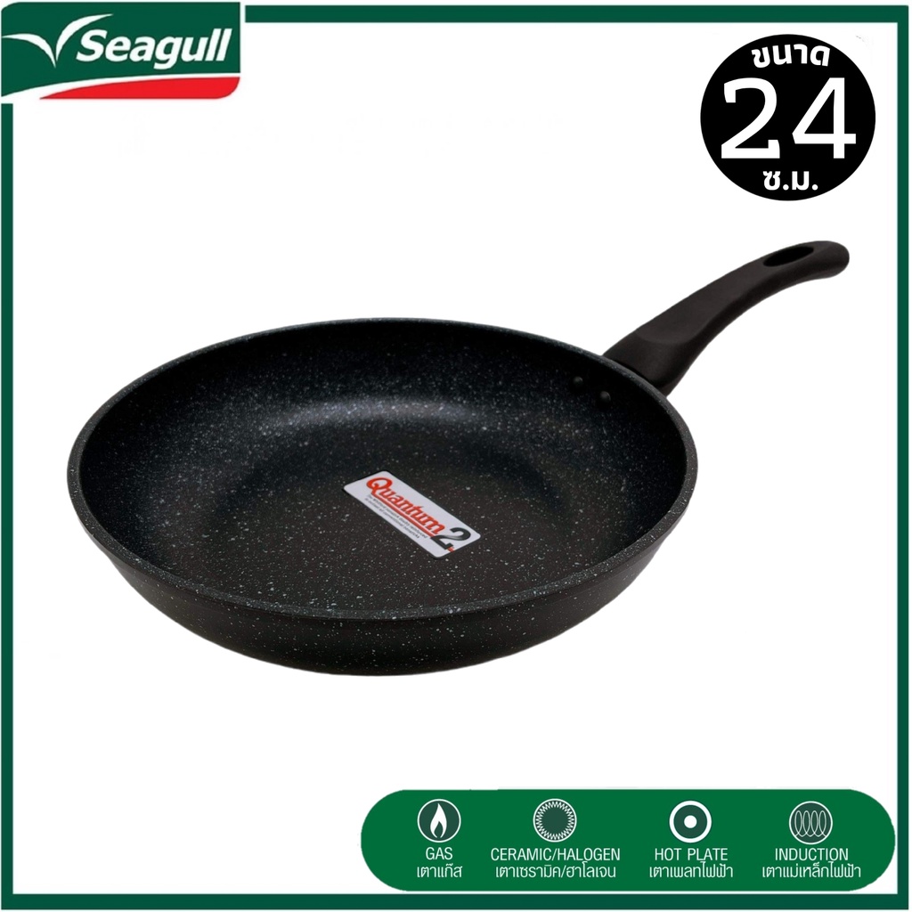 Seagull กระทะเคลือบหินอ่อน กระทะเคลือบหินอ่อนทรงแบน ขนาด 24 ซ.ม.ลึก 5 ซ.ม. Seagull รุ่น Premium Marble ใช้ได้กับทุกเตา