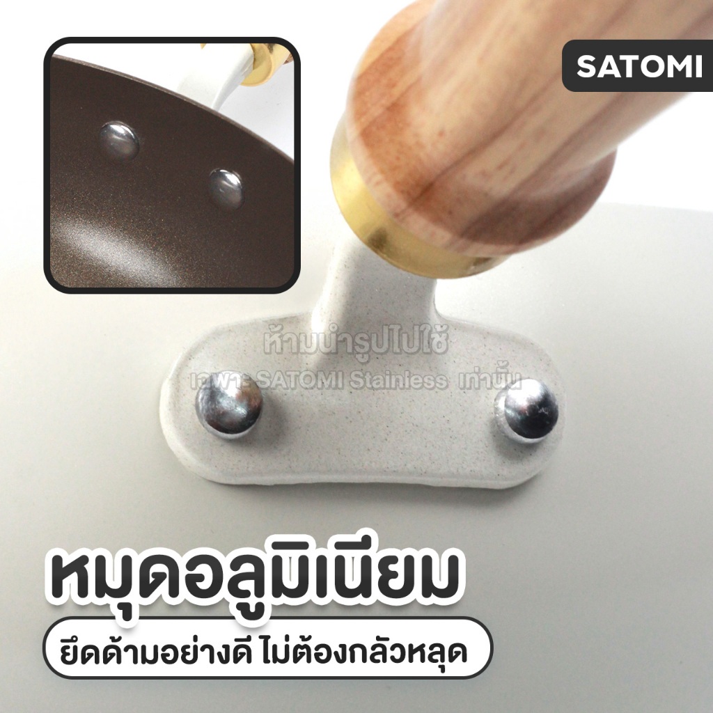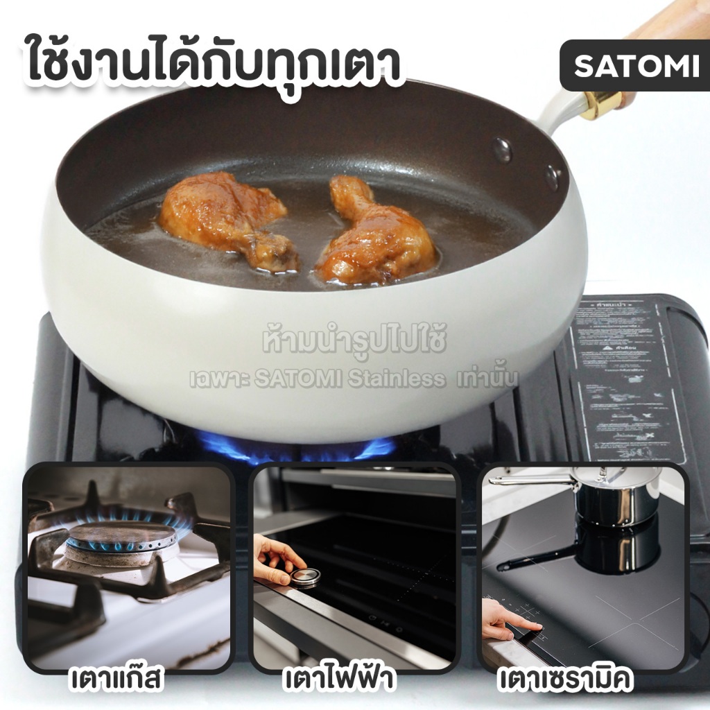 SATOMI กระทะเหล็กทรงบาตร เคลือบเซรามิกไทเทเนียม รุ่น Minori พร้อมฝากระจกใส แถมตะหลิวซิลิโคน ขนาด 24 cm หม้อมินิมอล