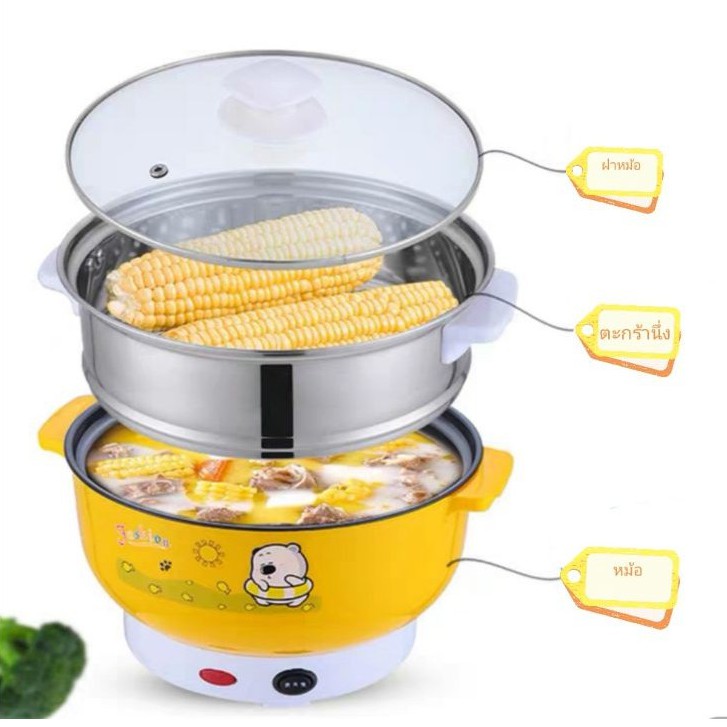 หม้อไฟฟ้า หม้อต้ม หม้อสุกี้ หม้อชาบู หุงข้าว อุ่น ตุ๋น พร้อมซึ้งสำหรับนึ่ง วัสดุสแตนเลสคงทน หม้ออเนกประสงค์