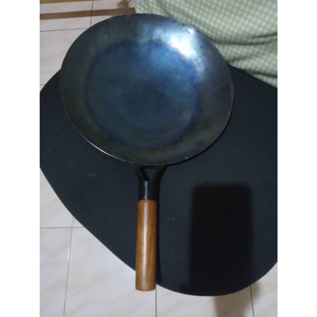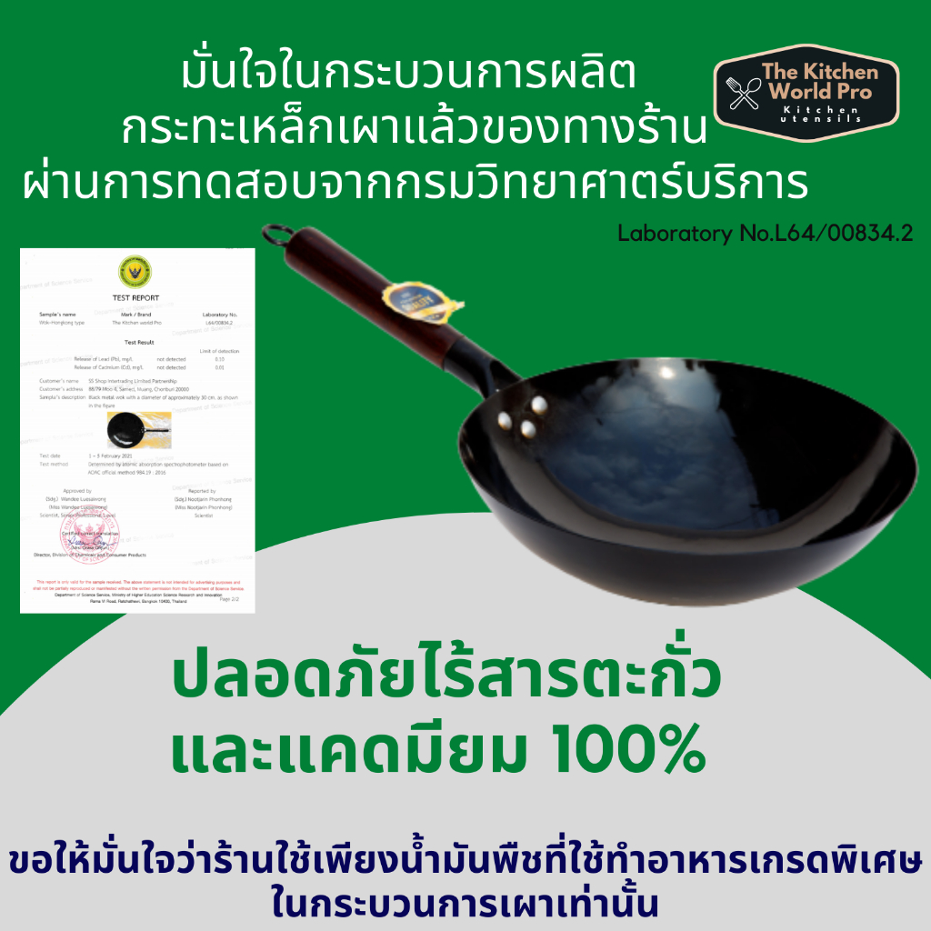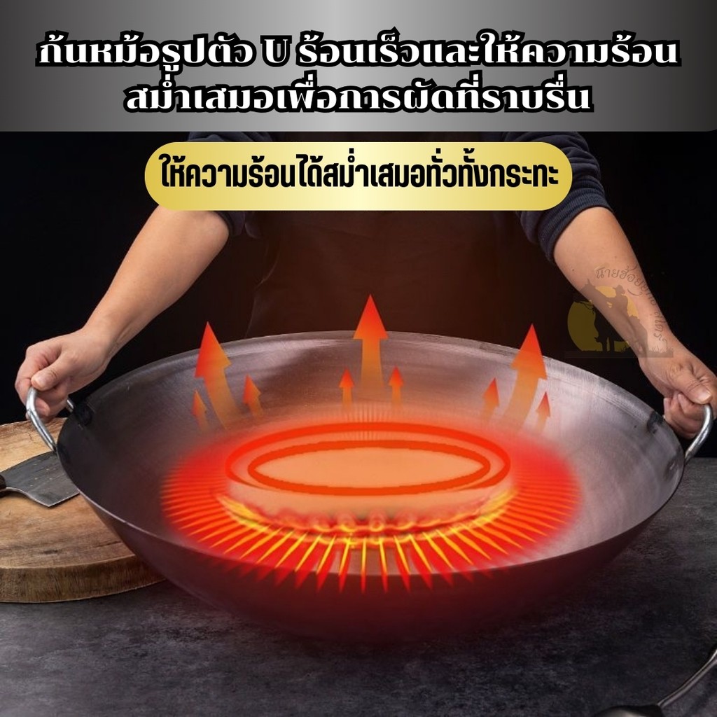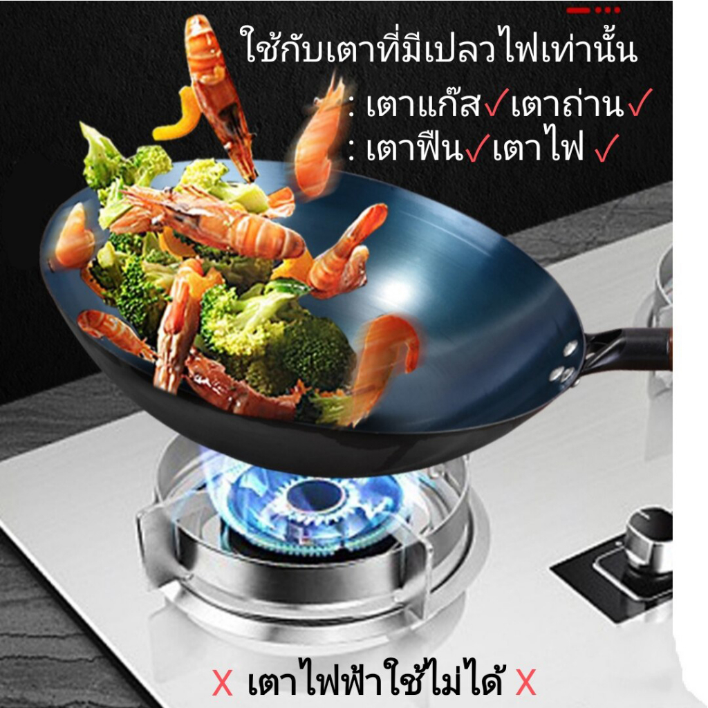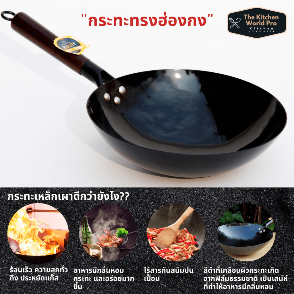 ส่งฟรี กระทะเหล็กแท้เผาสมบูรณ์ พร้อมใช้งาน ทรงฮ่องกงกว้าง 32ซม.หนาพิเศษด้ามไม้ กระทะจีน wokกระทะไฟแดงมีใบรับรองแถมกระบวย