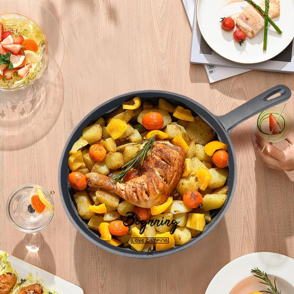 ᲦBE 20 ซม.เหล็กหล่อ Skillet กระทะหนารอบสําหรับทอด Saute ทําอาหารพิซซ่า & More