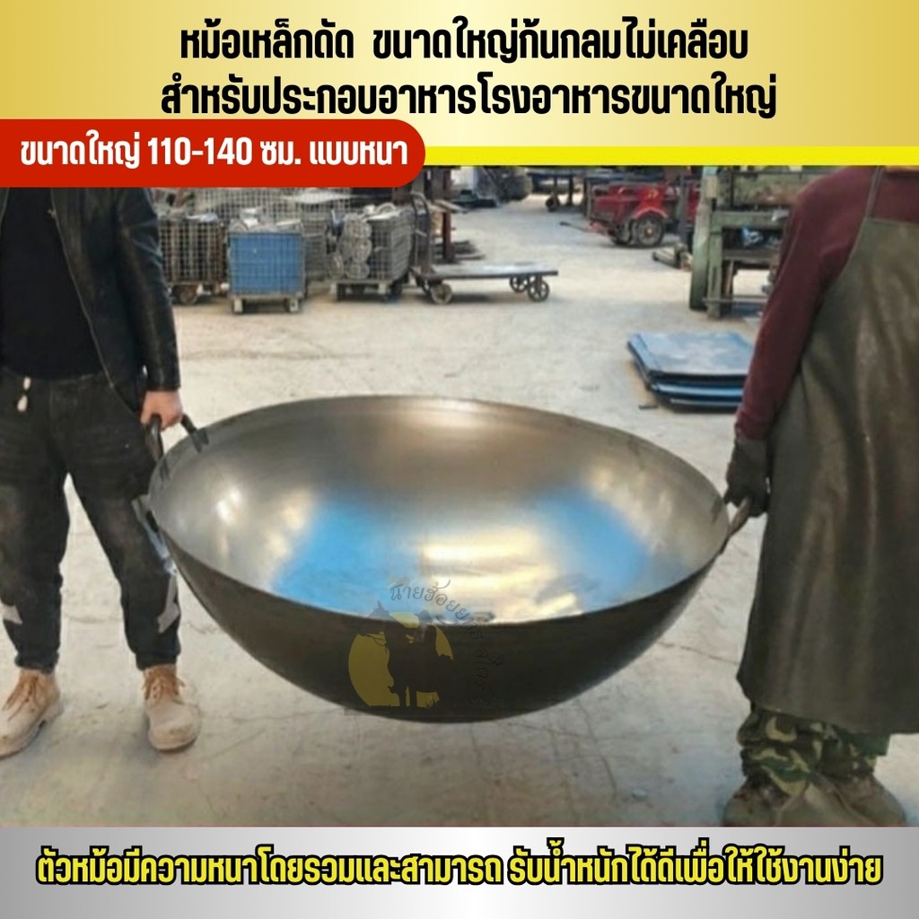 หม้อเหล็กดัด ขนาดใหญ่ 110-140 ซม. แบบหนา หม้อเตาดินในชนบท ขนาดใหญ่ก้นกลมไม่เคลือบ สำหรับประกอบอาหารโรงอาหารขนาดใหญ่