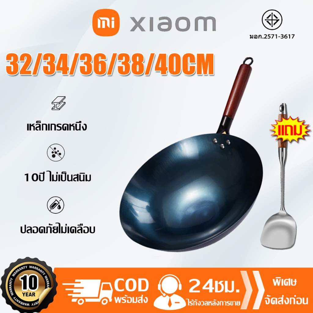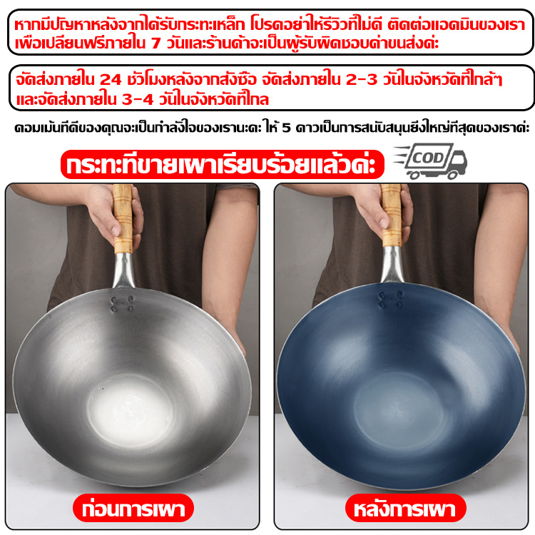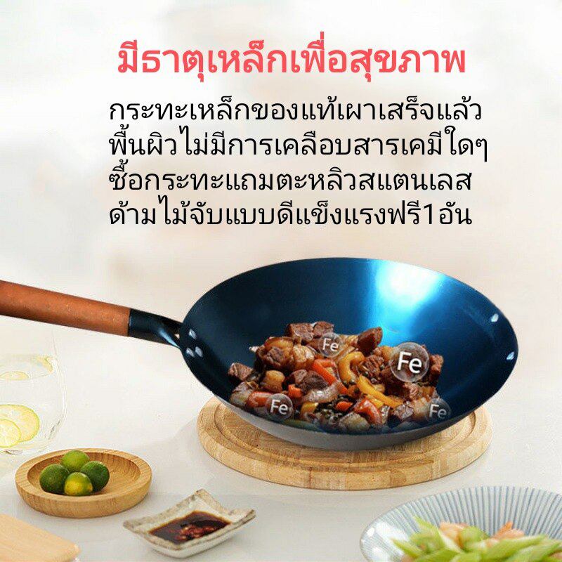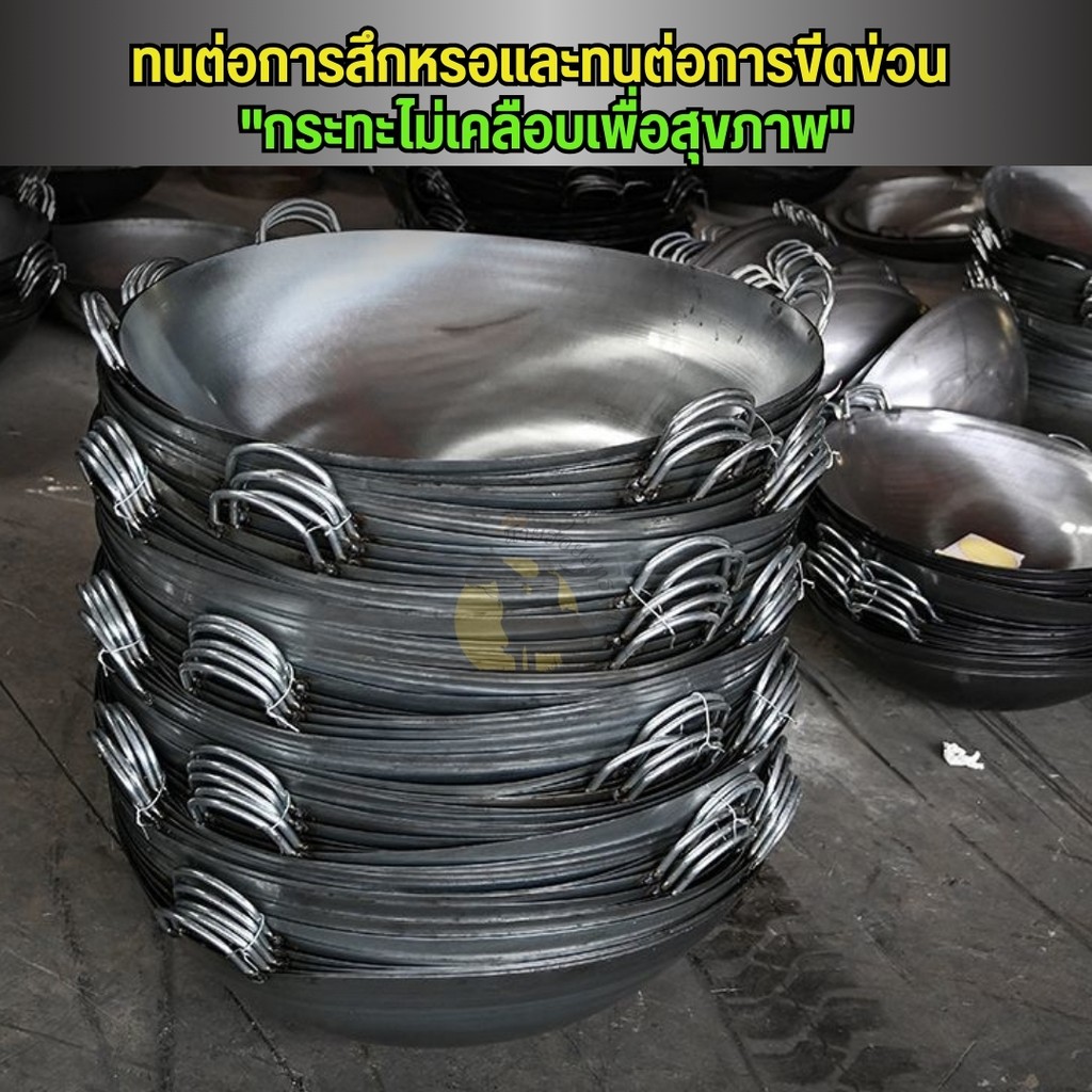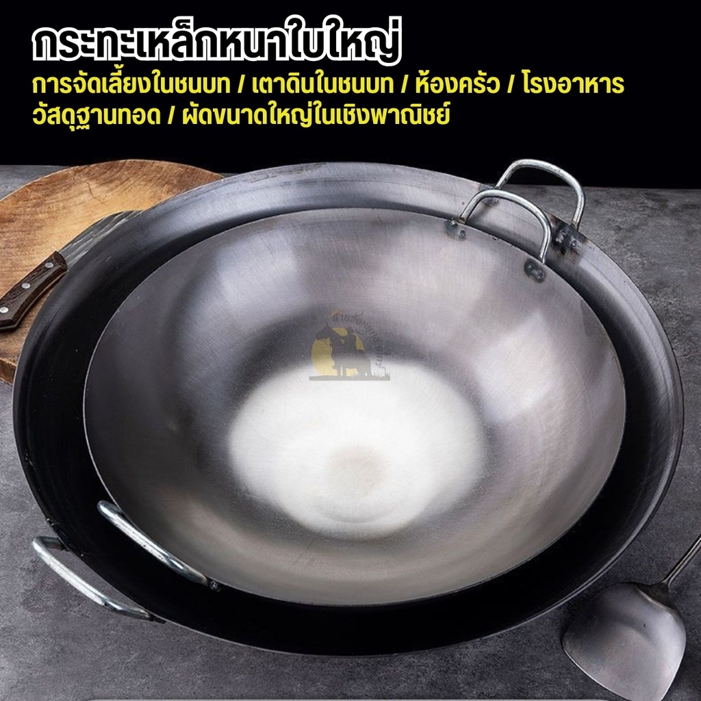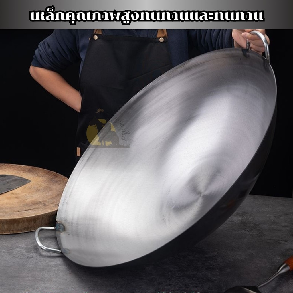 ✨รับประกัน 10 ปี✨ กระทะเหล็ก ขนาด32,34,36,38 แถมตะหลิวสตนเลส กะทะเหล็กหล่อ กะทะเหล็กเผาไฟ ไม่เคลือบผิว