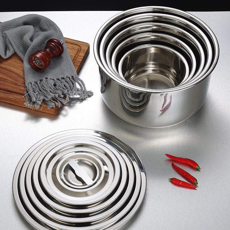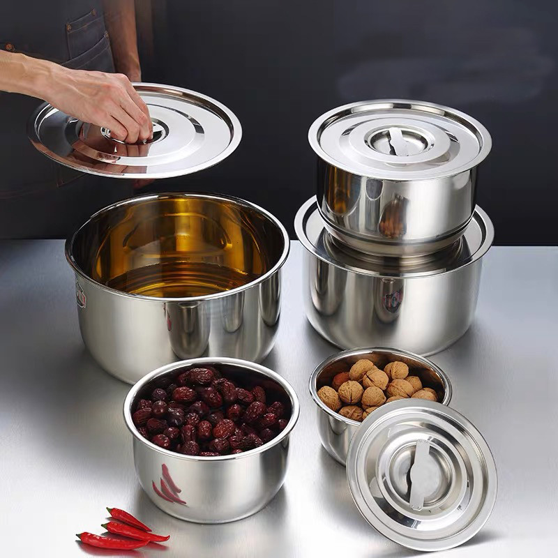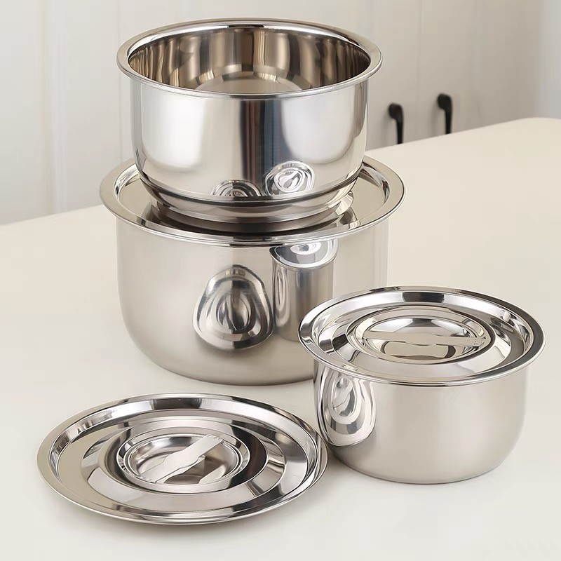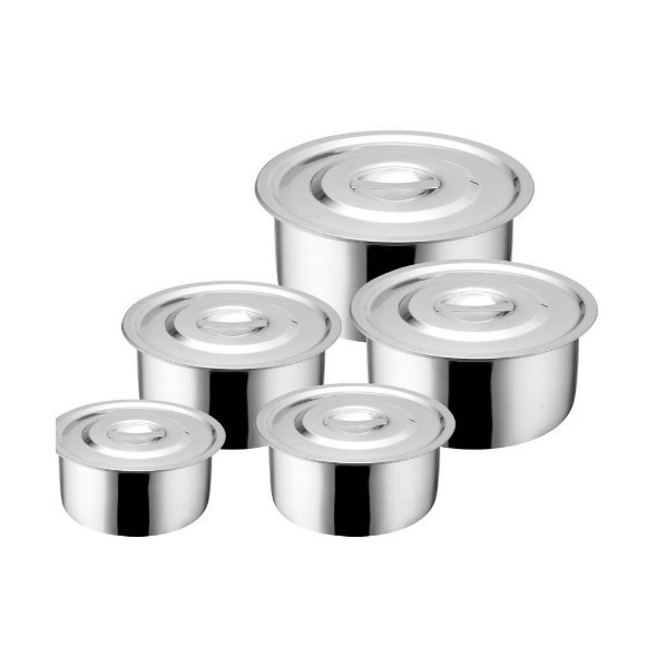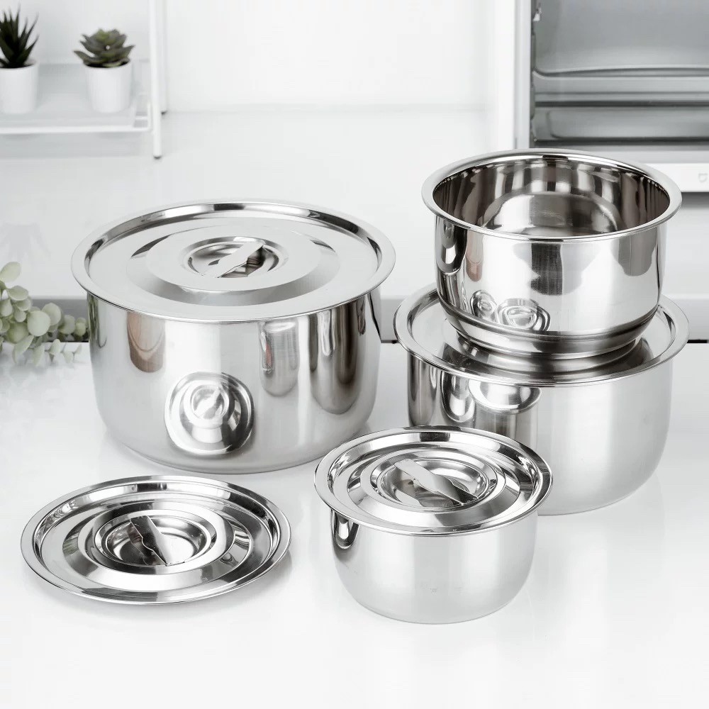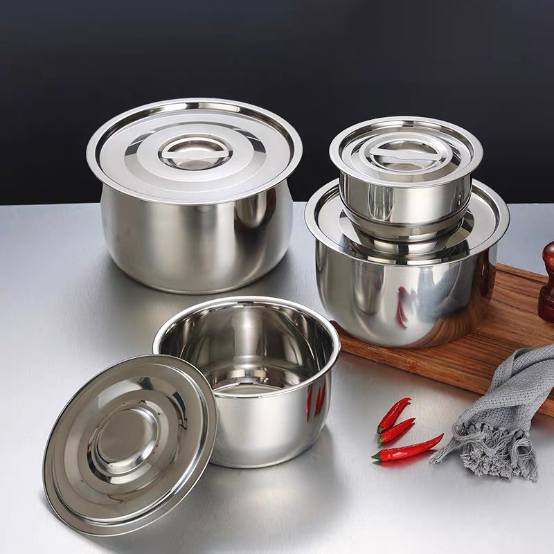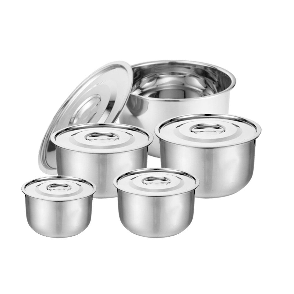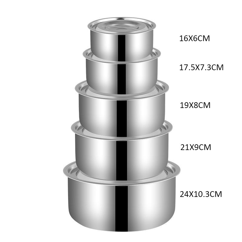 5 ชิ้น/ชุด หม้อสแตนเลสพร้อมฝาปิด หม้อแขกสแตนเลส หม้อแขก หม้อสแตนเลส 16/18/20/22/24 cm