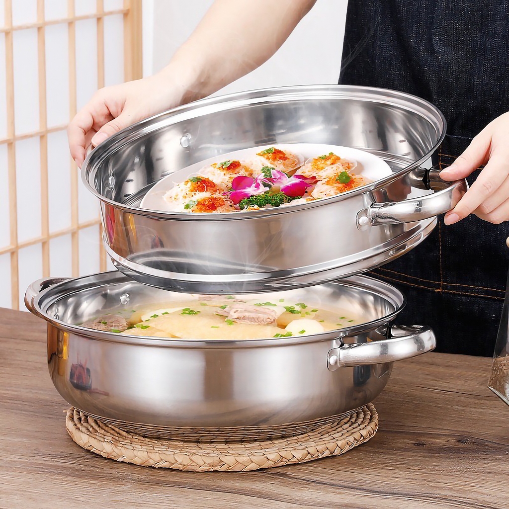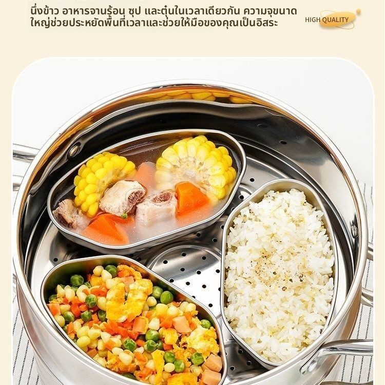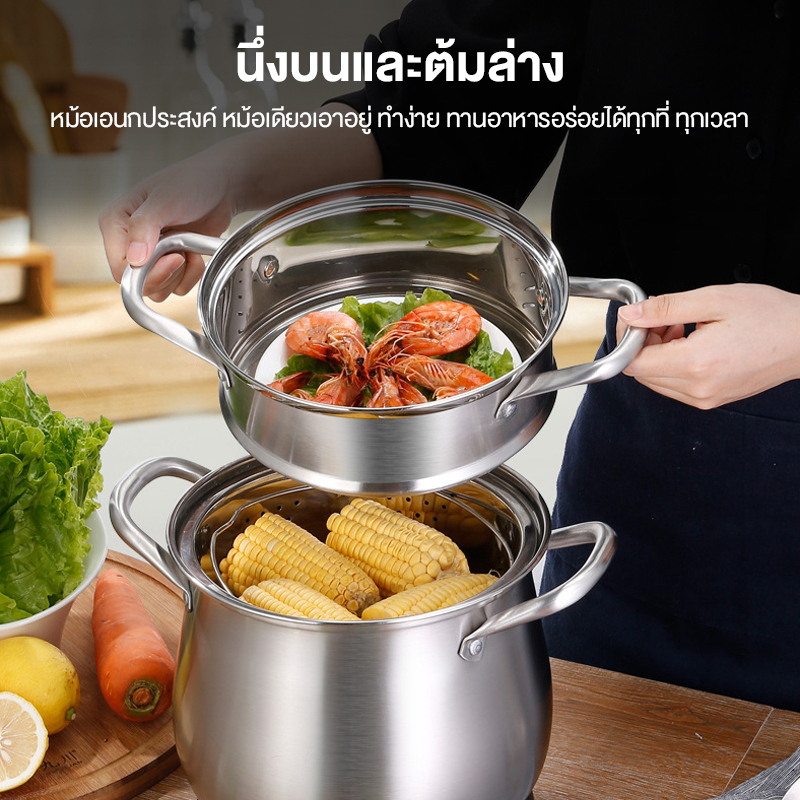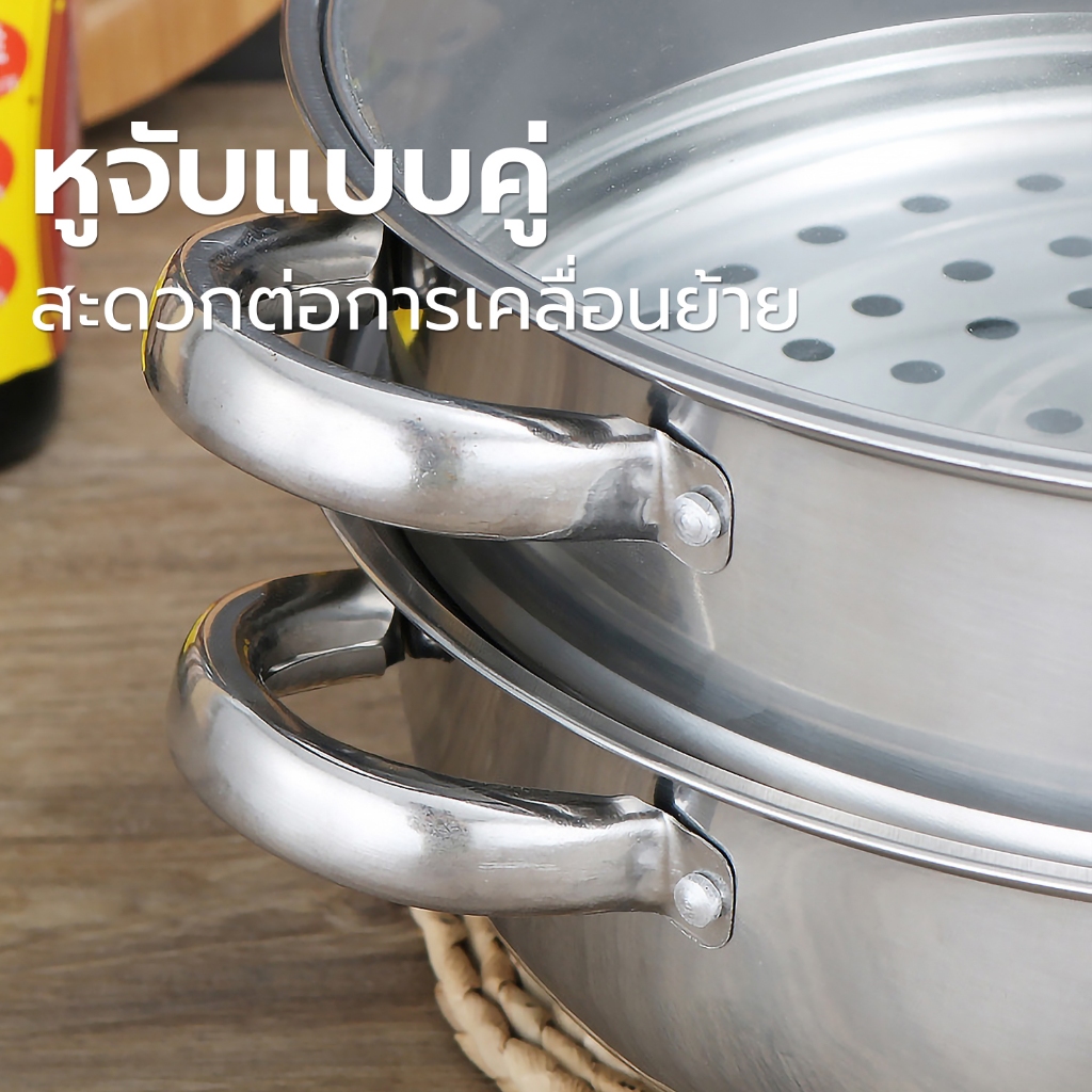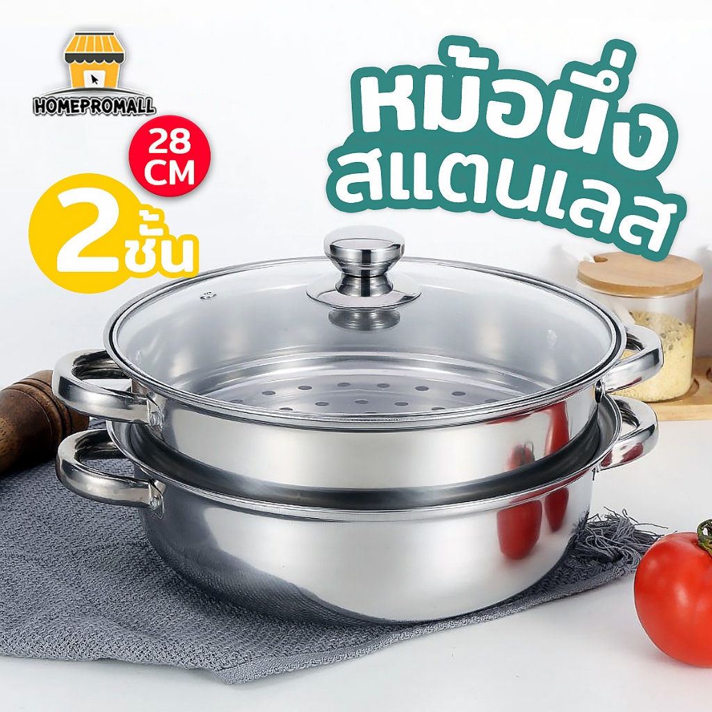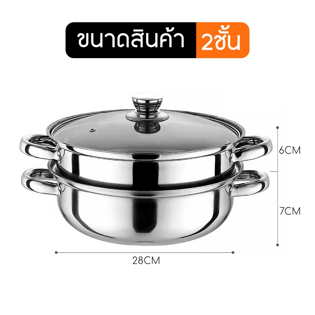 [ลูกค้าใหม่ 1 บาท] หม้อนึ่งสแตนเลส2ชั้น รุ่นฝาใส ขนาด28cm. ใช้กับเตาแม่เหล็กไฟฟ้าได้ หม้ออเนกประสงค์