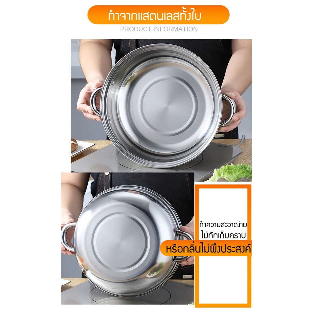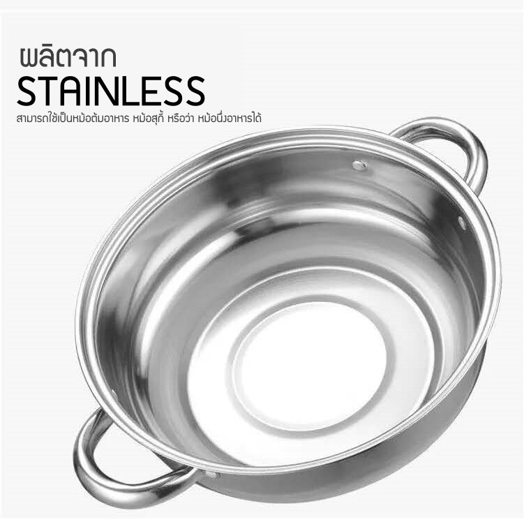 HOTPOT หม้อไฟ ต้มยำ หม้อต้มยำ หม้อจิ้มจุ่ม ไม่มีปล่อง สแตนเลส ขนาด 20cm.22cm..หม้อใส่ต้ม หม้อใส่แกง สแตนเลส